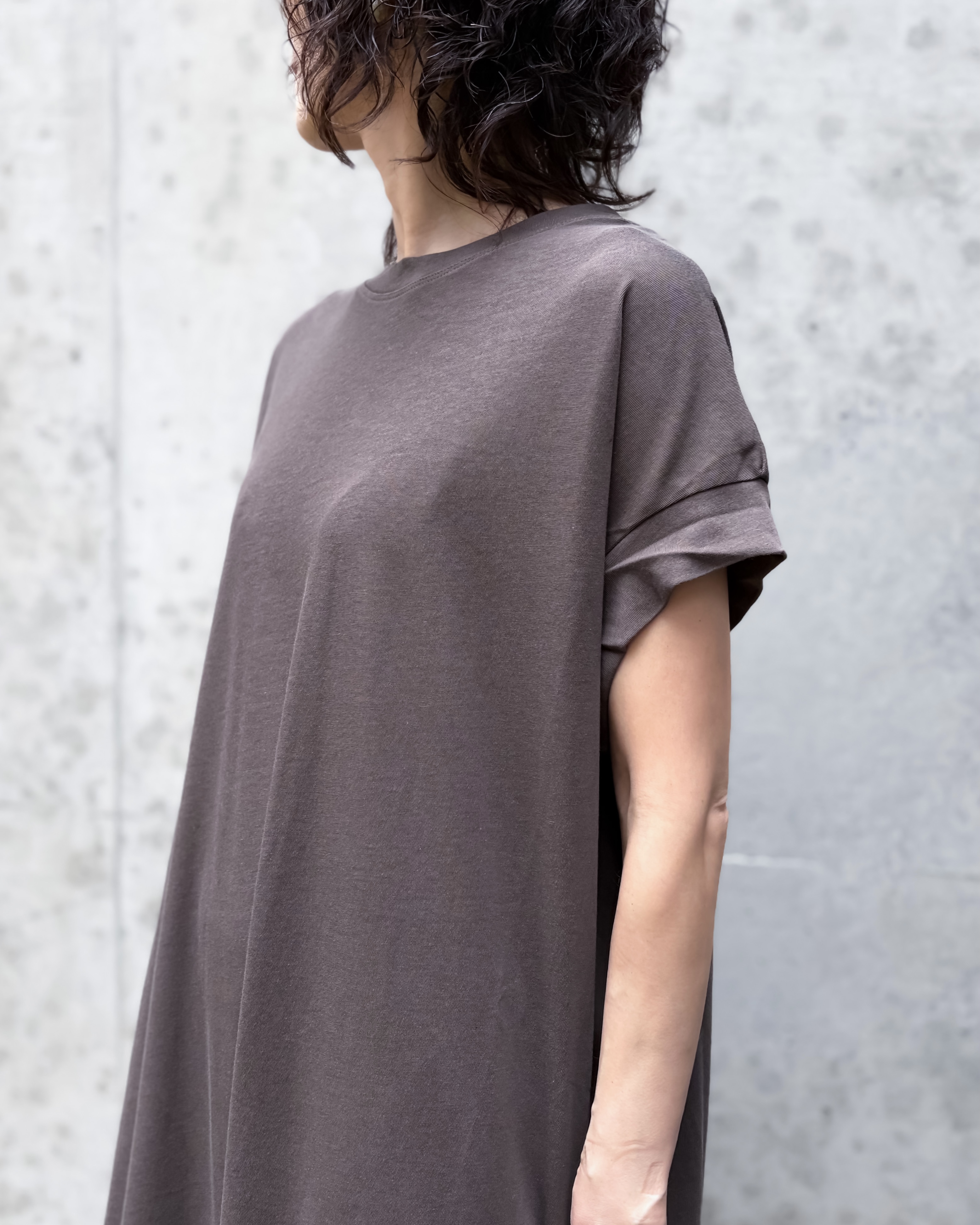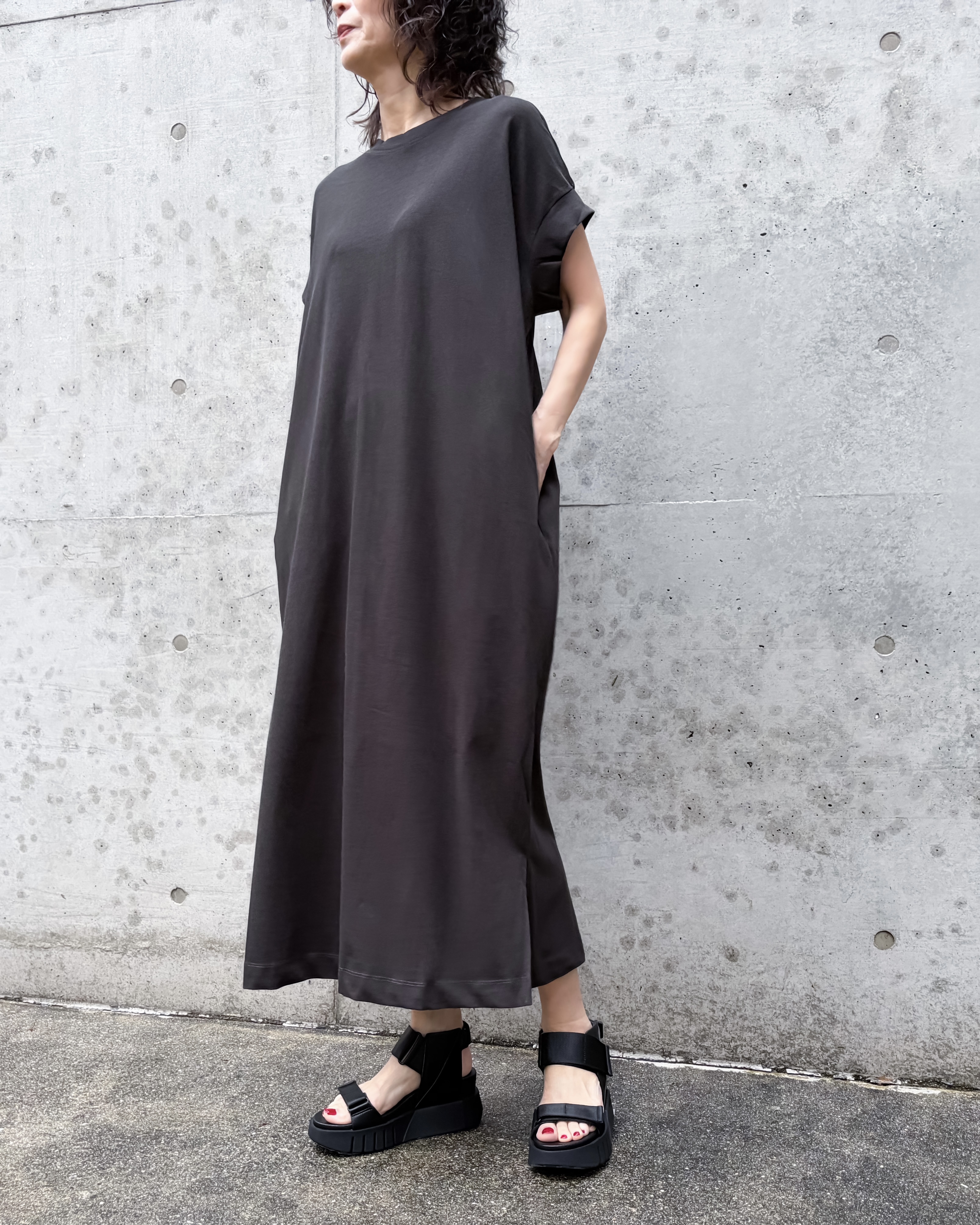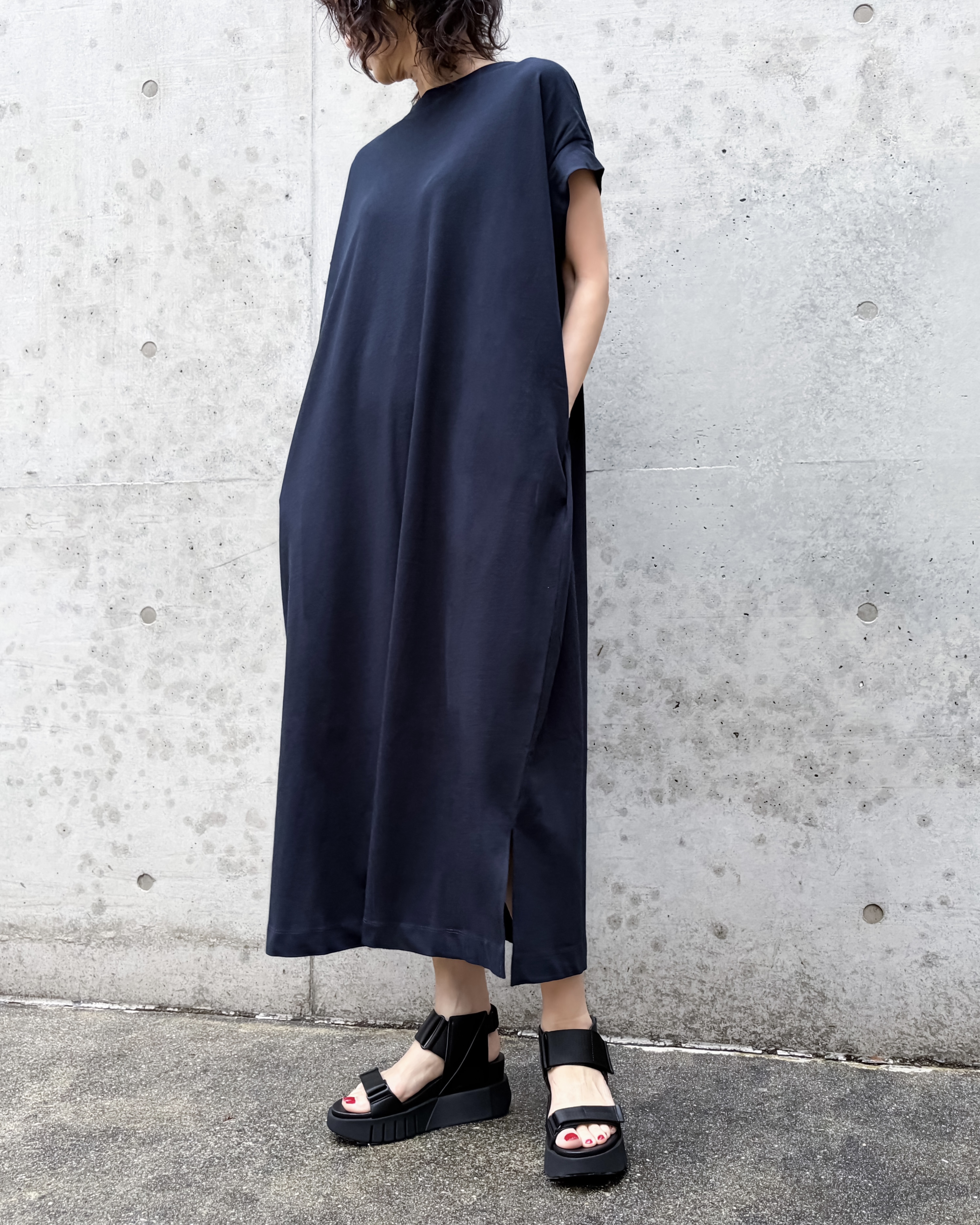 ドライタッチのハイツイストコットンジャージーを使用したサックドレスです。