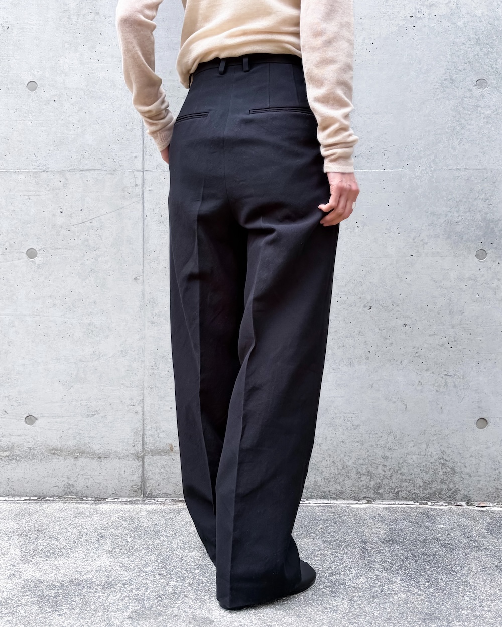 WOOL COTTON LINEN OX ONE-TUCK SLACKS