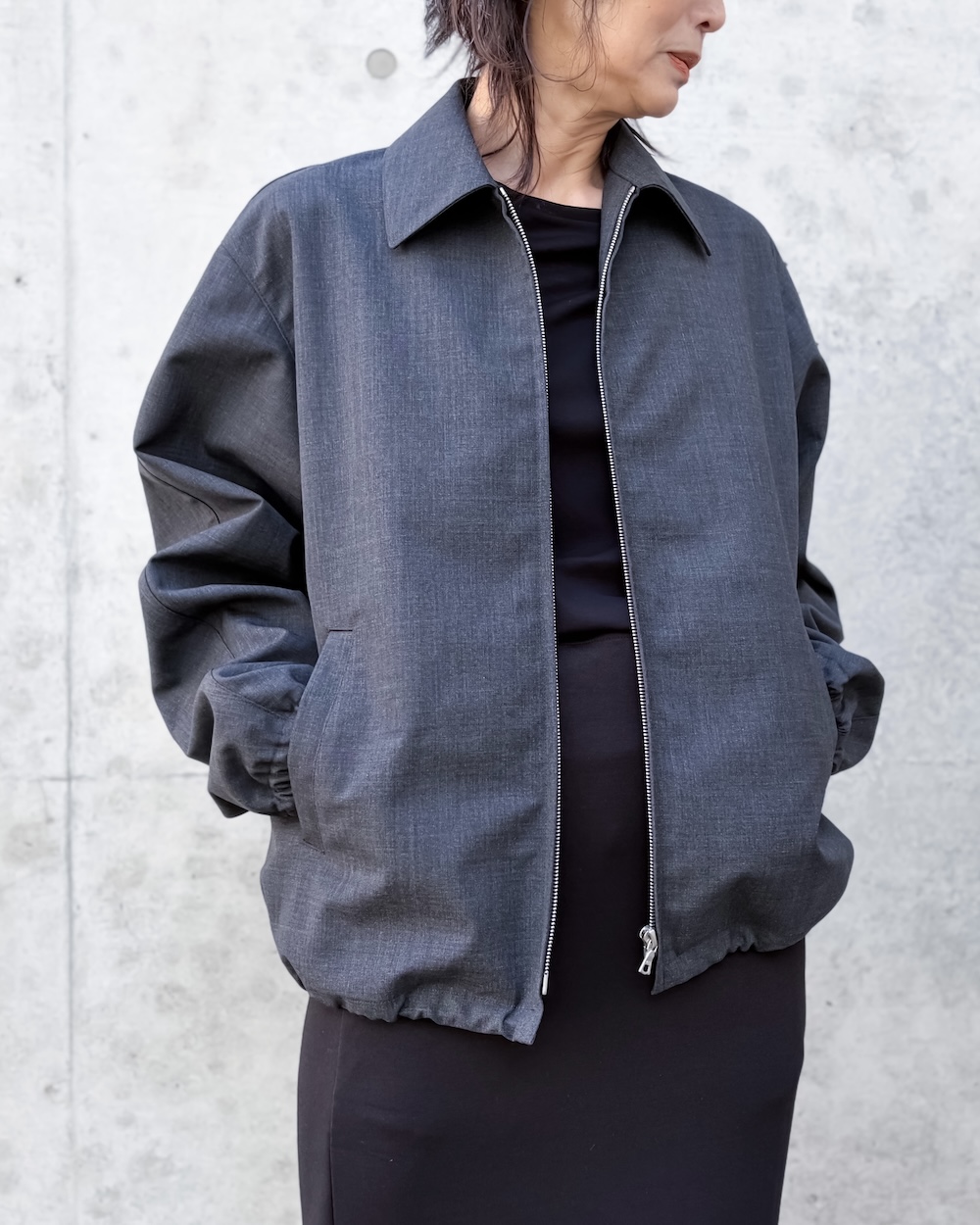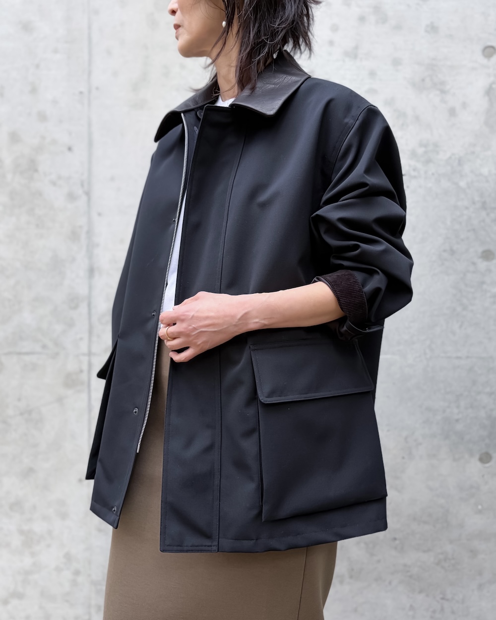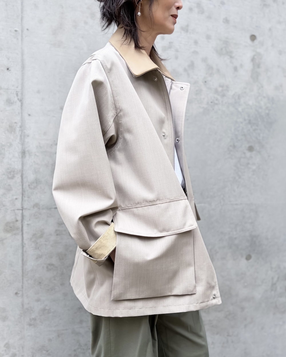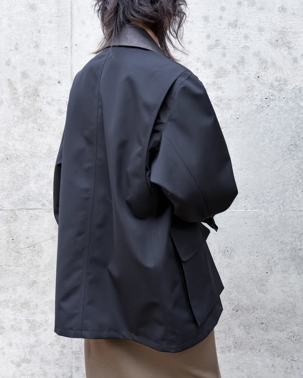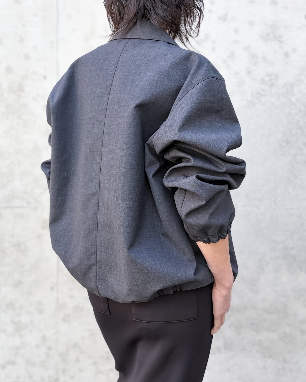 ボンディングならではの程よいハリがシルエットに存在感を与えながらも、厚みを抑えた軽やかで上質な仕上がりが特徴です。