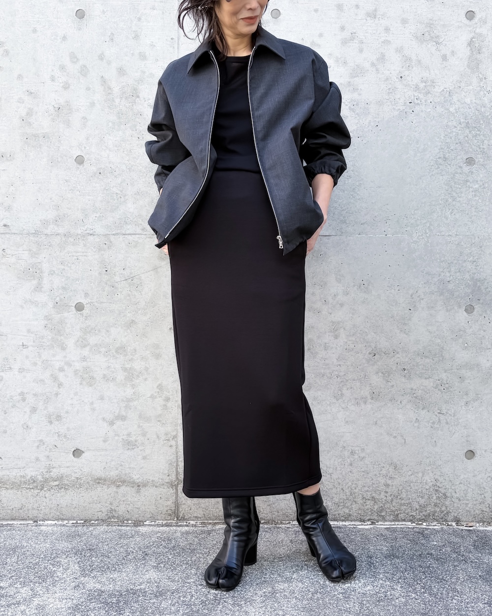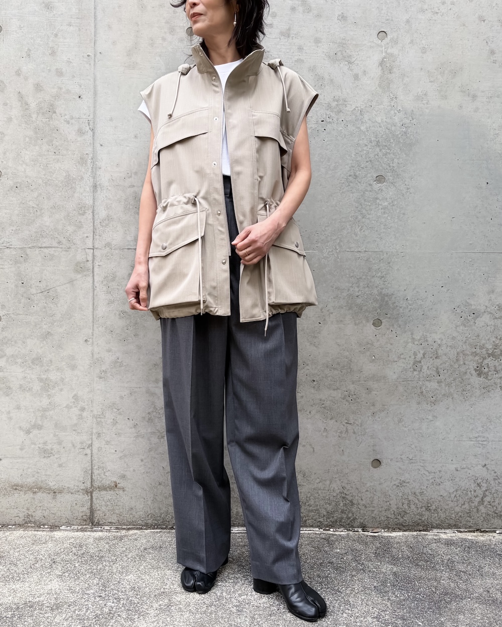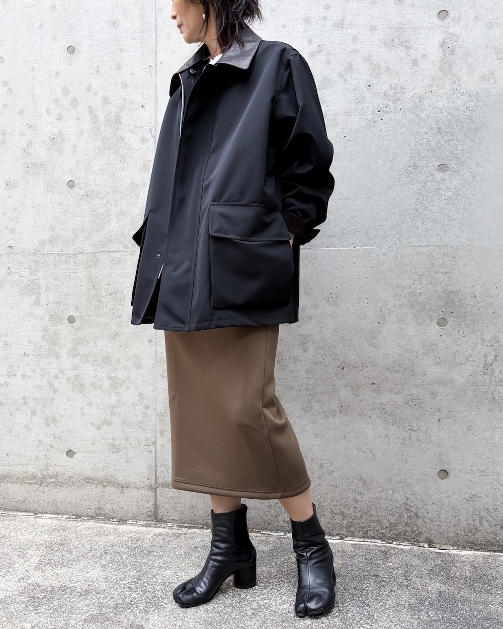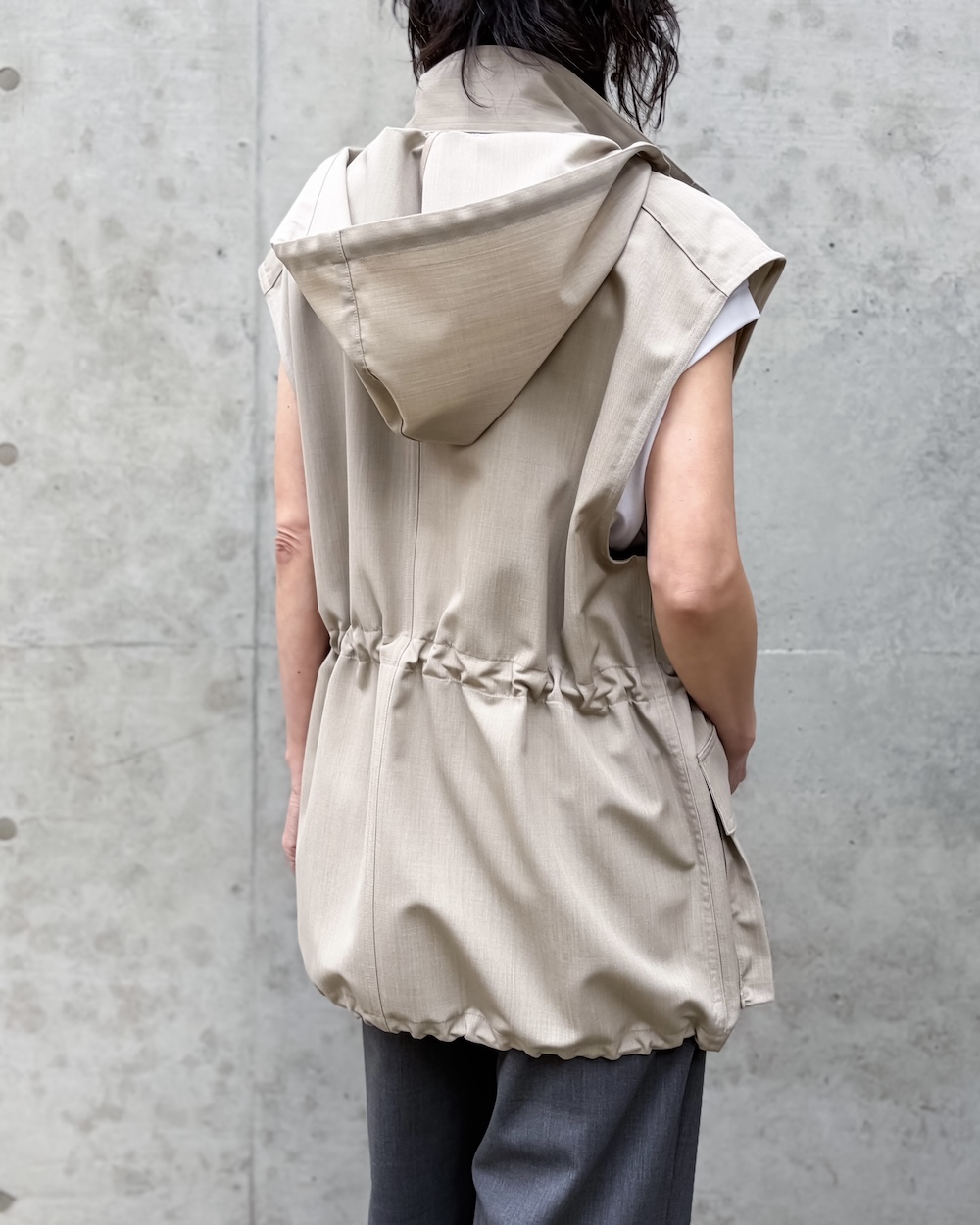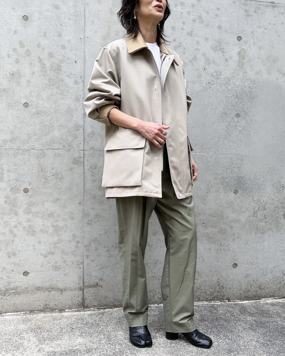 ボンディングならではの程よいハリがシルエットに存在感を与えながらも、厚みを抑えた軽やかで上質な仕上がりが特徴です。