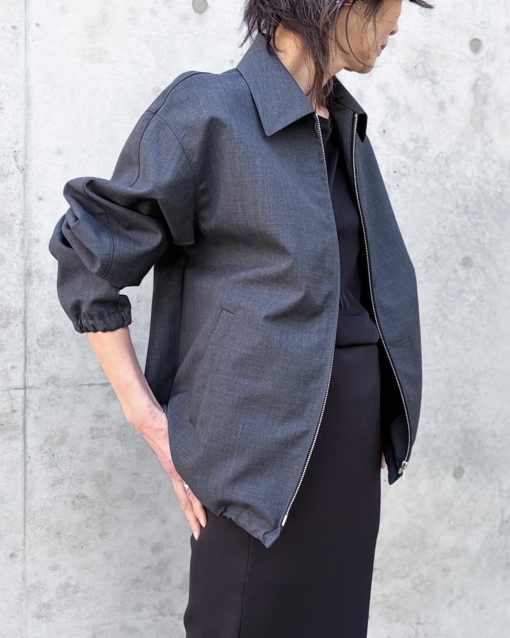 BONDED TROPICAL WOOL ZIP BLOUSON