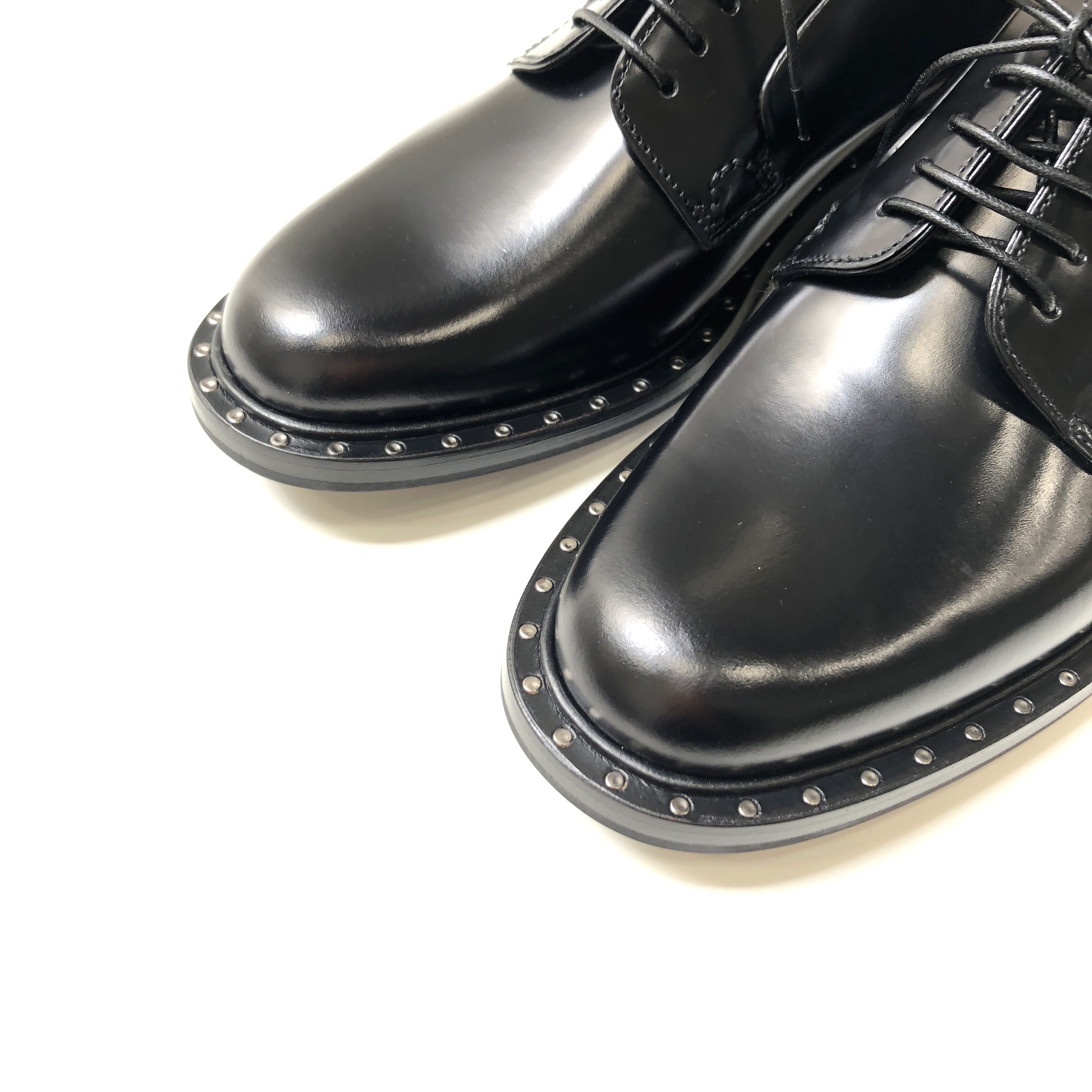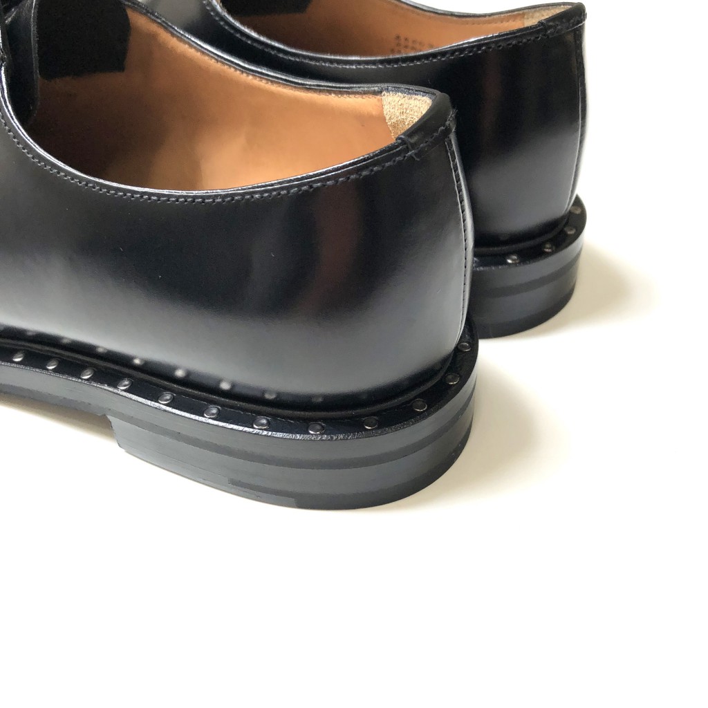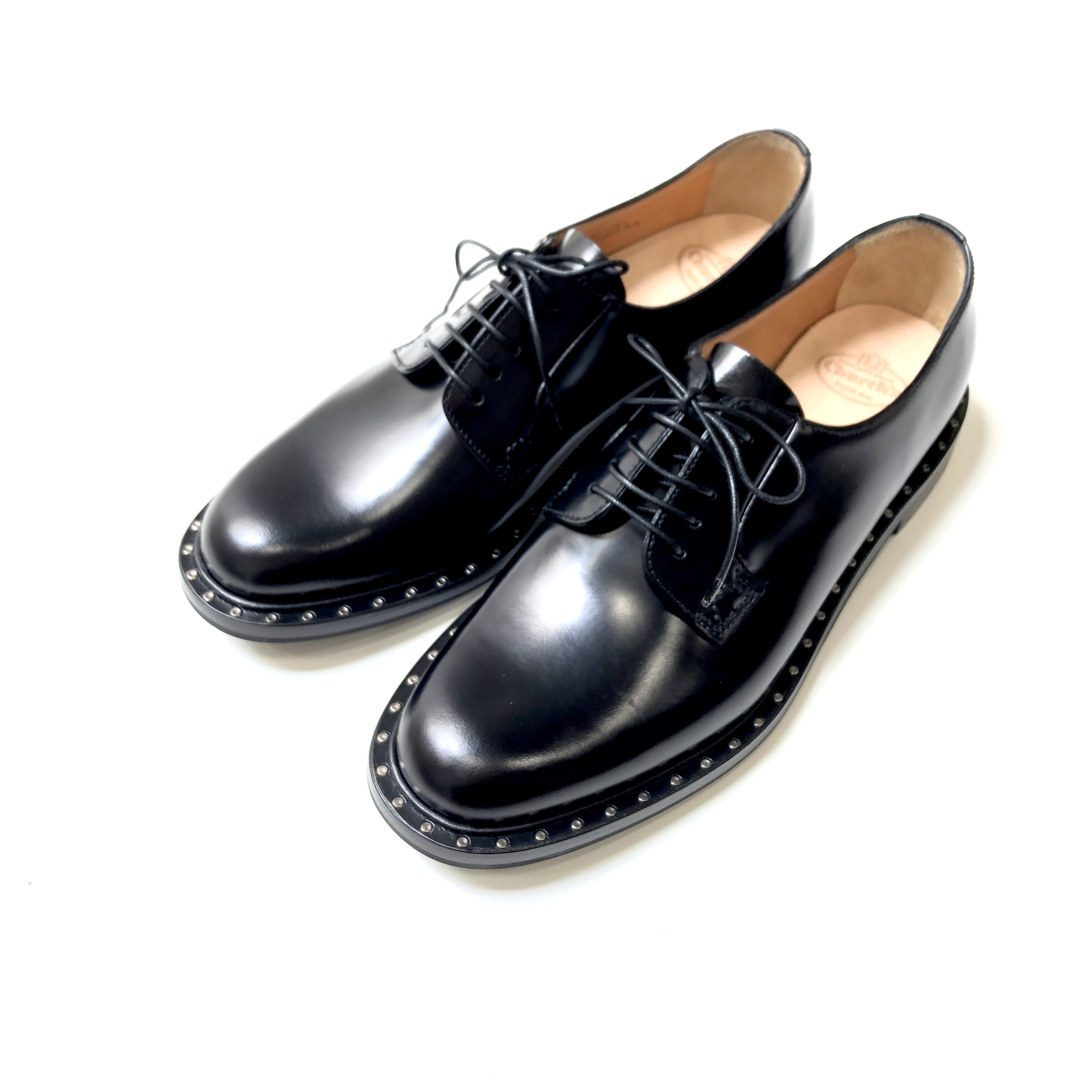 正統派のプレーントゥーシューズであるシャノンに、スタッズがあしらわれた1足。