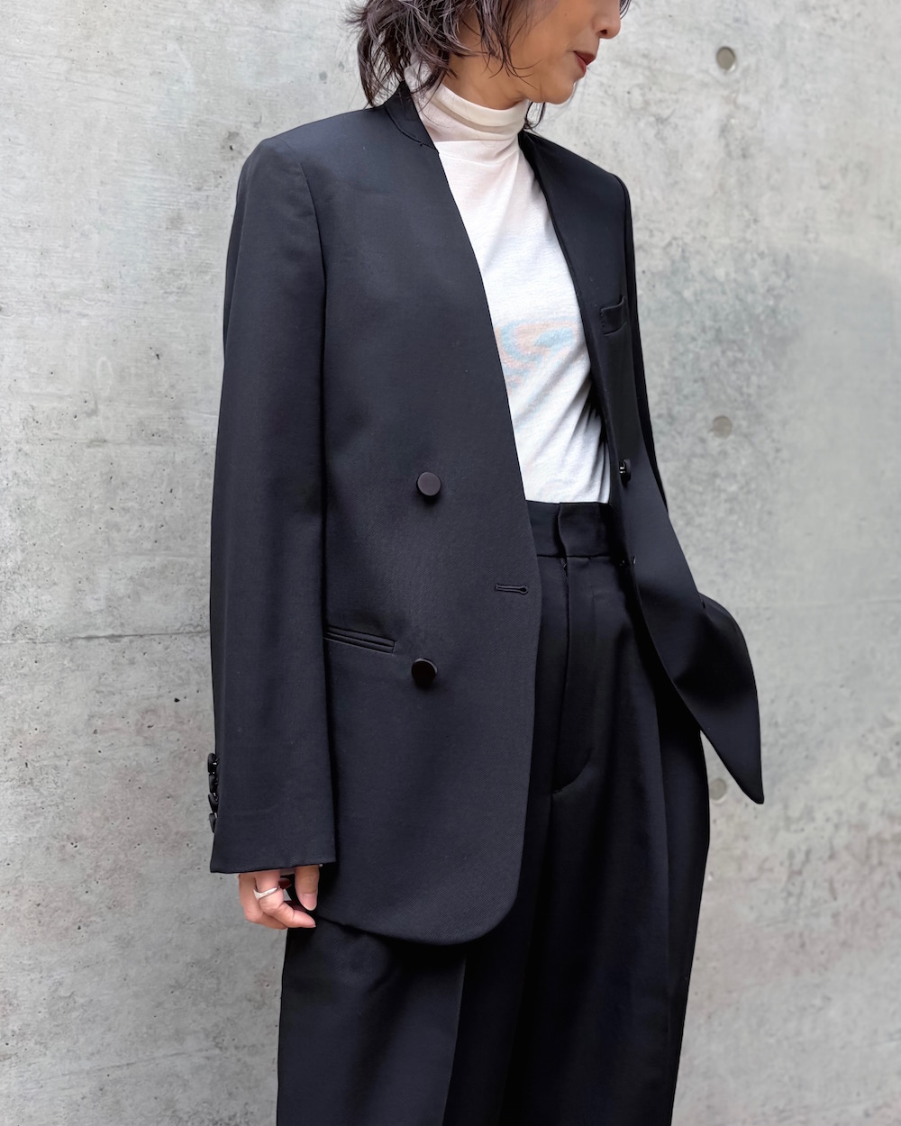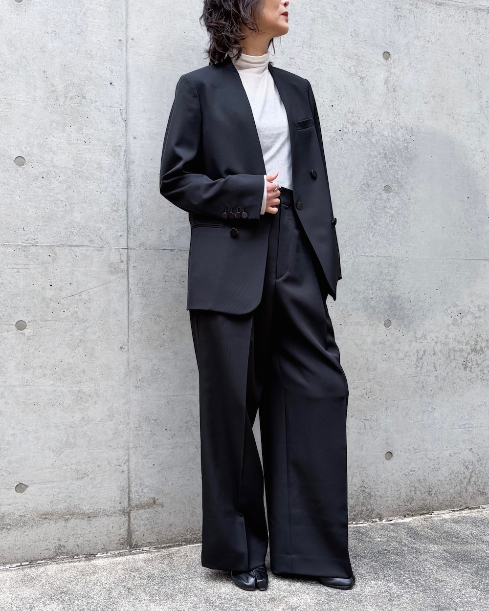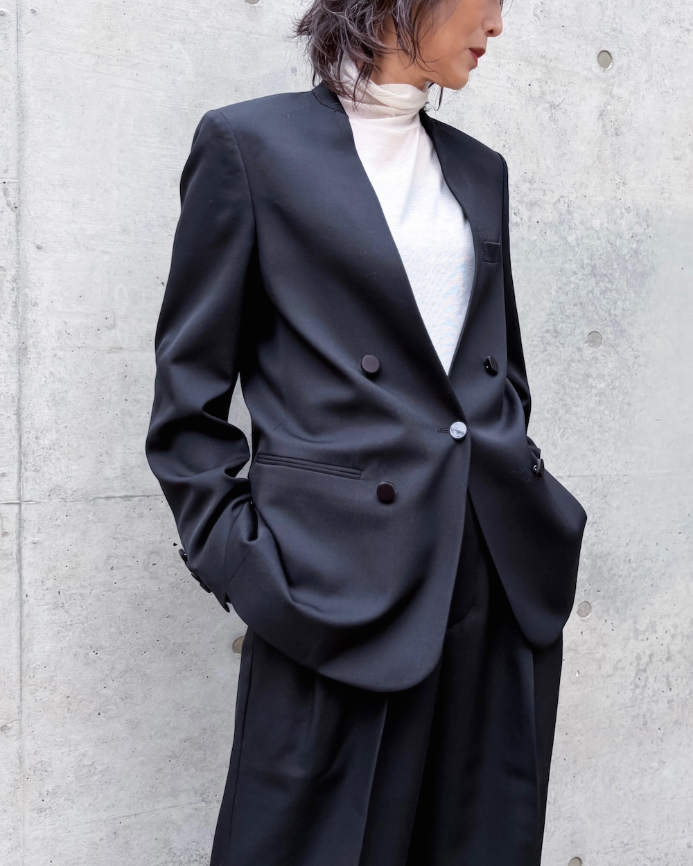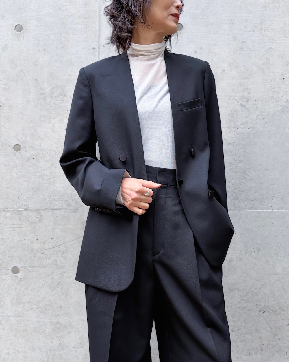 フォーマルなスタイルにも、マニッシュなコーディネートにも生える一着です。