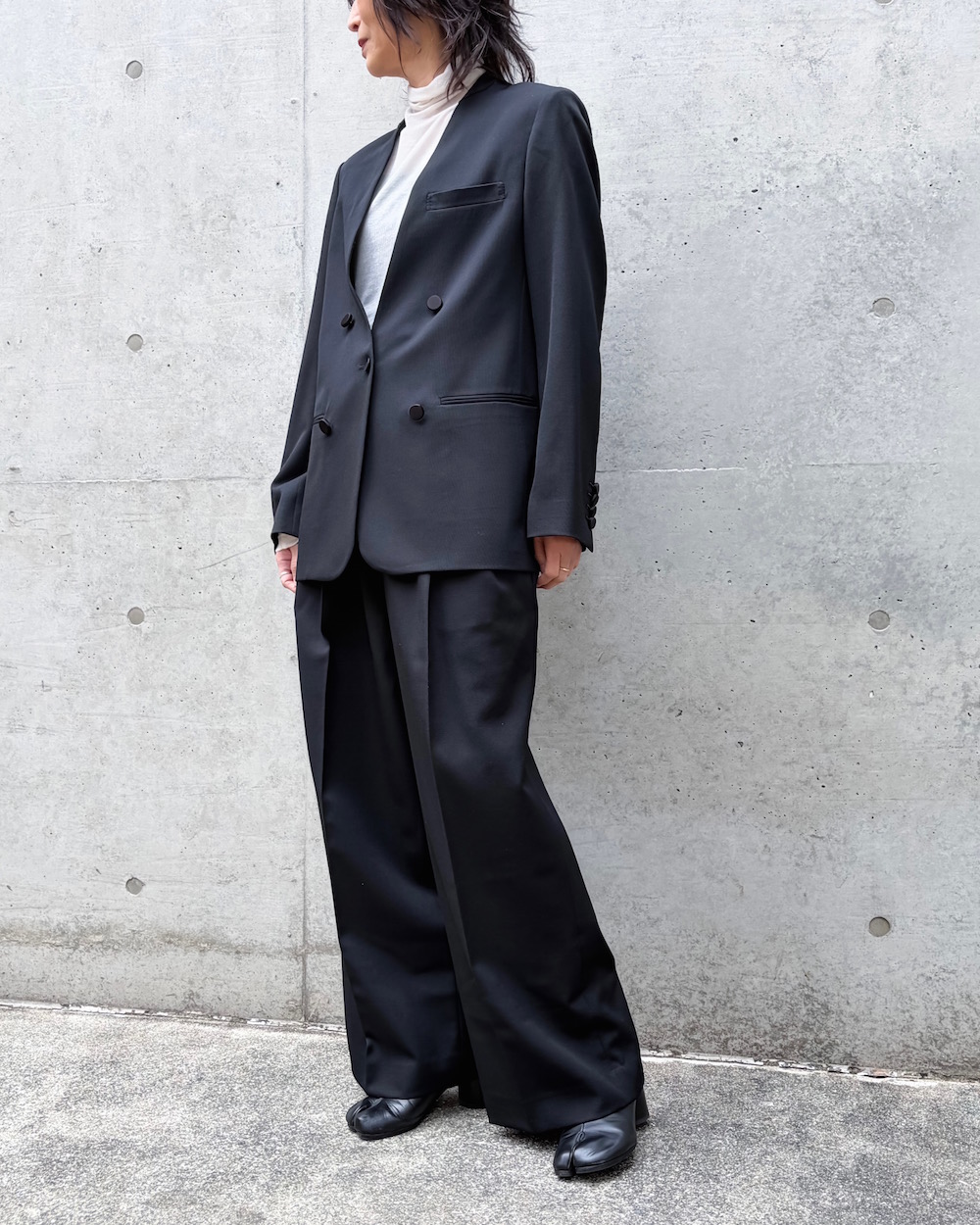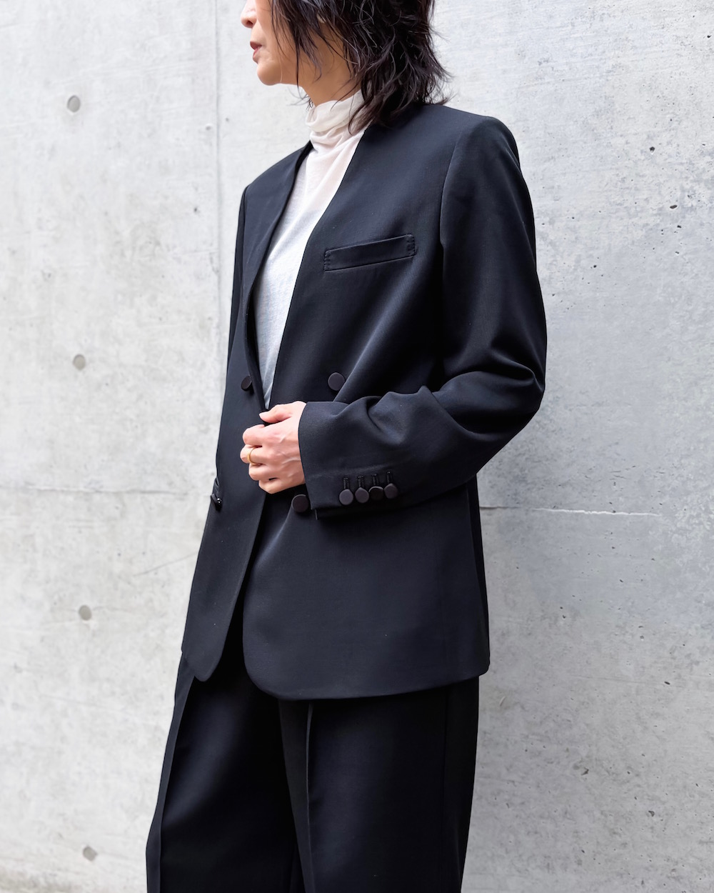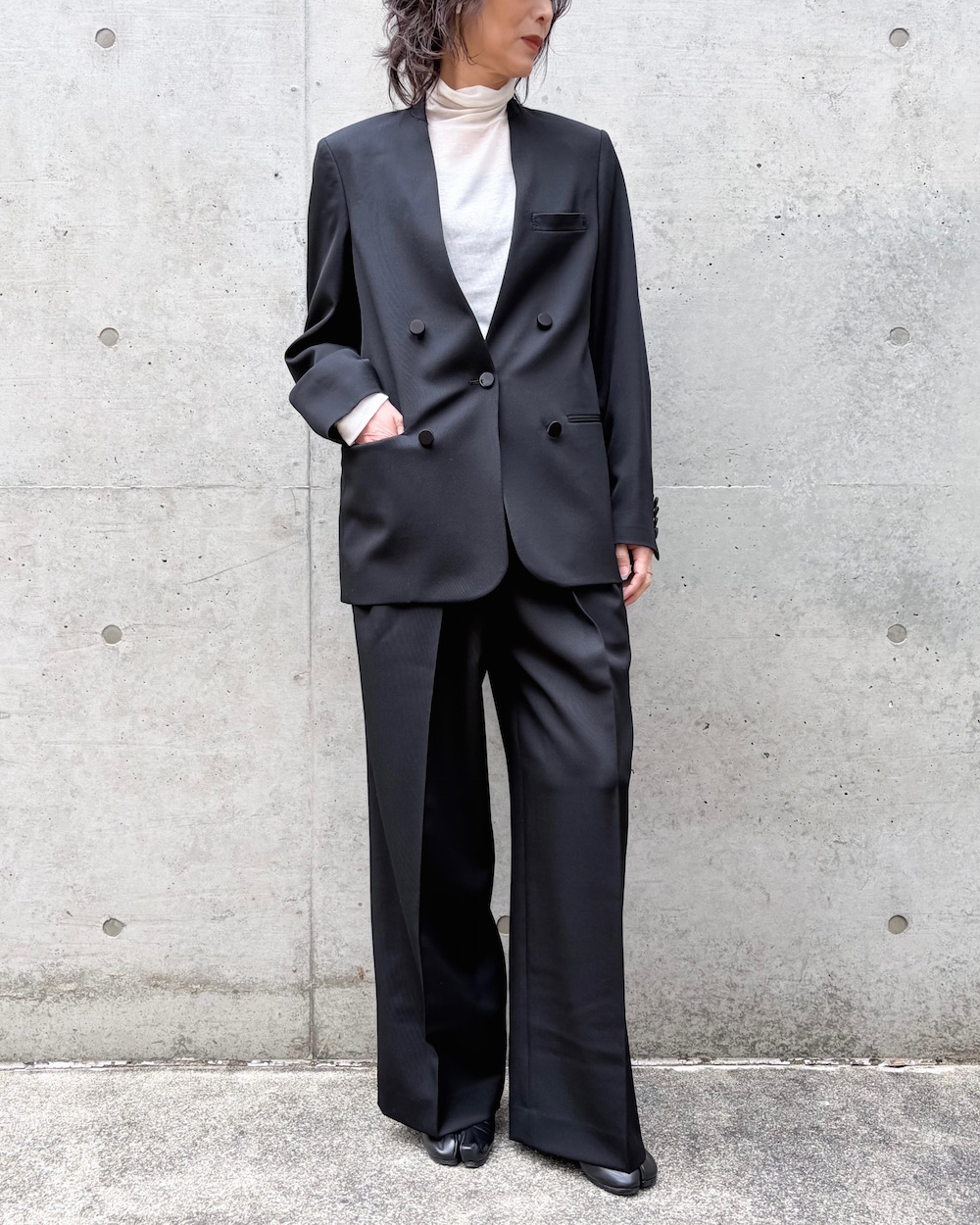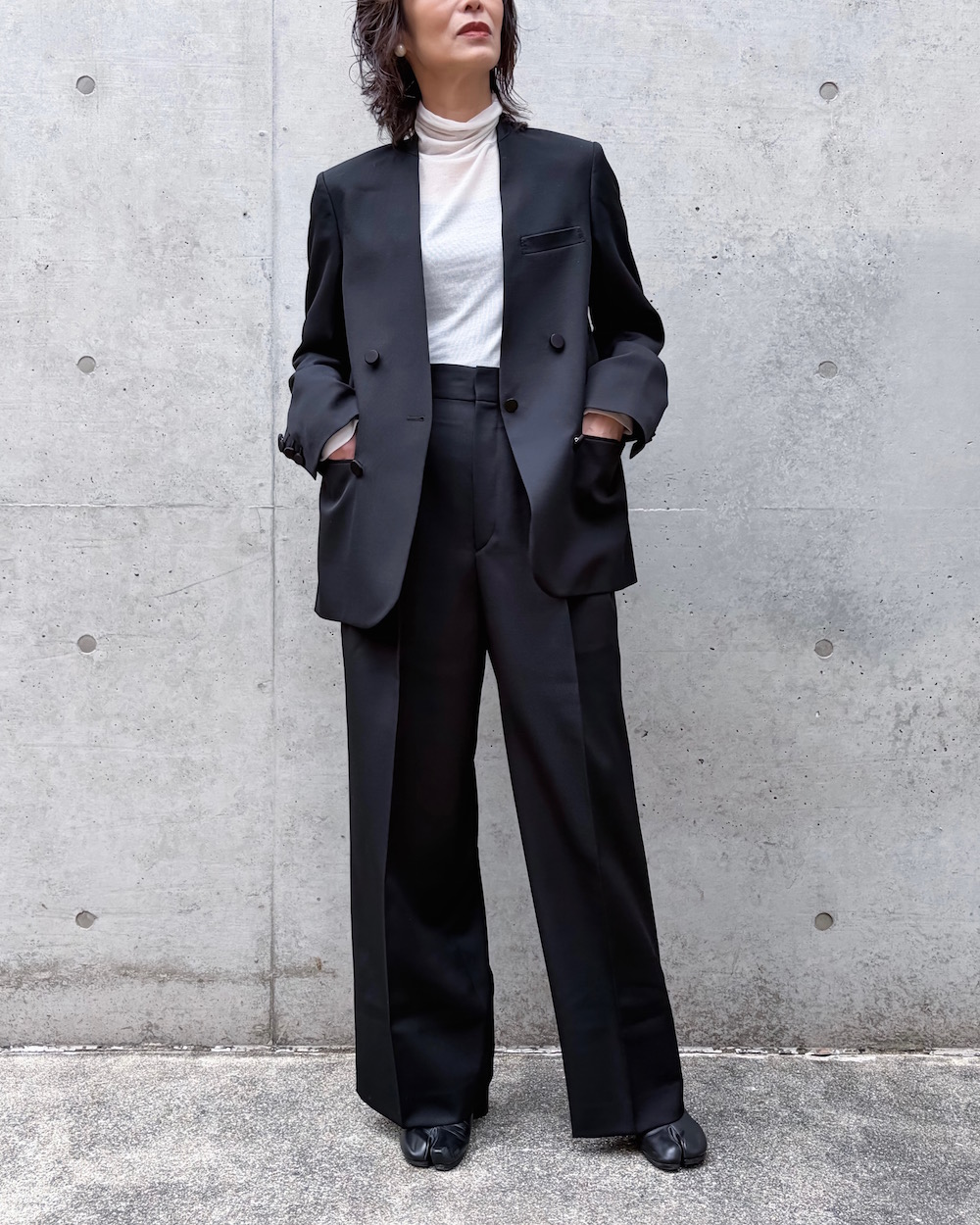 フォーマルなスタイルにも、マニッシュなコーディネートにも生える一着です。