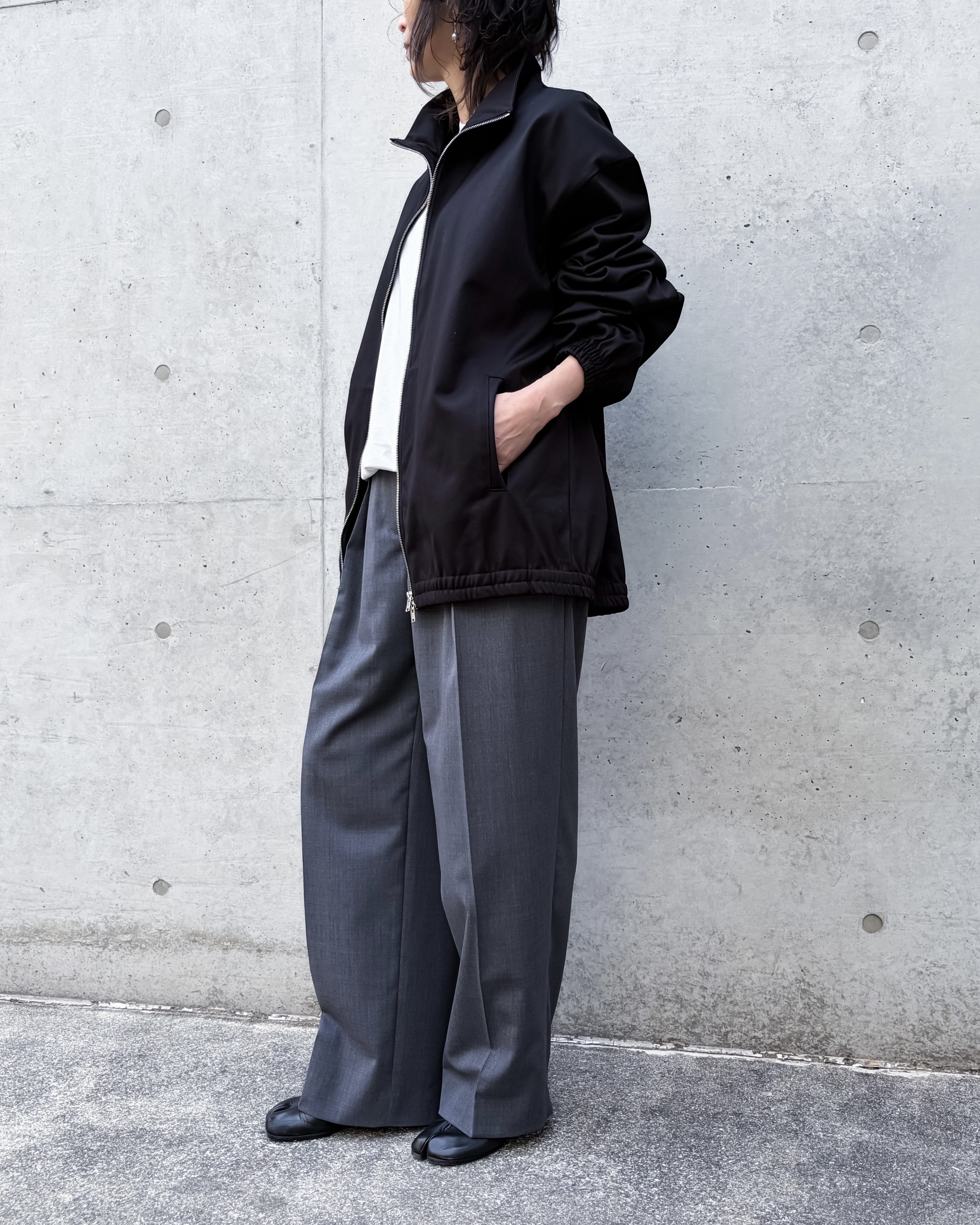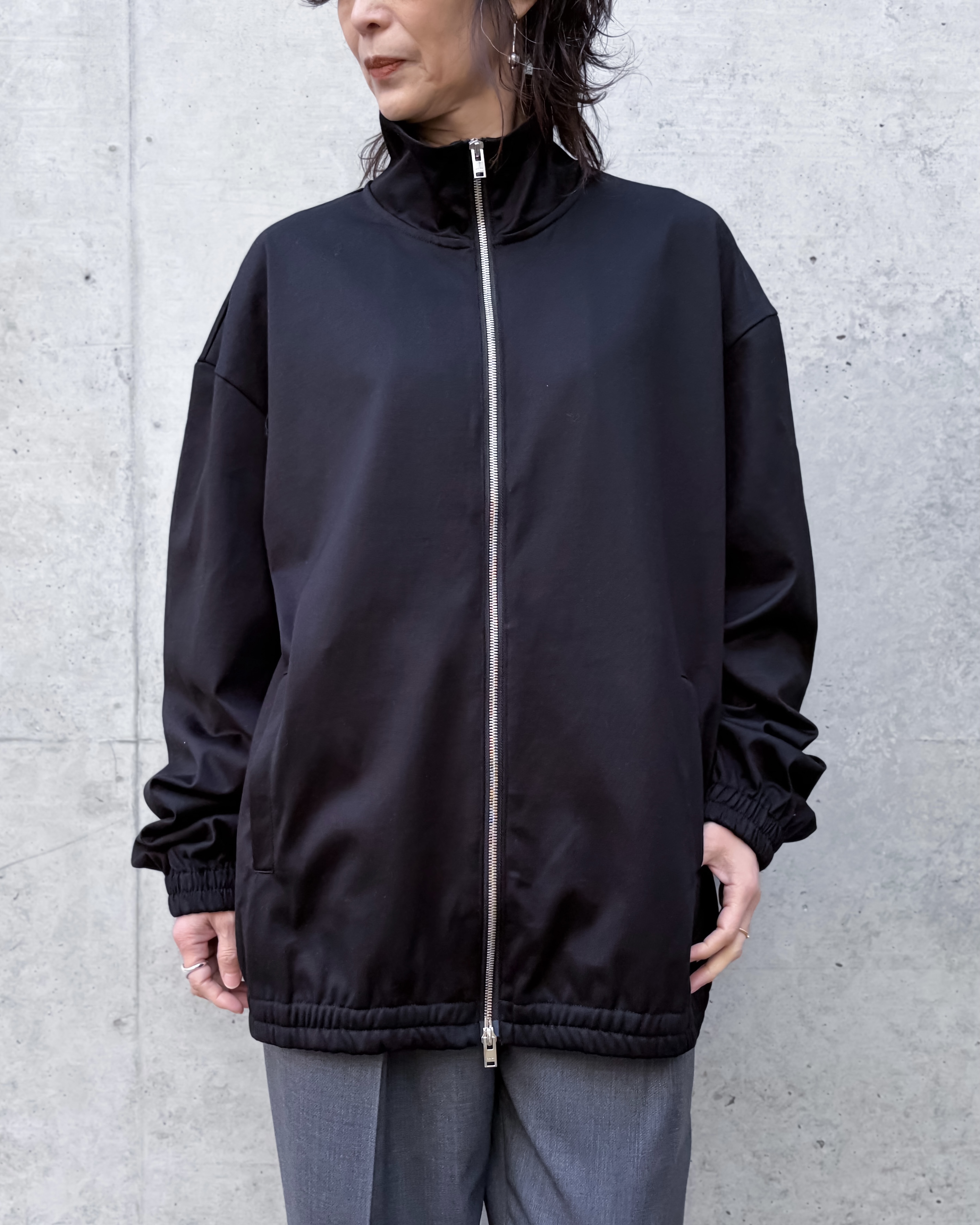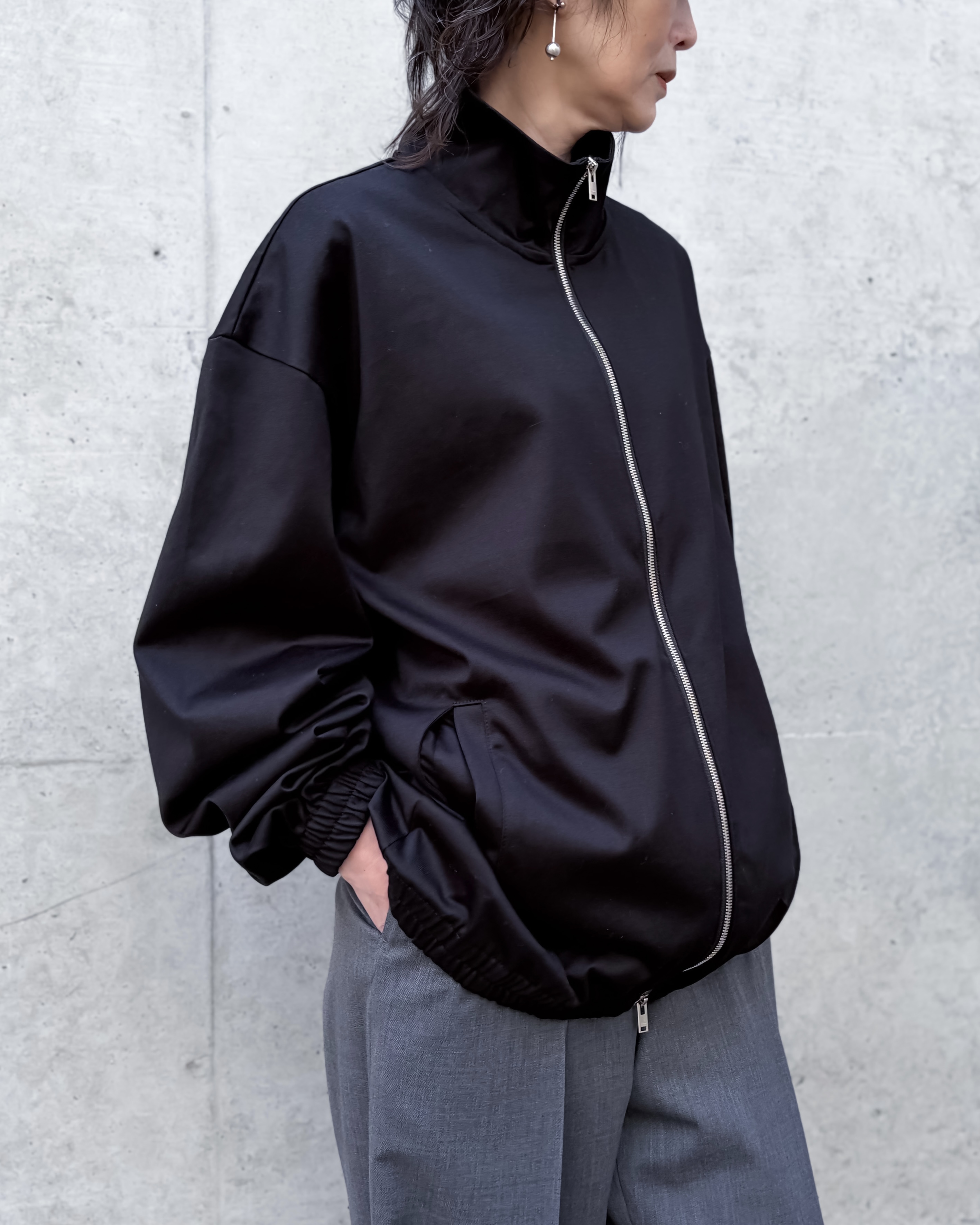 CINOH定番素材「REFINA」を採用したジップブルゾンです。トラックジャケットに着想を得た軽快なデザイン。ジャージー素材ながら美しい構築感を表現。家庭で洗える仕様で、日常に取り入れやすい一着です。