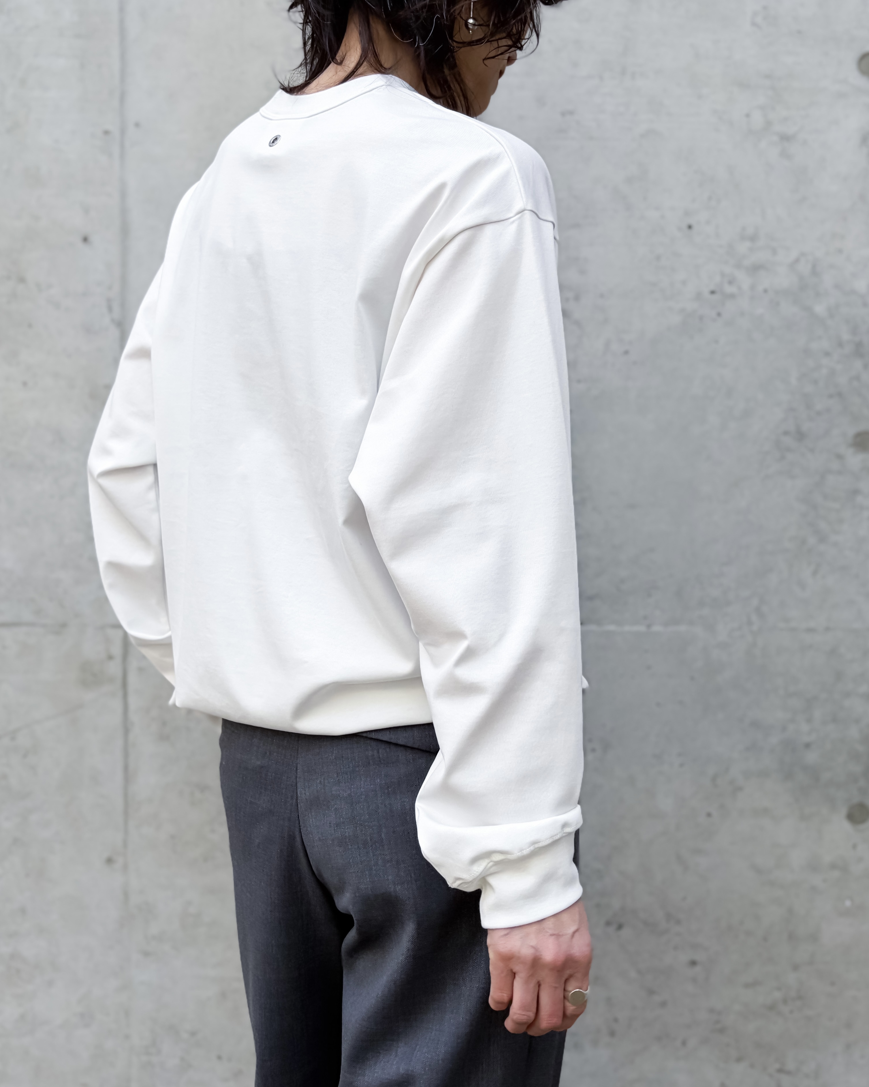 超長綿の細番手を高密度に編み上げたCINOHオリジナルの天竺「REFINA」。ヘビーオンスながらも上品な光沢とハリ感があります。撚糸本数を多くすることで、まとわりつかず清涼感のある着心地を実現。高い撚糸技術により生まれるキメ細かく上質な表面感。