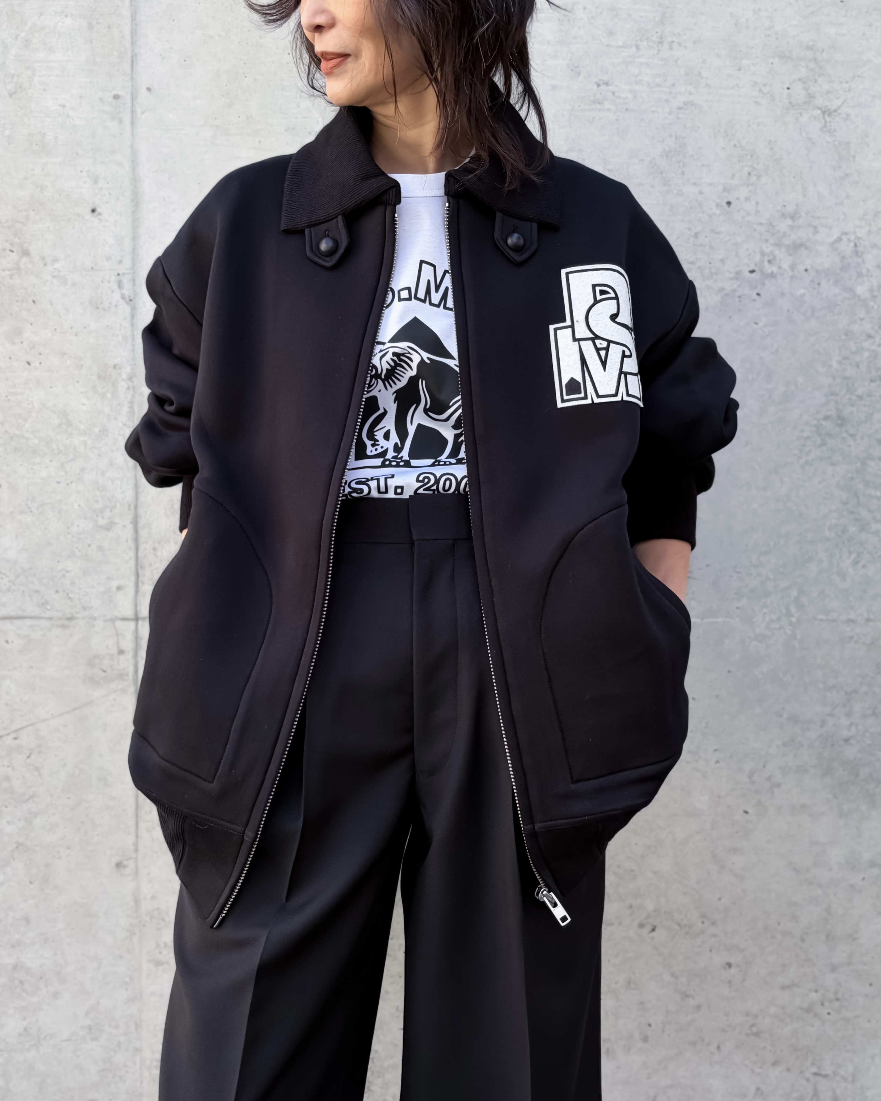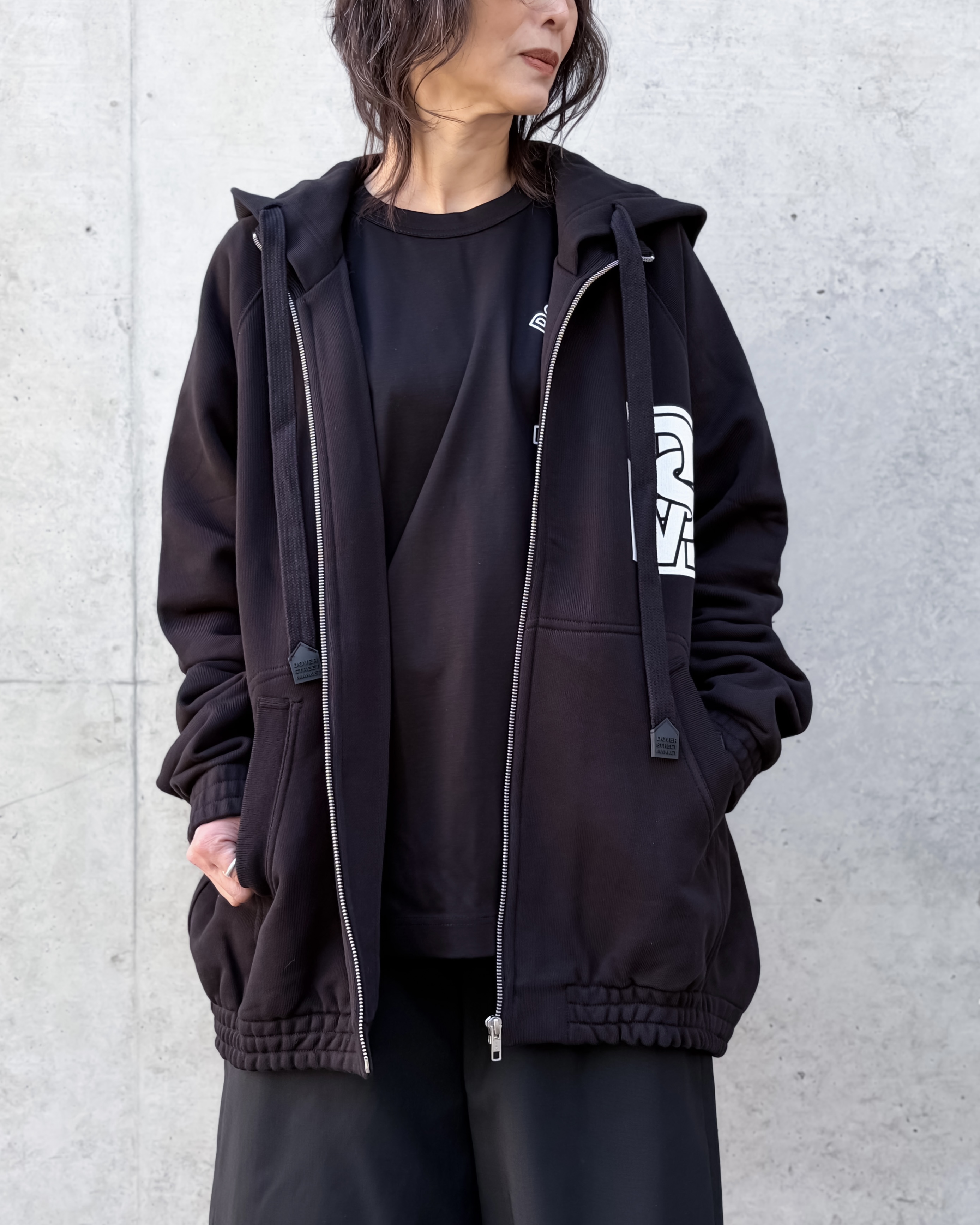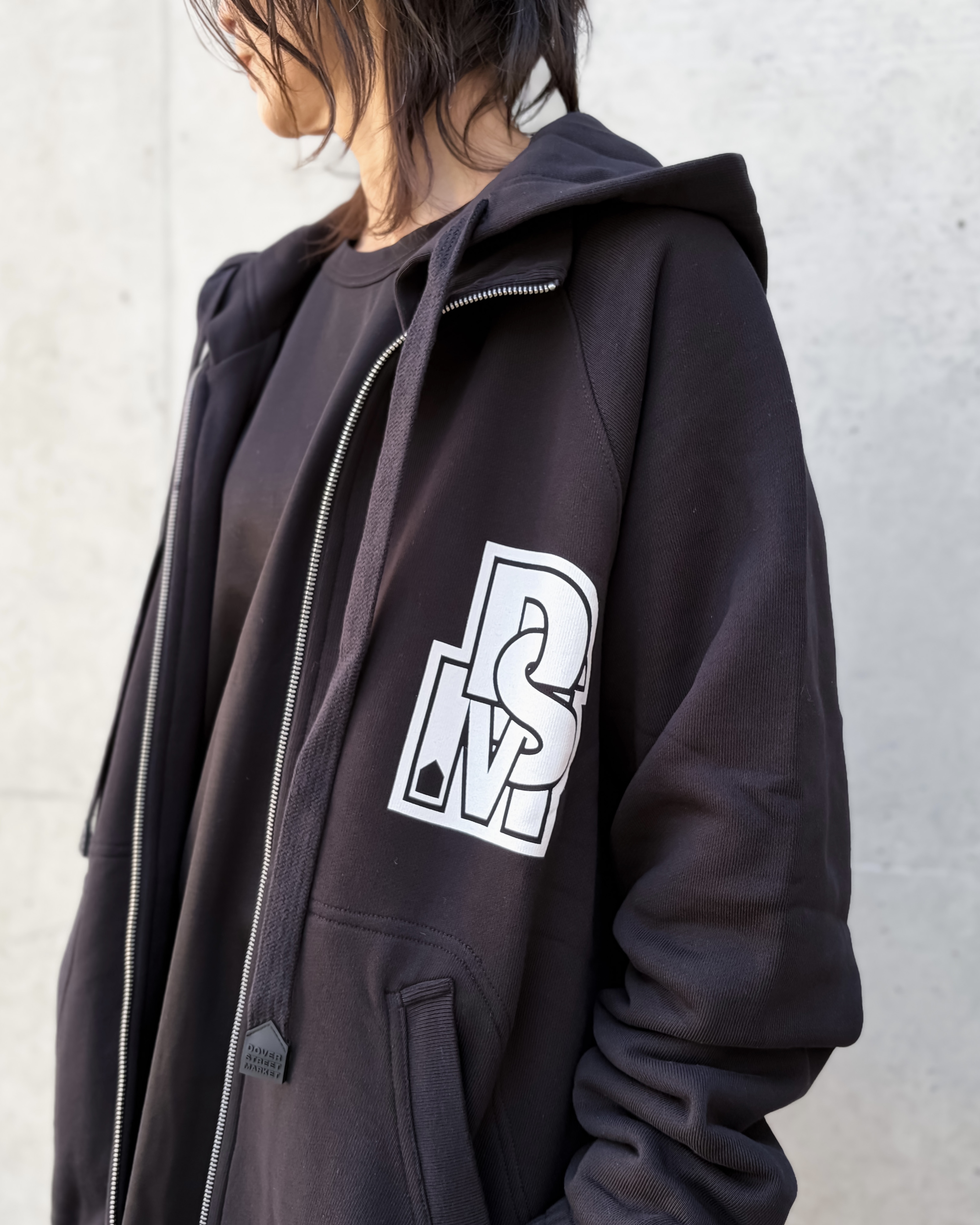左胸には、DSMのワッペンが付いています。背中後ろ下部分(内側)にはDOVER STREET MARKETのプリントが施されています。