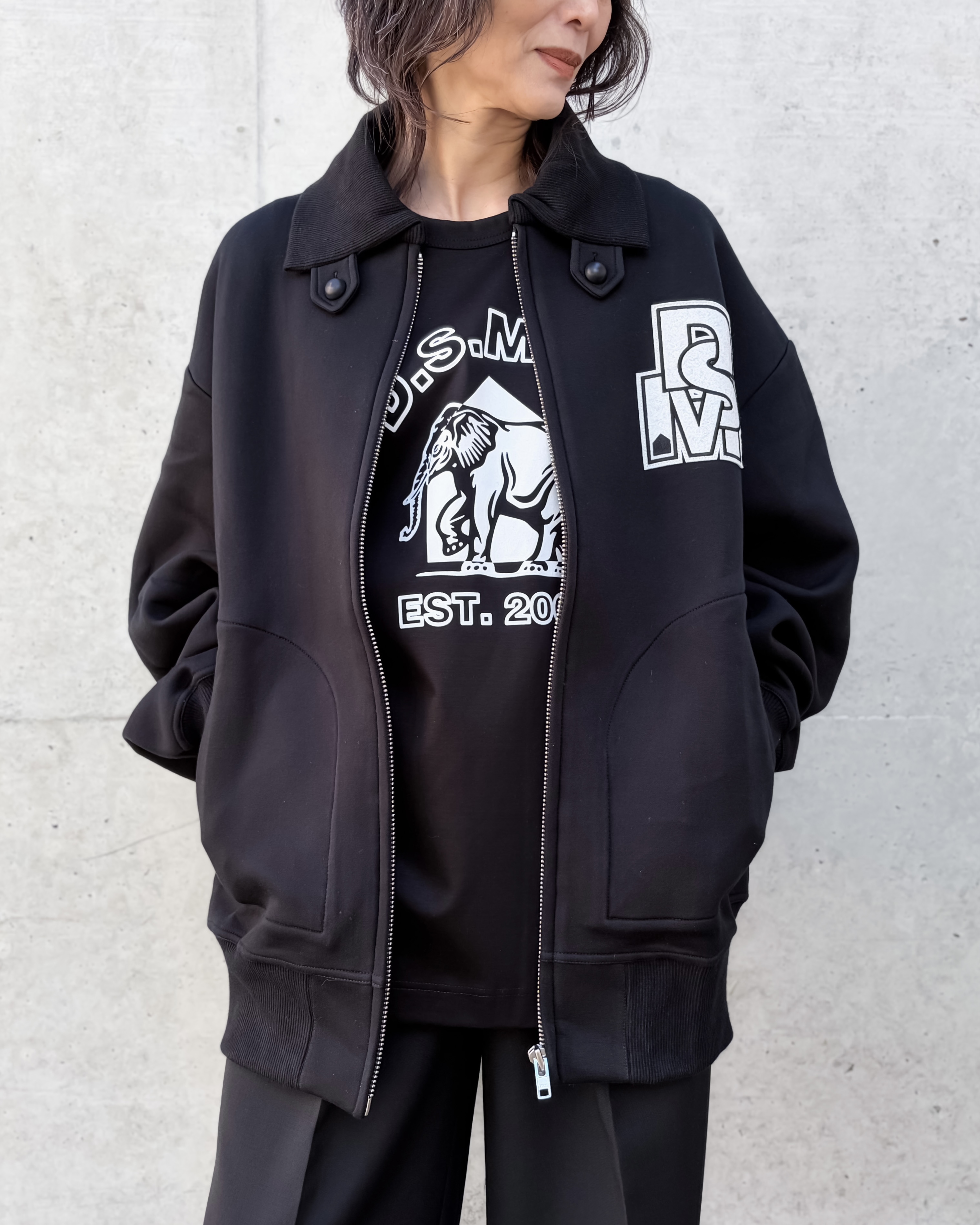 背中に象、左胸にはDSMのプリントが施されています。
