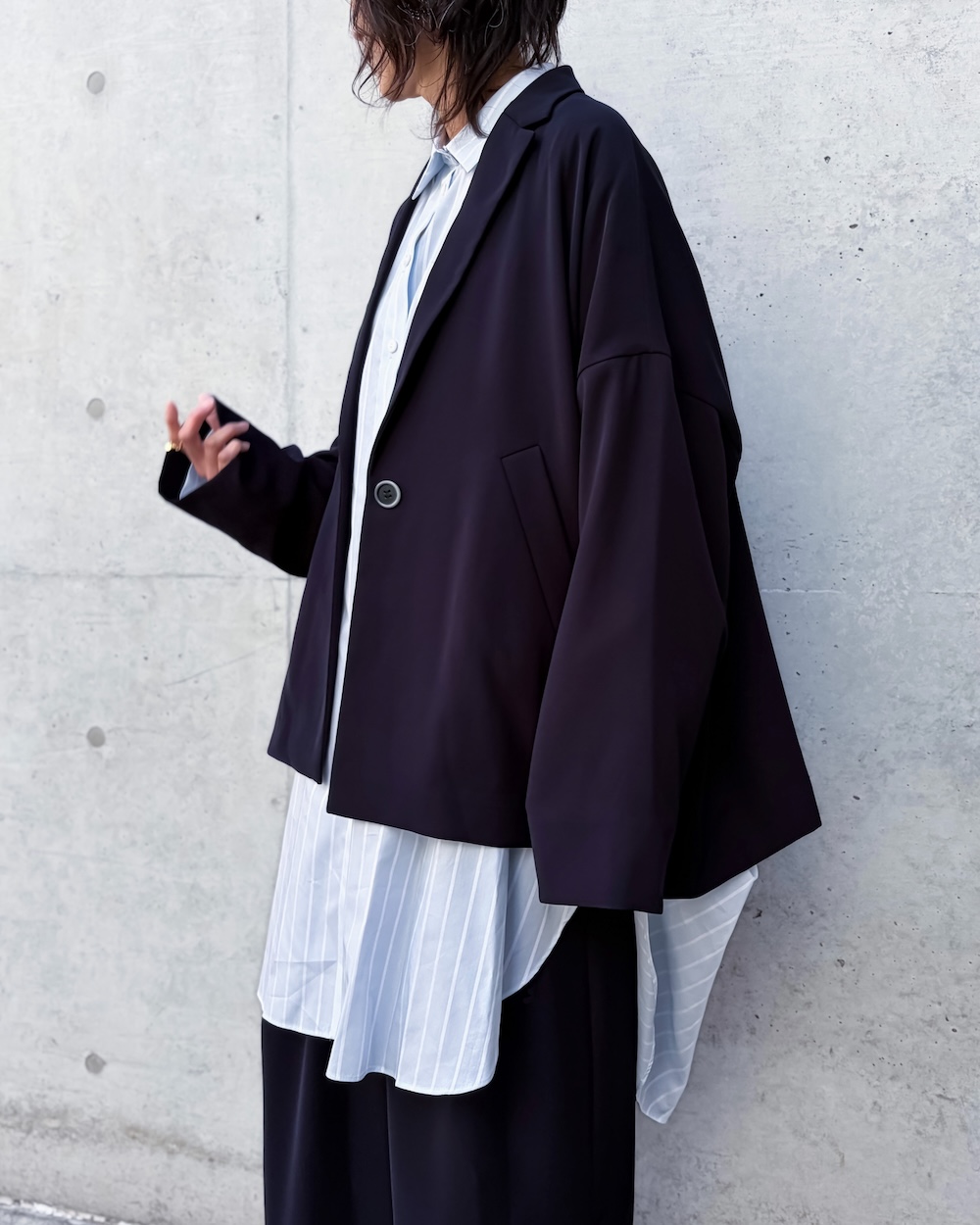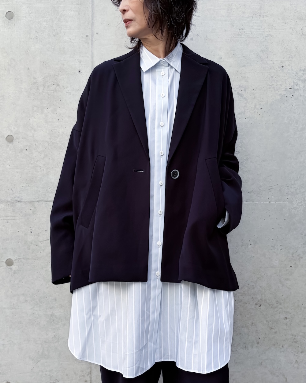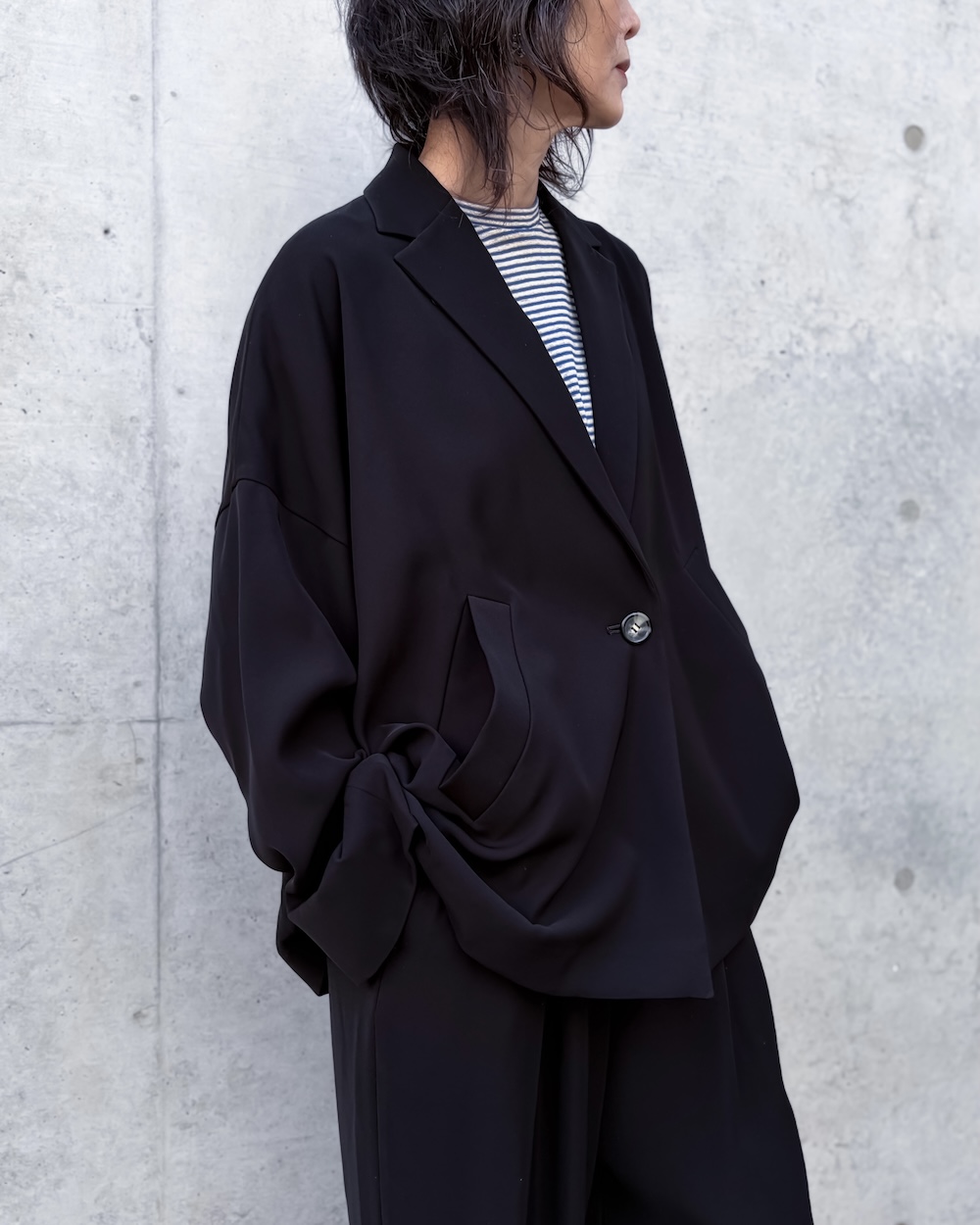 ENFÖLDらしいワイドBOXシルエットのテーラードタイプのジャケットです。