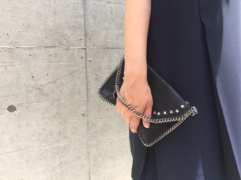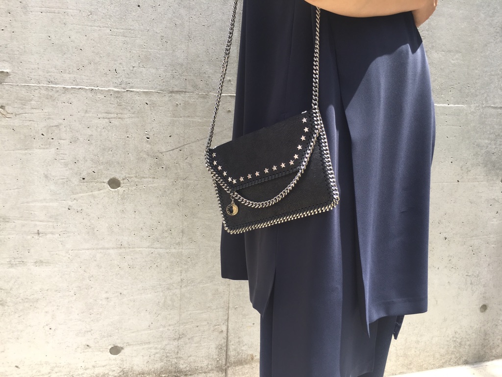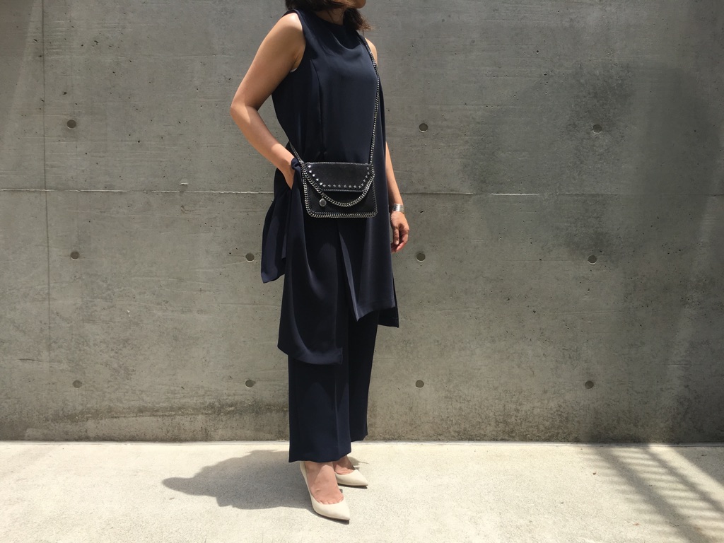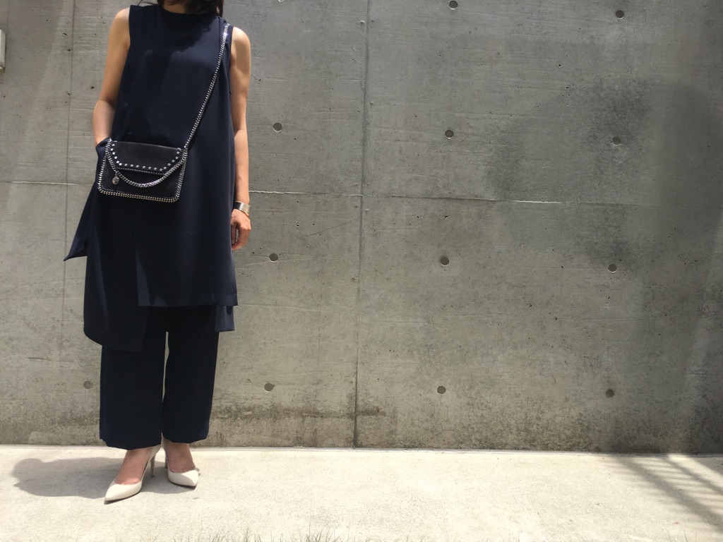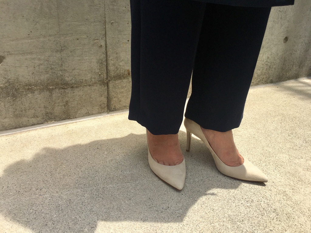 今回はトップスと近い素材と色をボトムに合わせて、よりエレガントさをプラスしたスタイリングになっています。