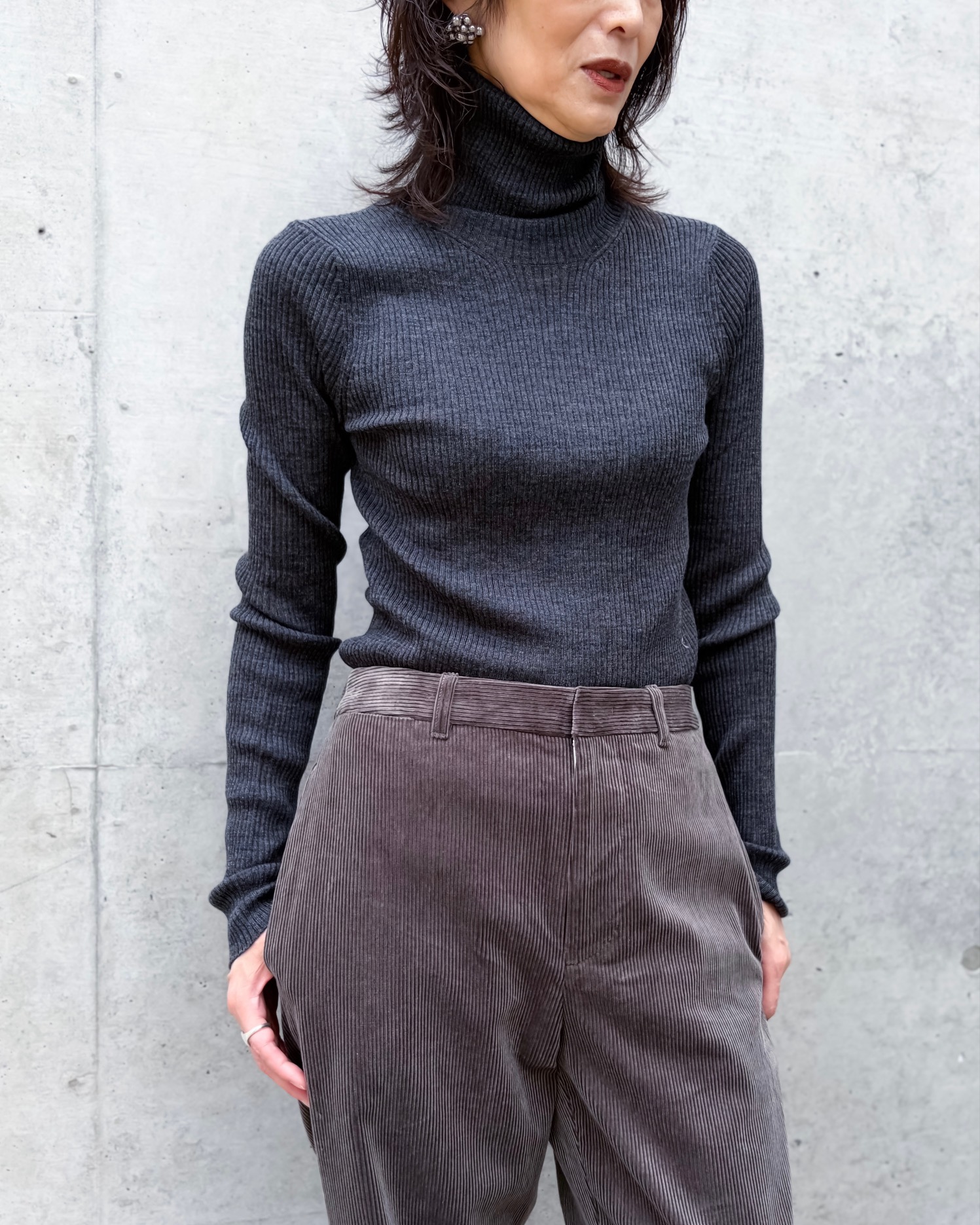 TOPSに合わせたのはGALERIE VIE定番のリブニット。