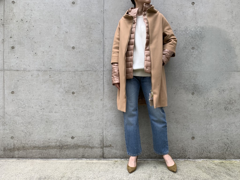 内側と袖のダウンを外すと、上品なコクーンシルエットのコートに様変わり。
