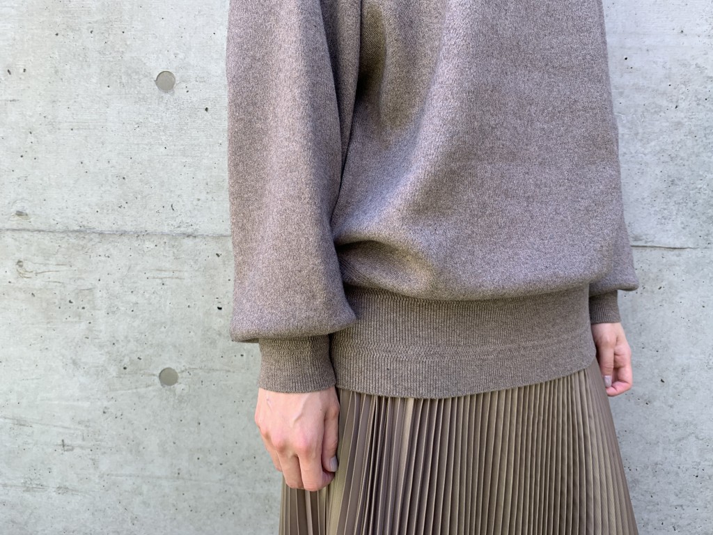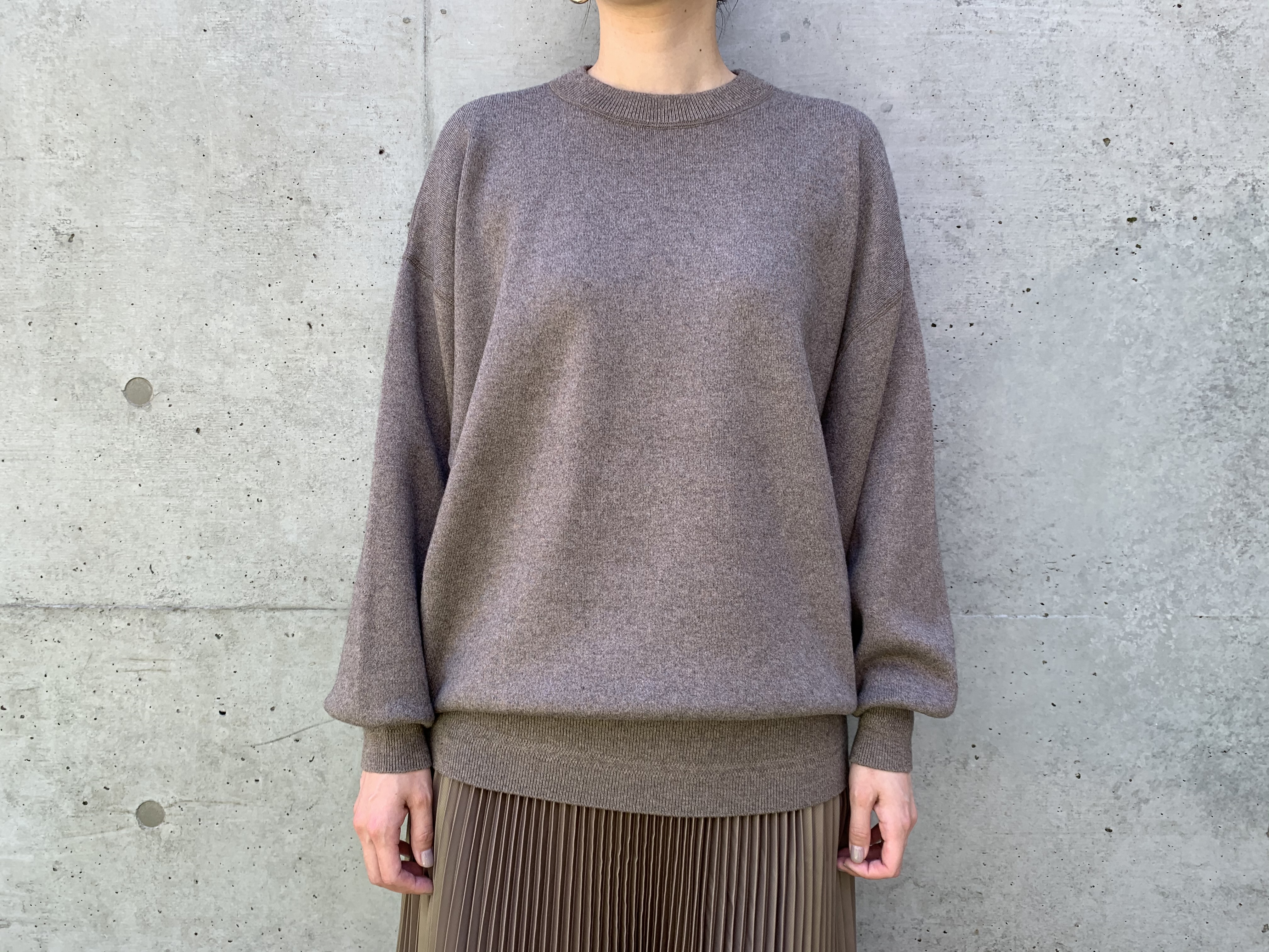 コットン85%/カシミヤ15%の糸で程よい張りが出るように総針で編まれたニットで、