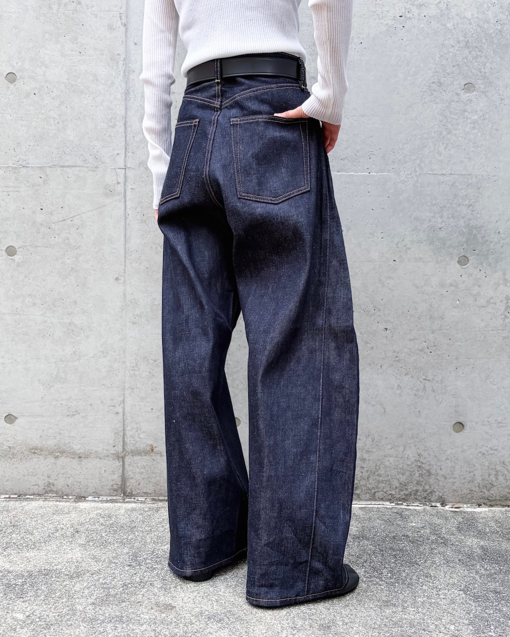 クリーンな印象のリジット生地はパリッとした風合いで、はきこむほどに増していく味わいと色落ちを楽しめるのも魅力のひとつです。