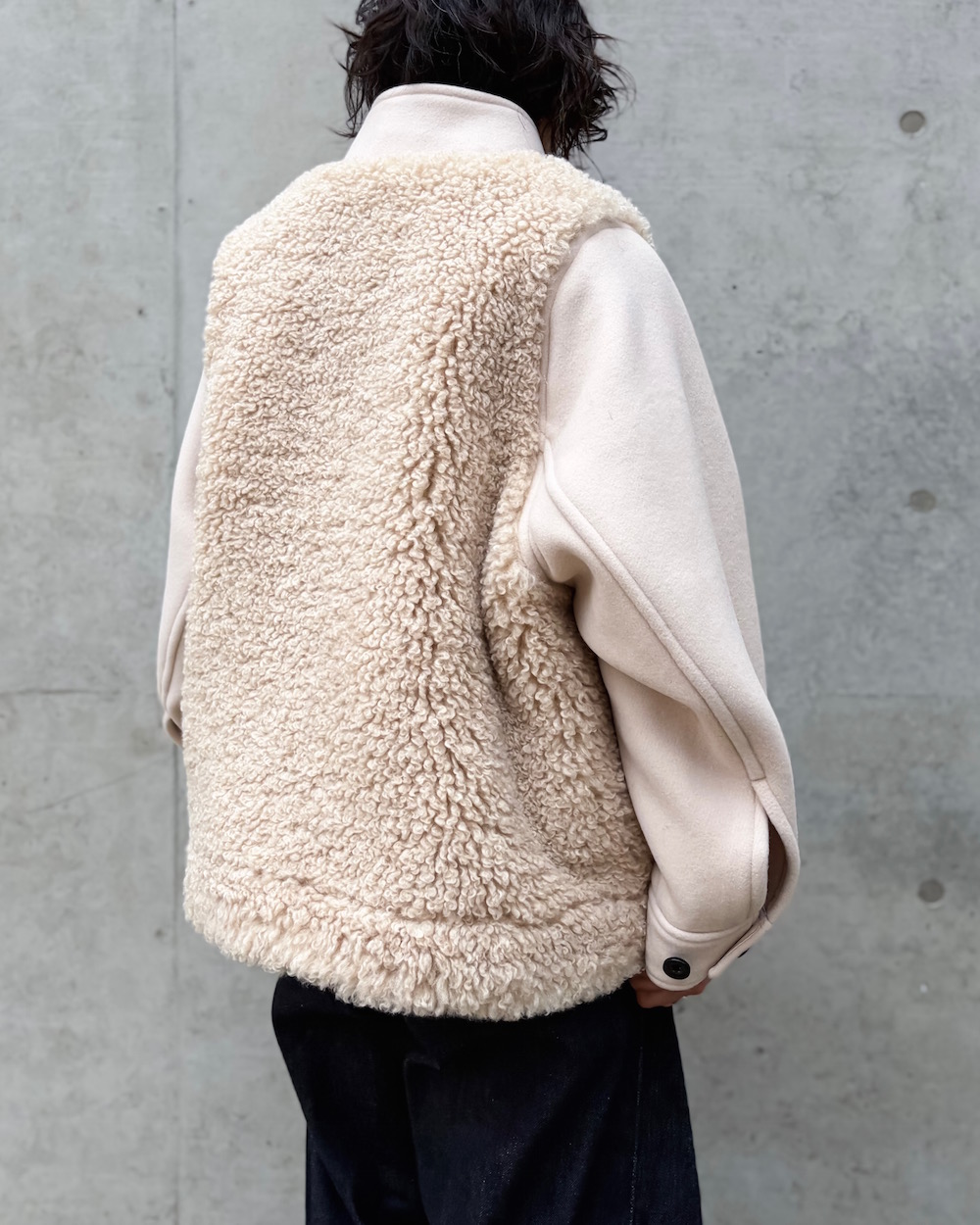 ダブルフェイスの起毛生地を使用したジャケットです。