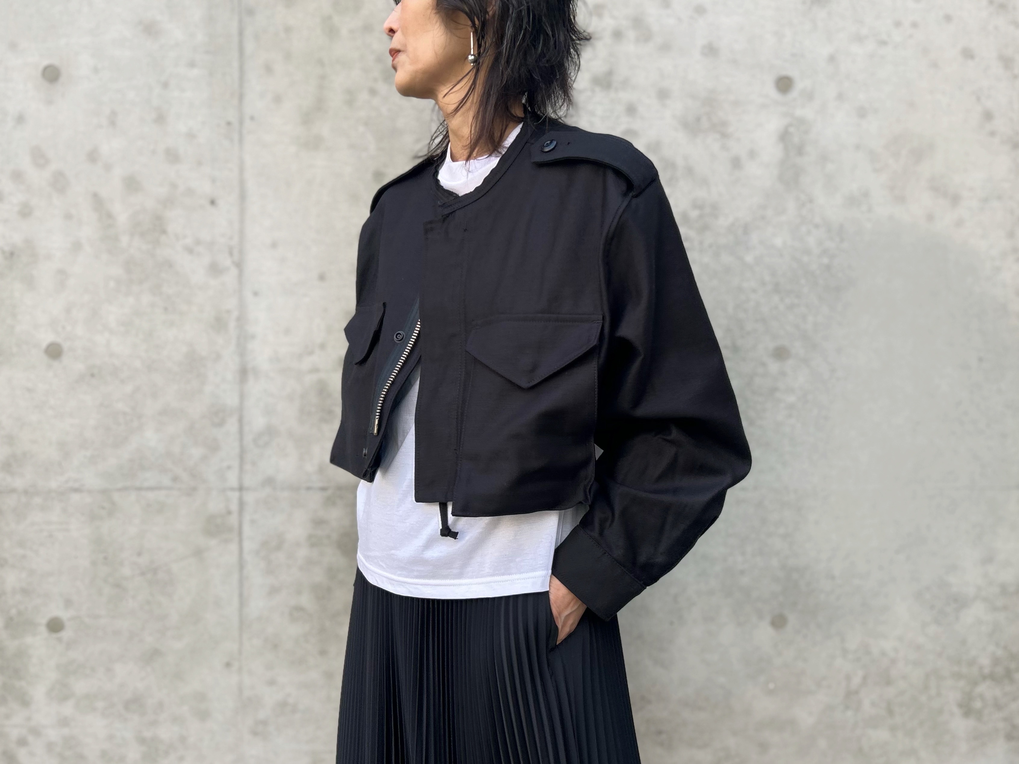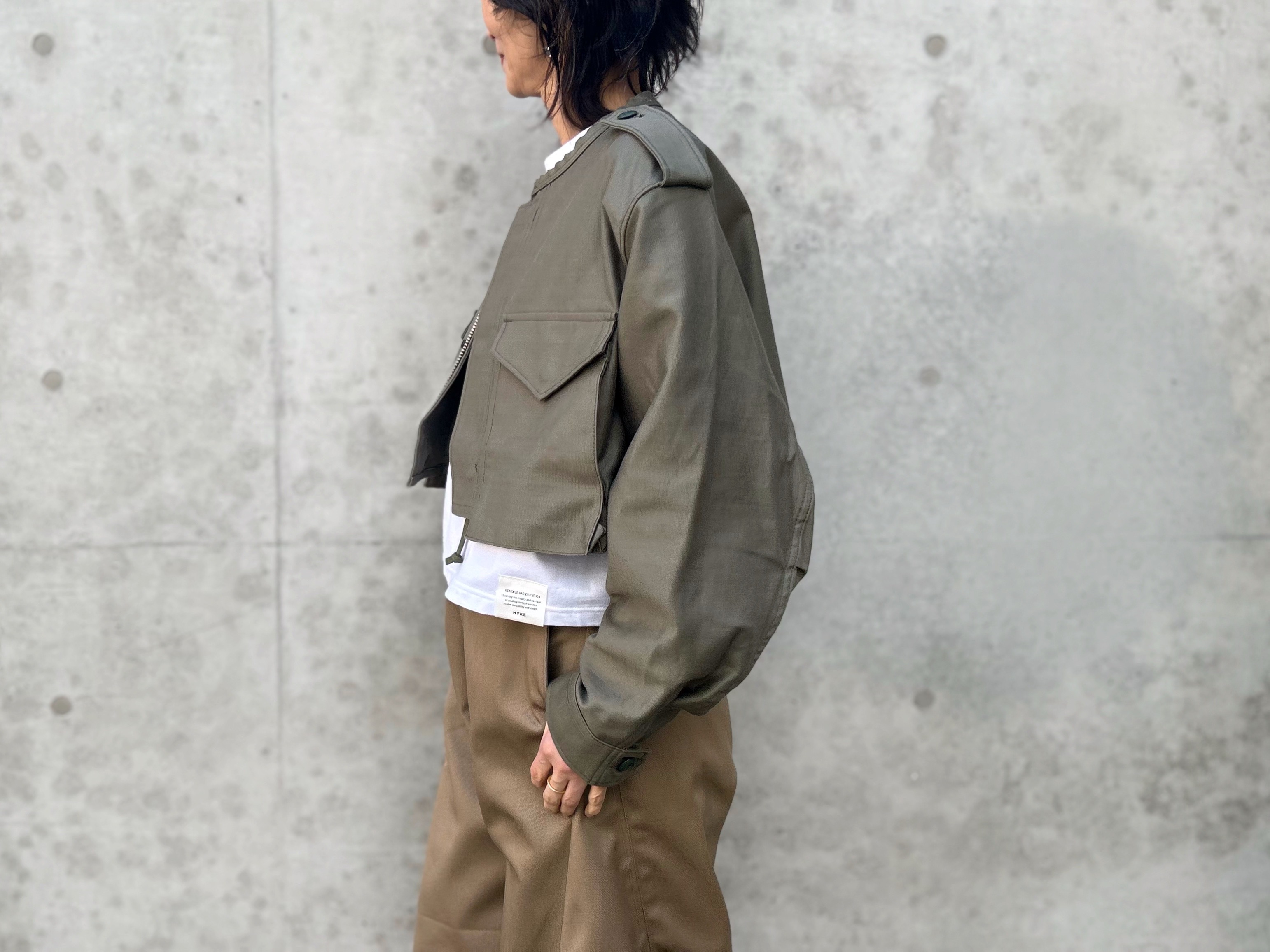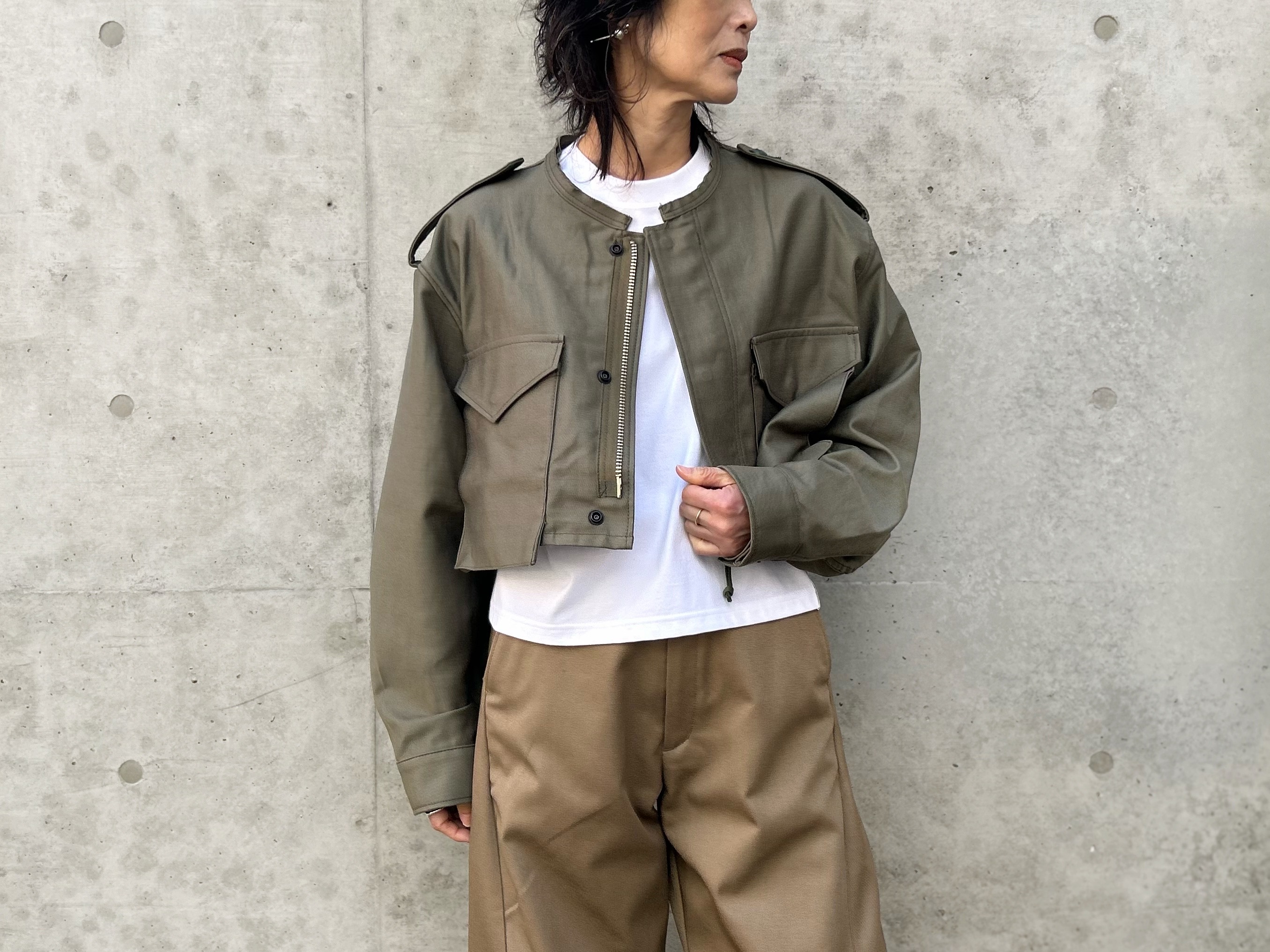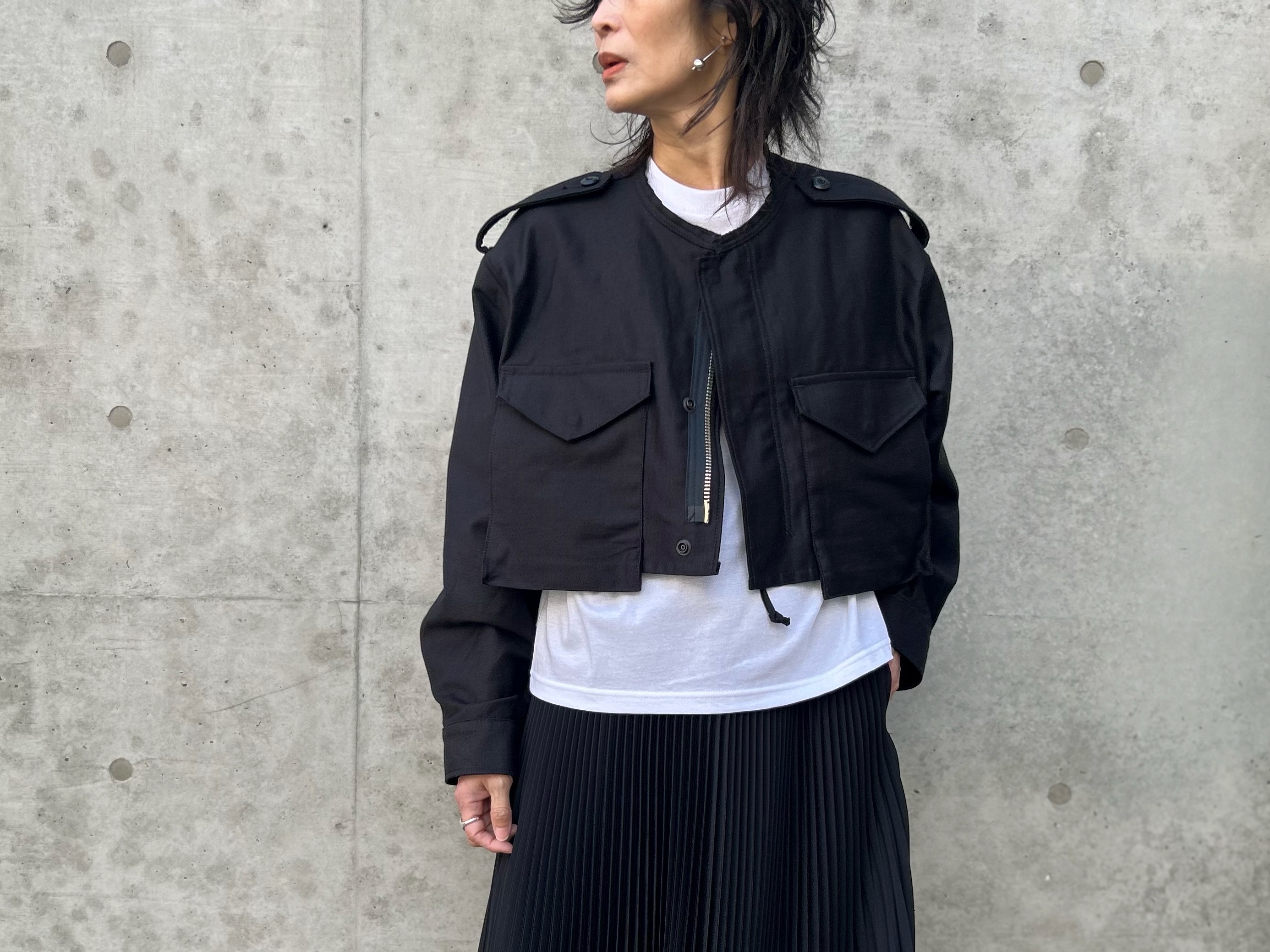 HYKEの定番的素材のバックサテンを使用したミリタリージャケット。