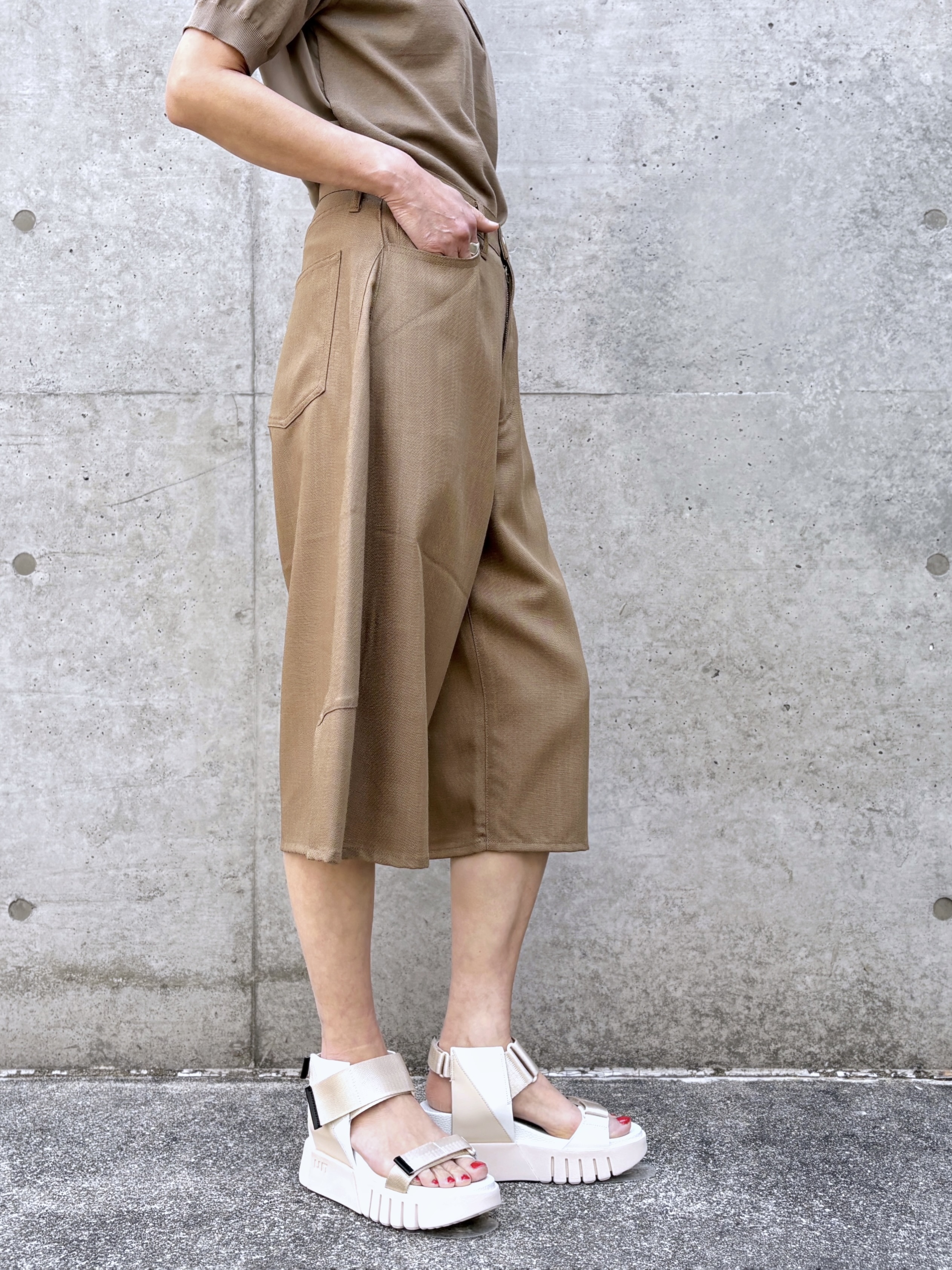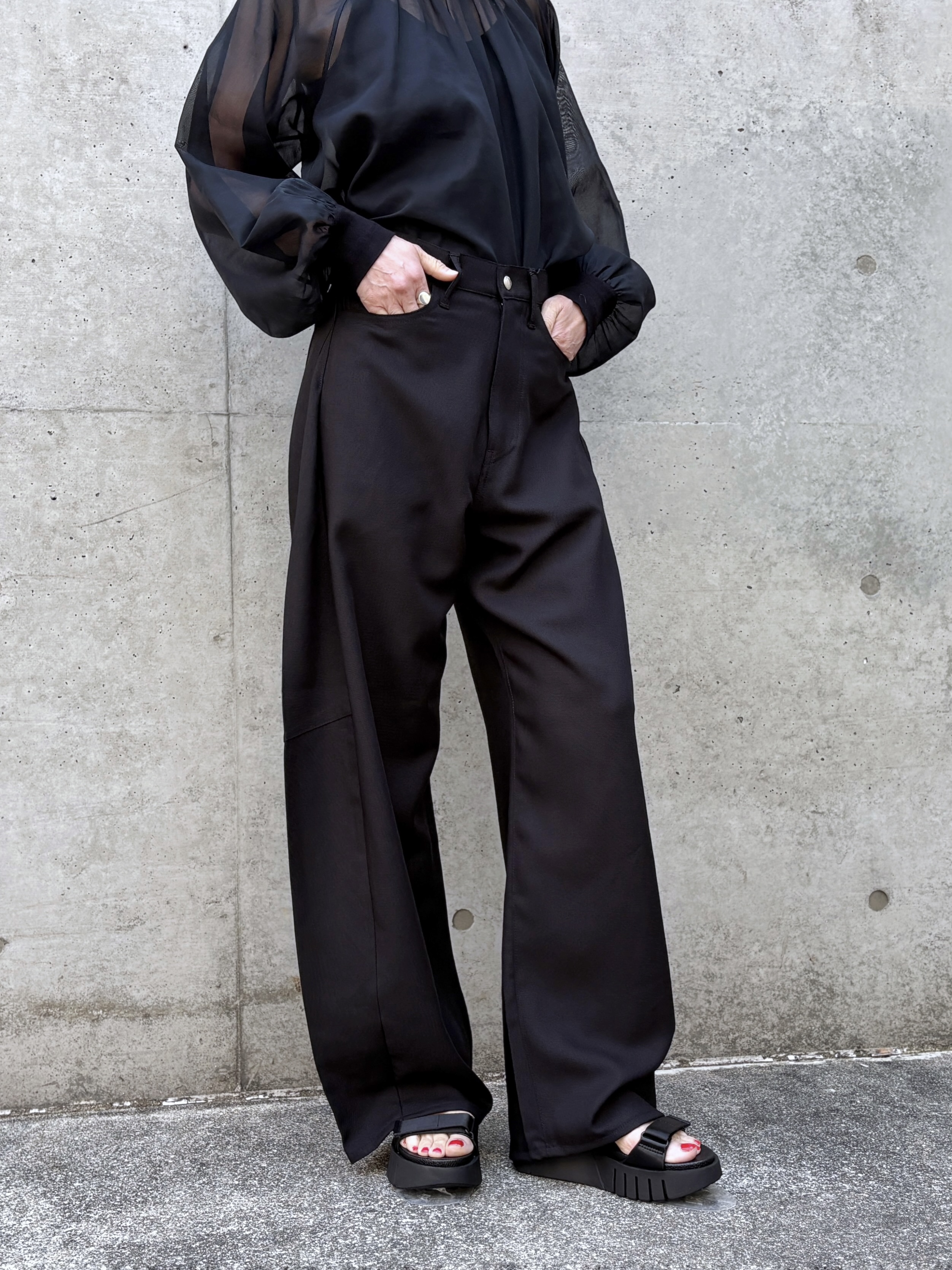 レーヨンのスラブ糸とポリエステルの扁平糸をタテヨコに配列させた生地を使用しています。