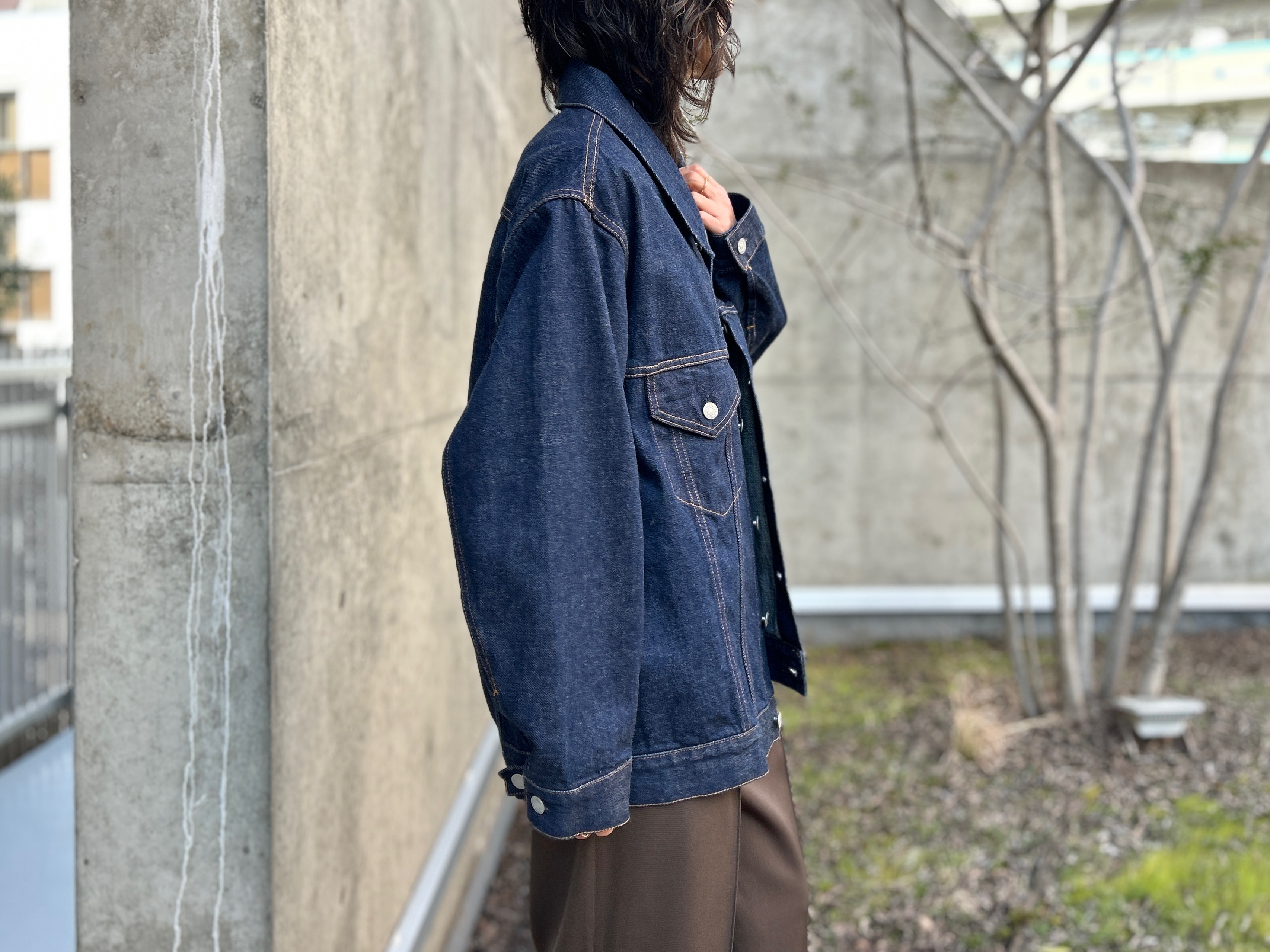 1枚でも着映えするアイテムですが、中にも着込めるゆとりがありながら、コートインも可能な絶妙なサイズ感に仕上げました。オーガニックコットンでつくられたデニム生地は着込むことで表情を増し、日々のワードローブの定番として重宝するアイテムになってくれます。