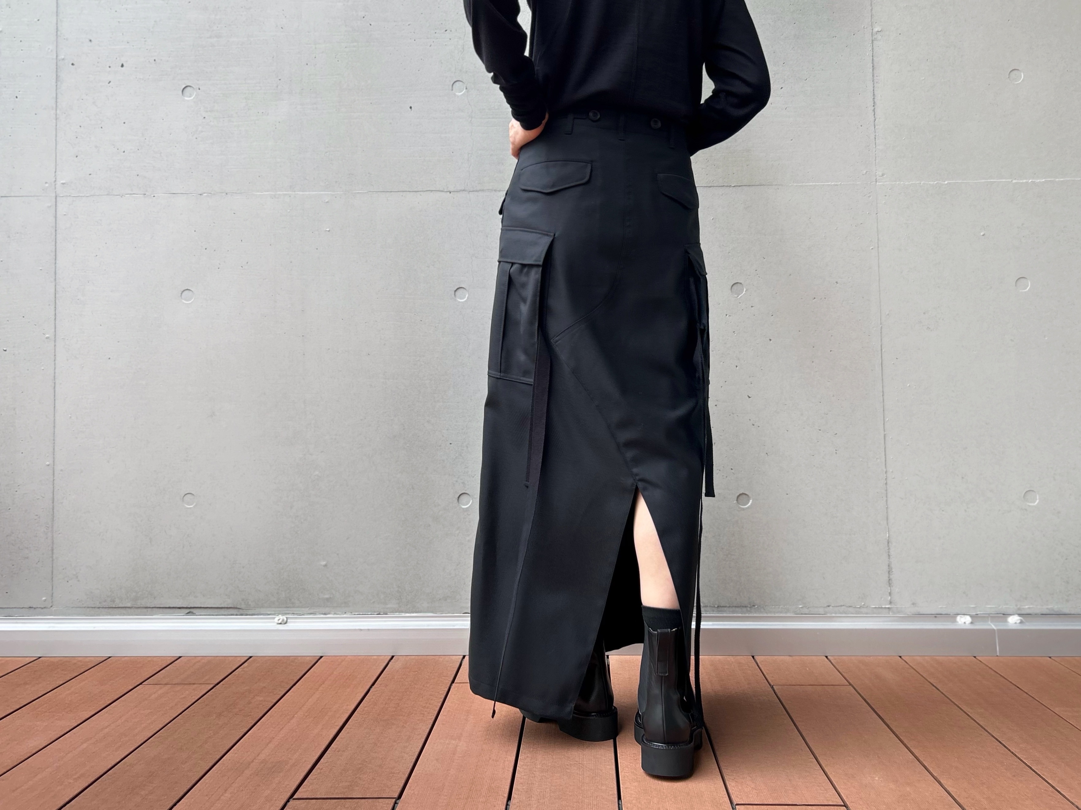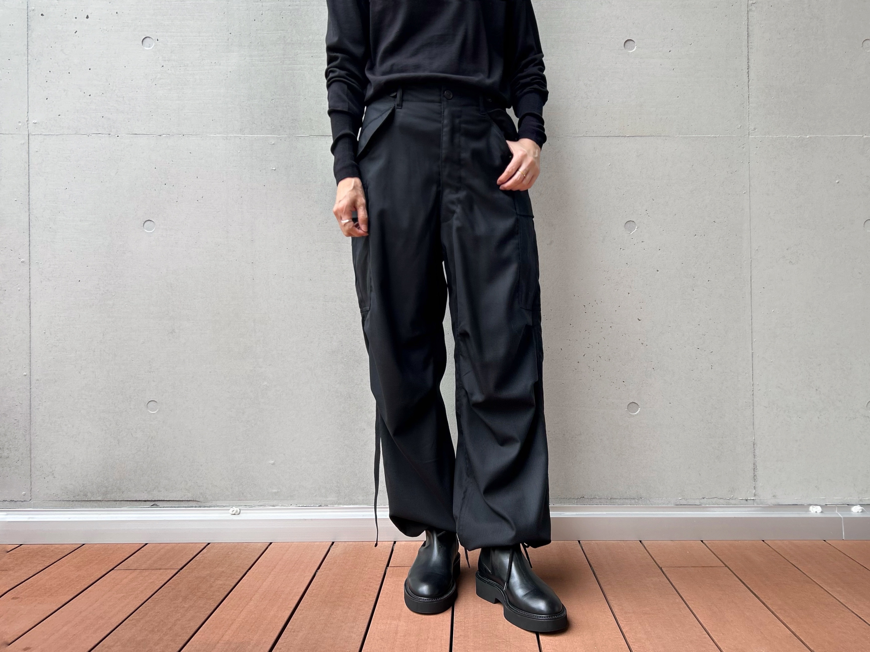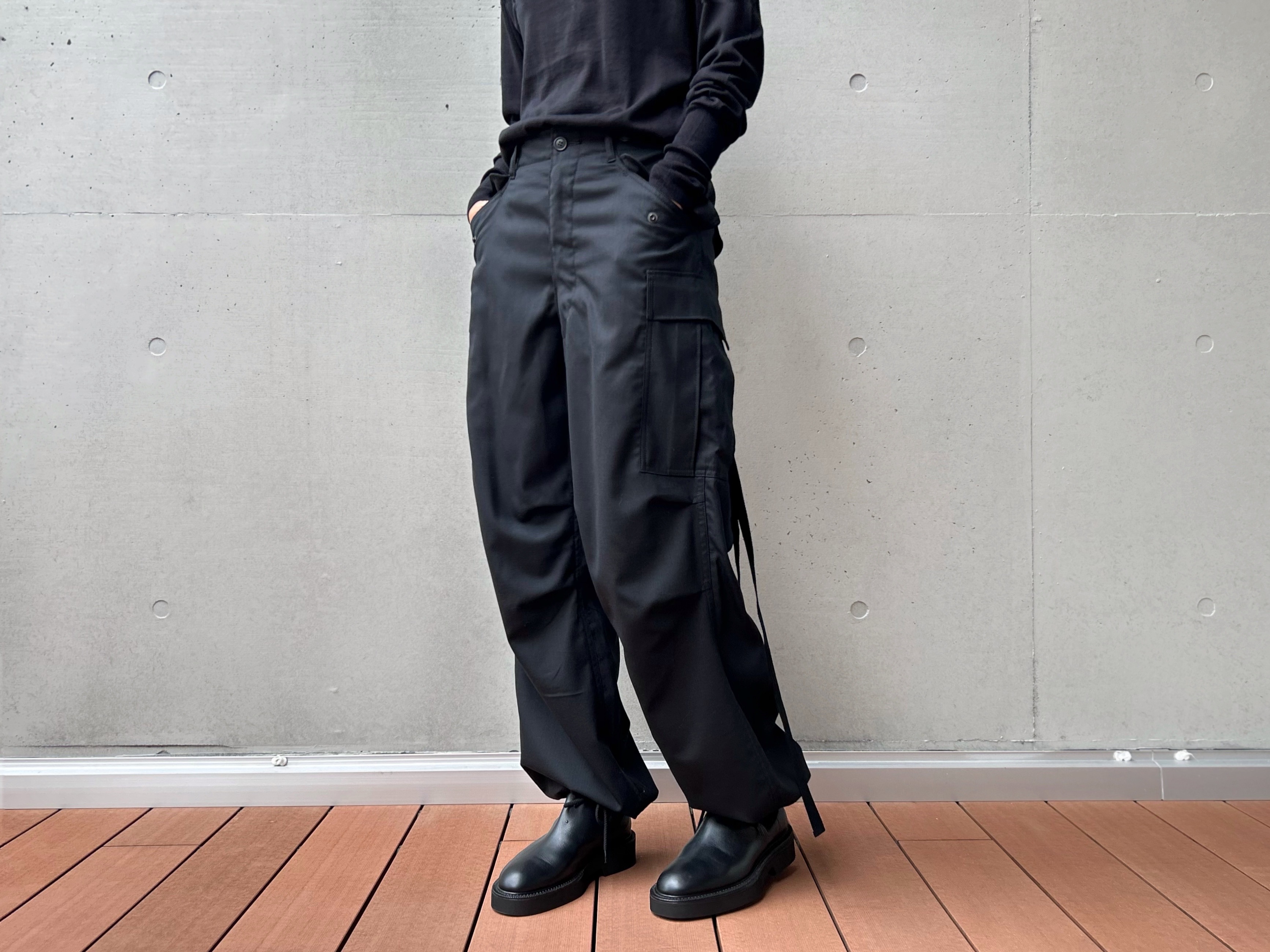 カーゴパンツのデザインはそのままに、JUNYA WATANABEらしいシャープなシルエットを構築。