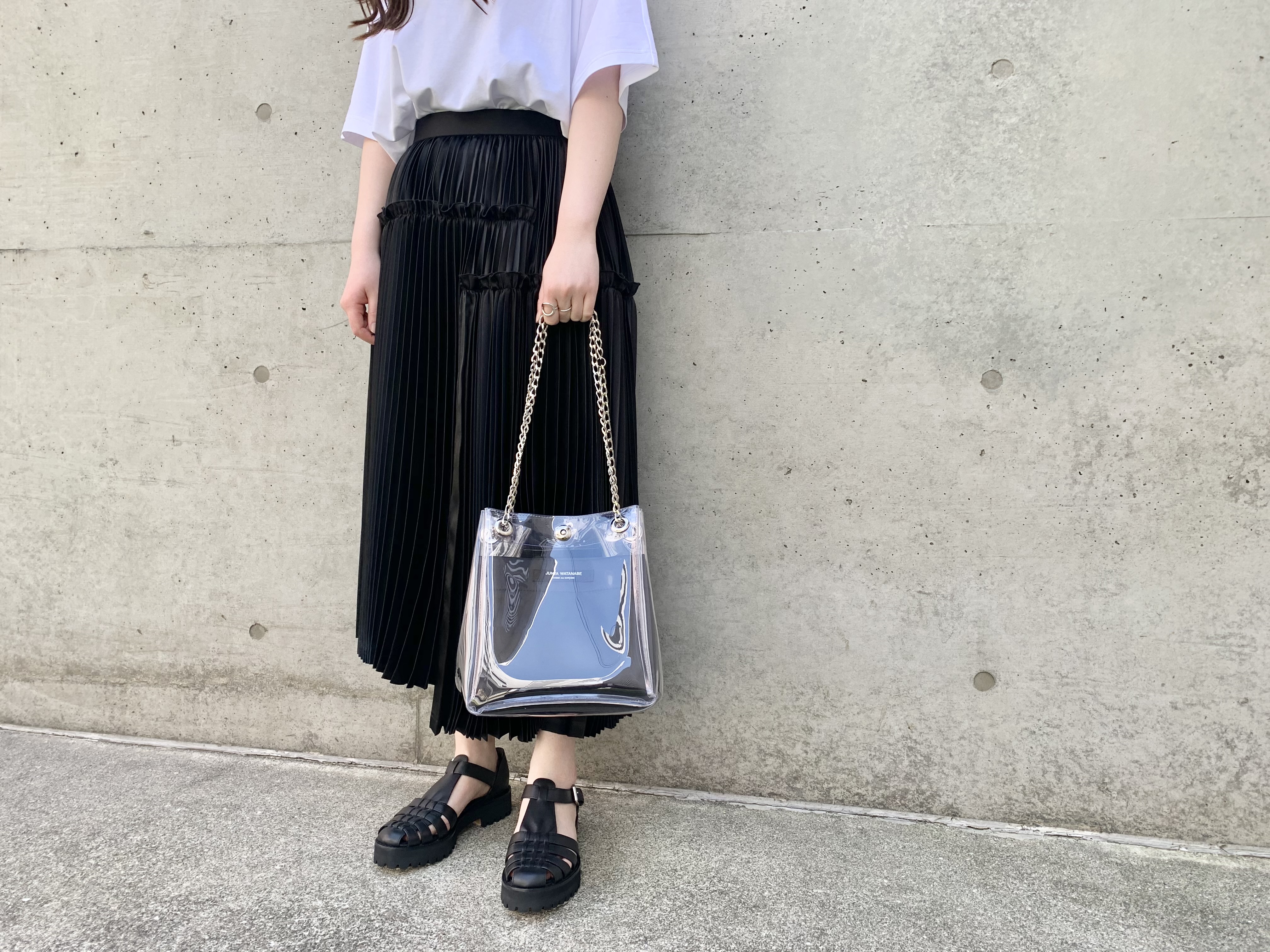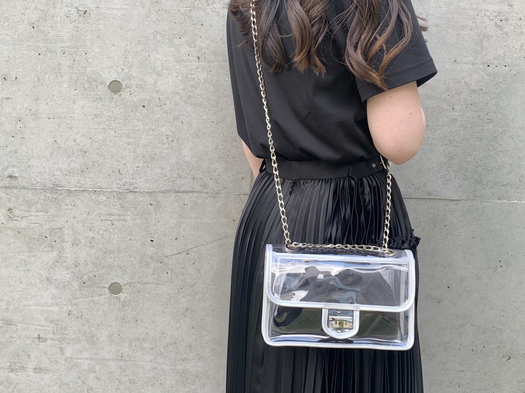 白の縁取りがクリアのバッグに存在感を与えてくれ
