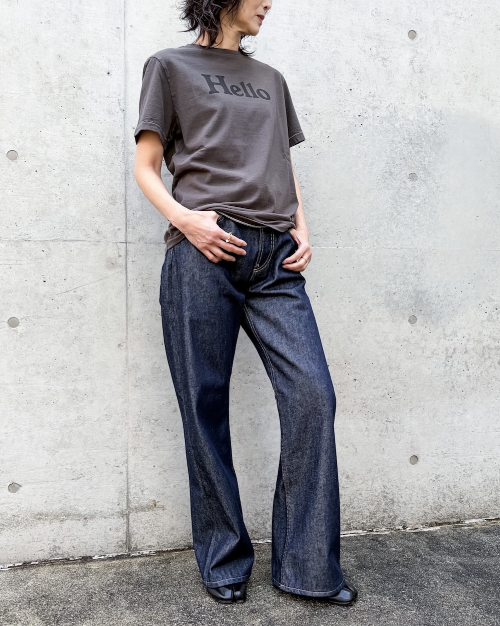 スパイスになるロゴTEEですが、ほどよく着込んだ雰囲気が大人のスタイリングにとても馴染みます。