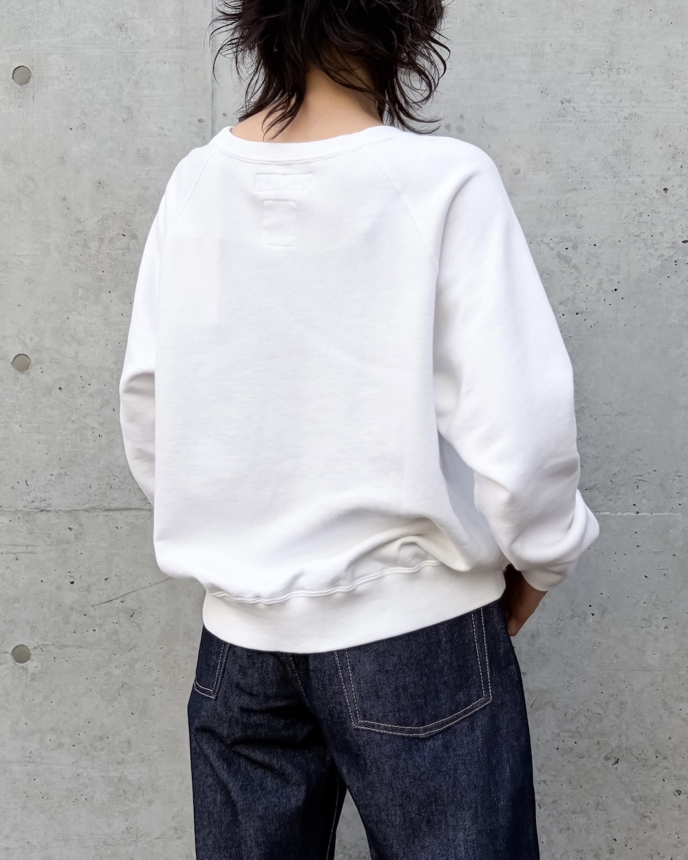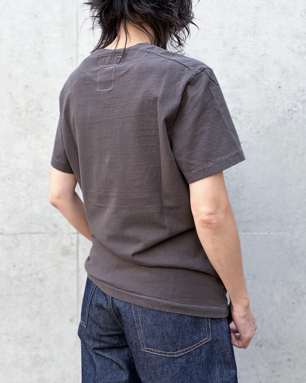 また編み地に洗濯を繰り返して少しカサついた糸感とそこに生地加工にて着古したような食ったり感を加えています。