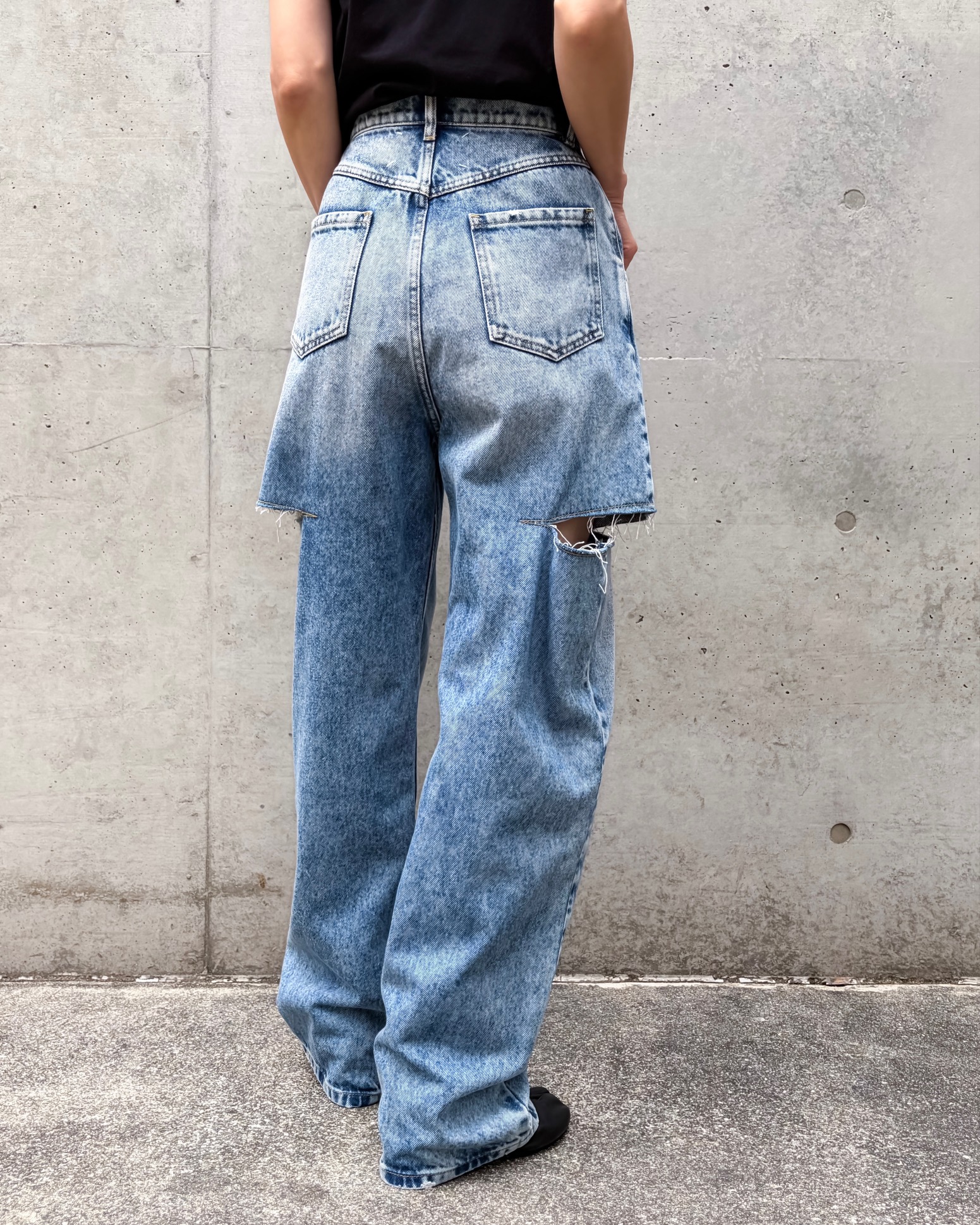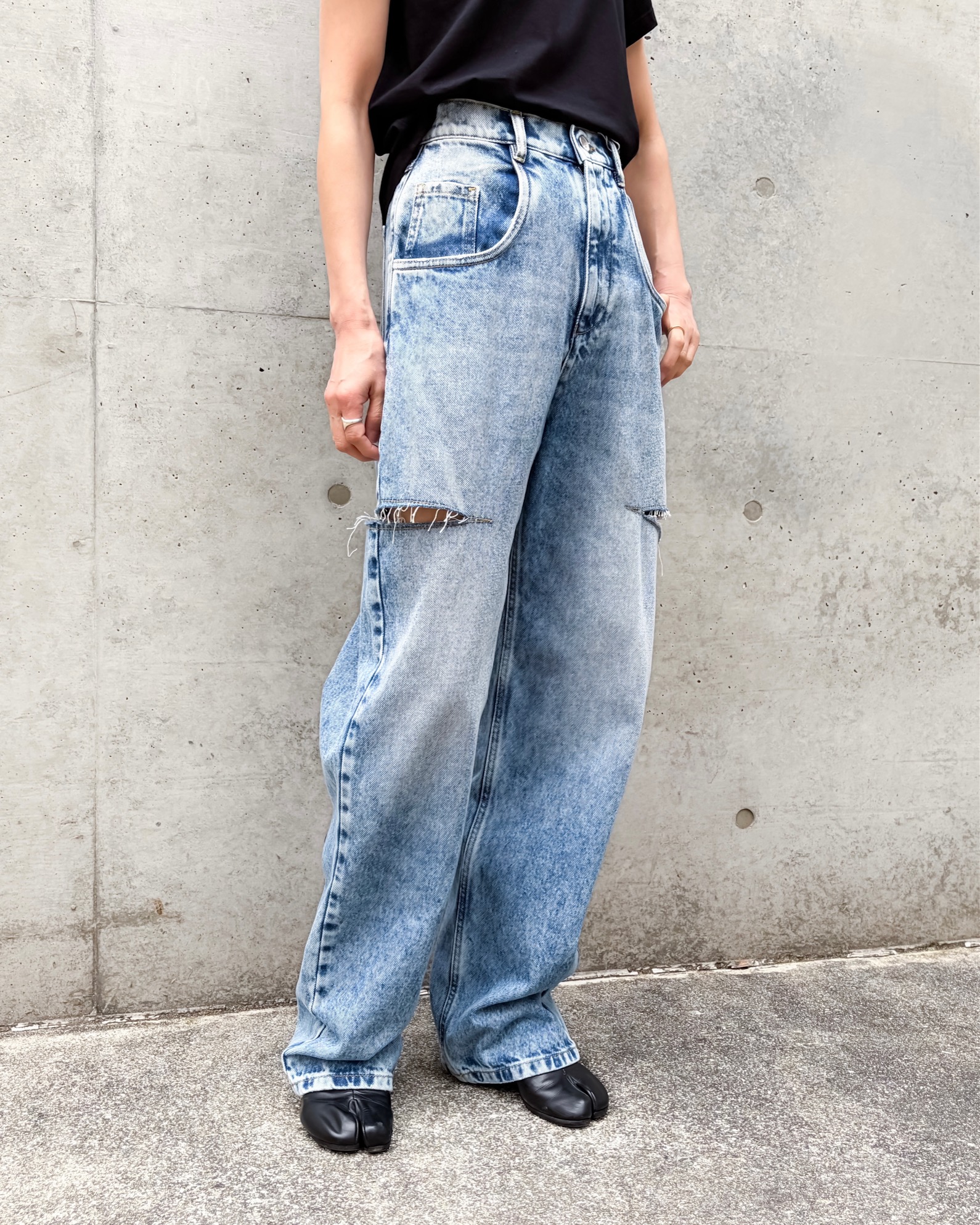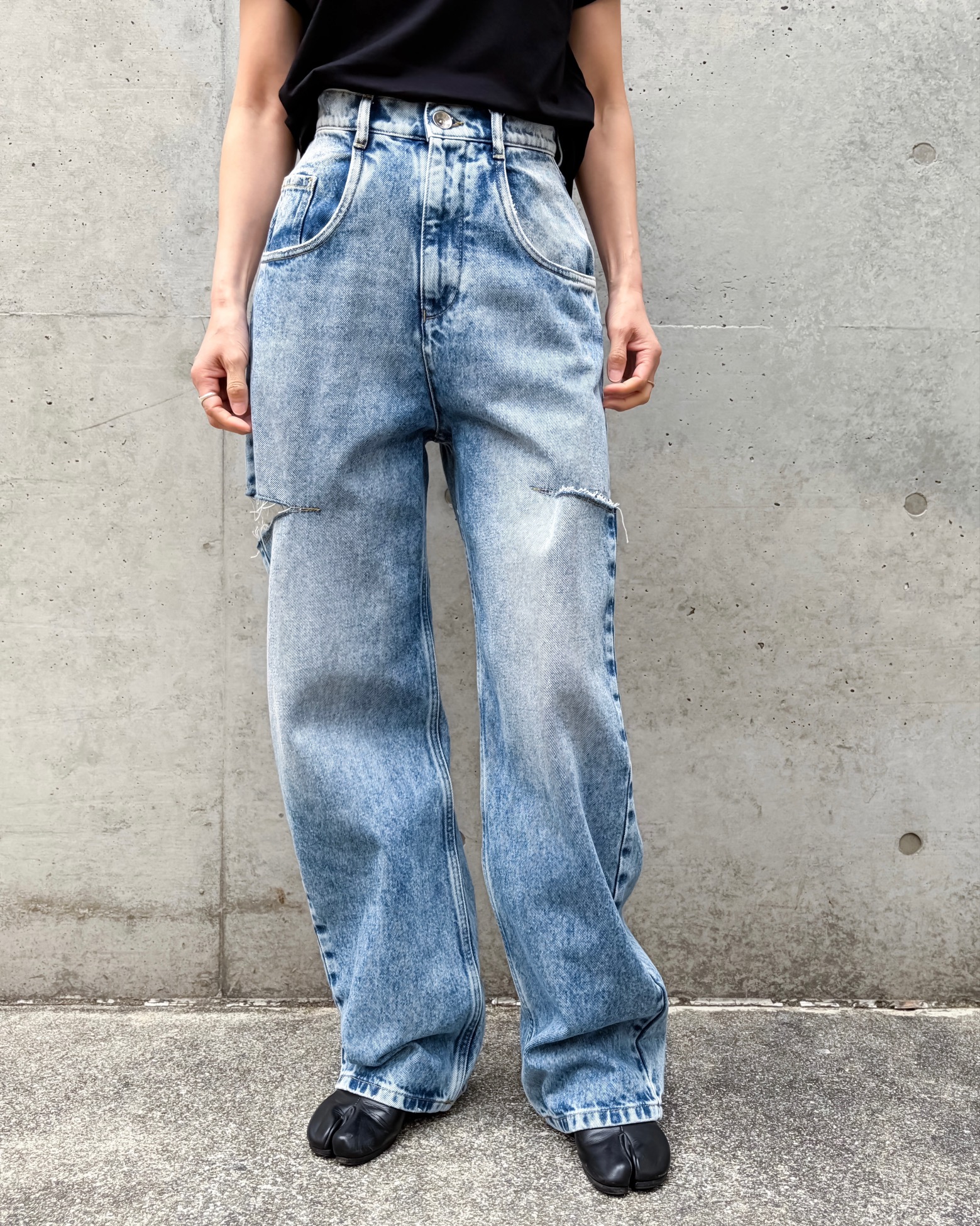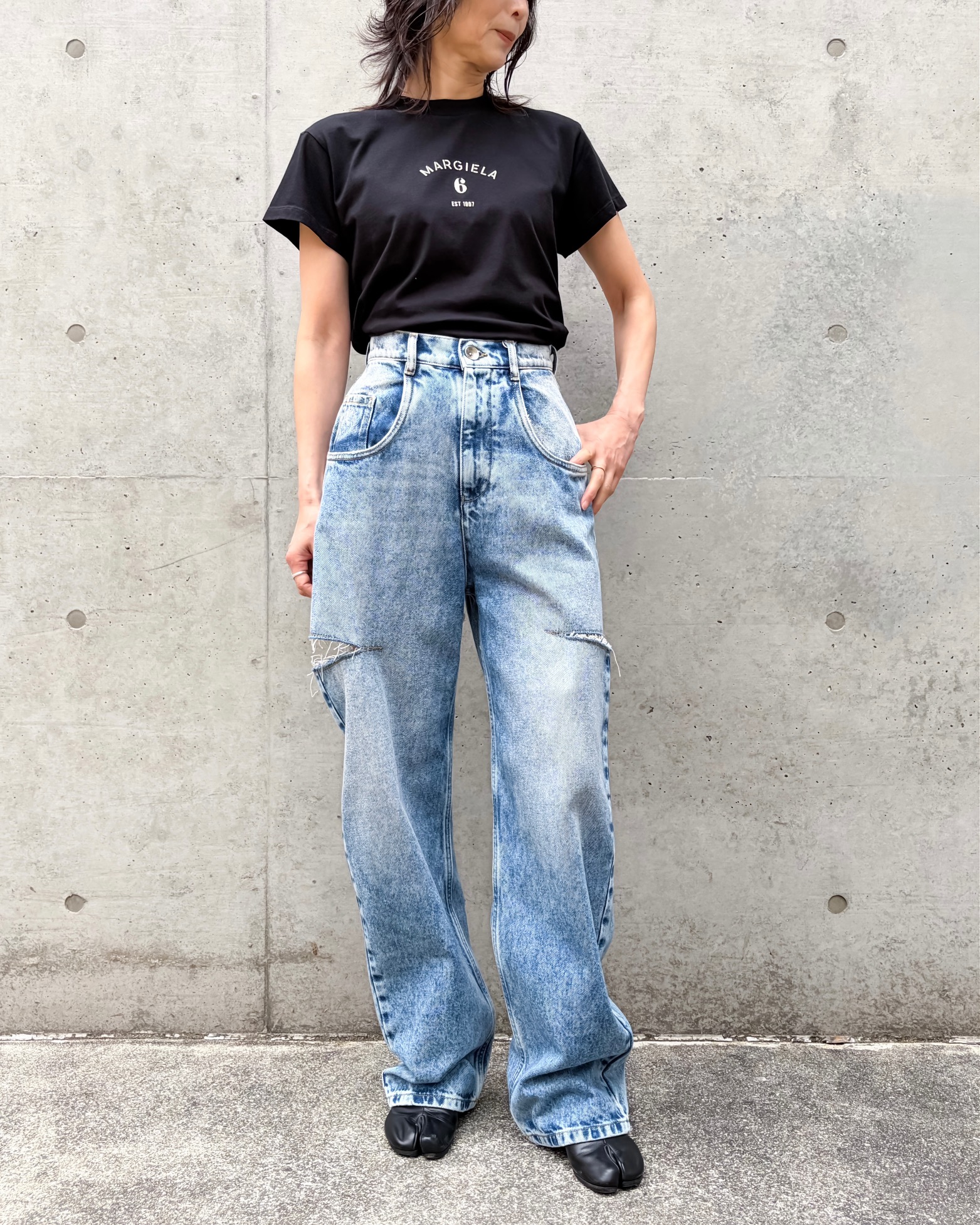 ウエストはすっきりとタイトに、レッグにボリュームをもたせたマルジェラを代表するデニムパンツ。