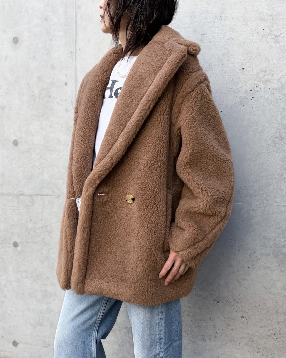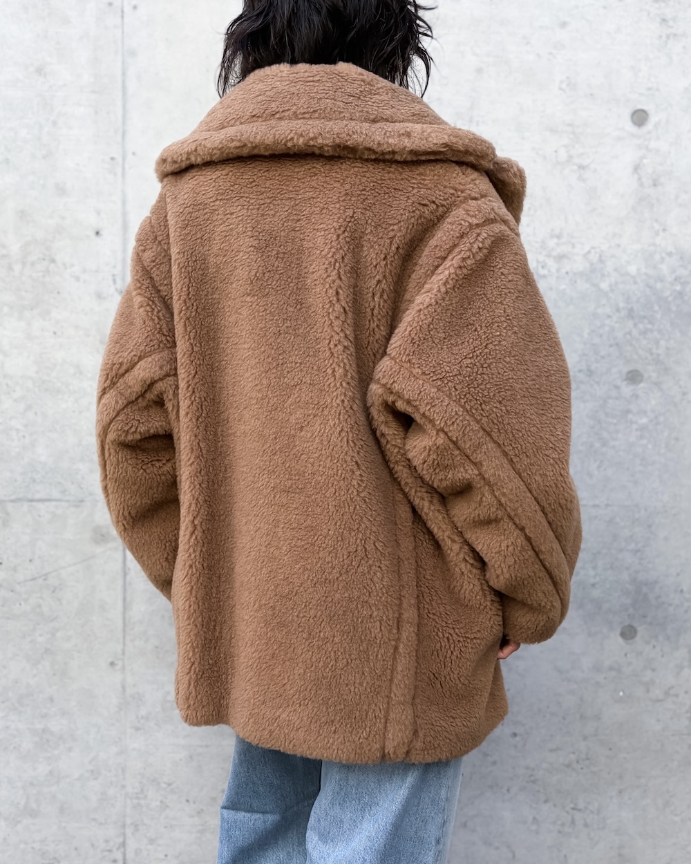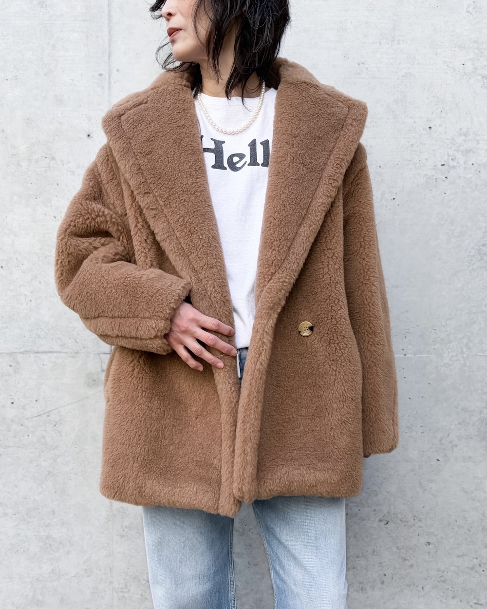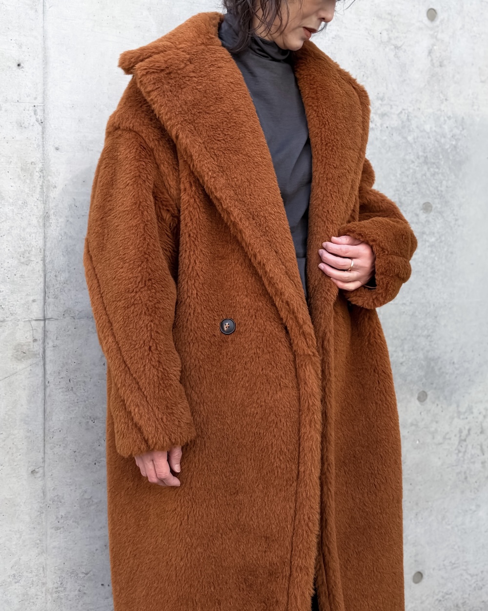 MAX MARAのアイコン、キャメル素材のテディベアボクシーケープ。