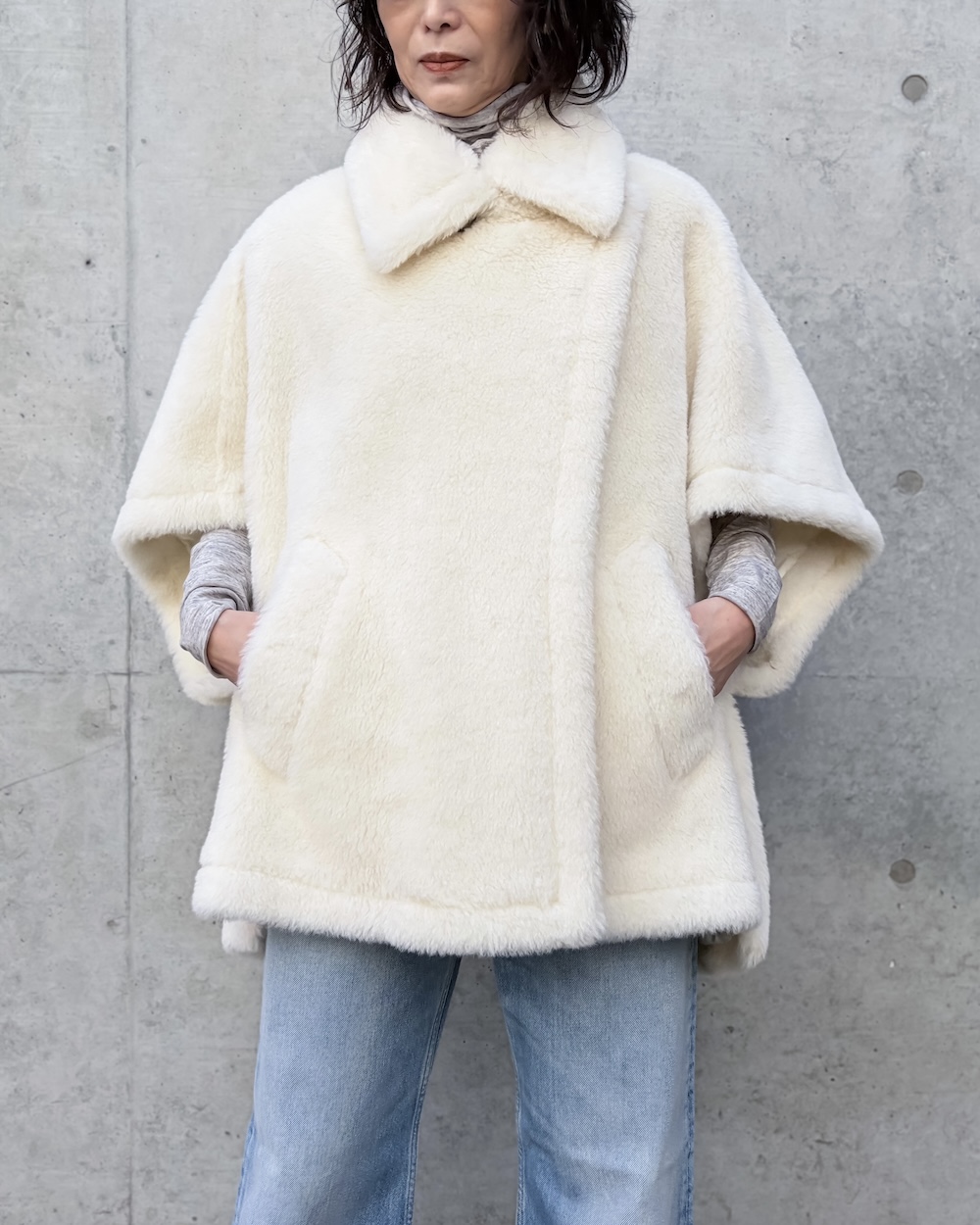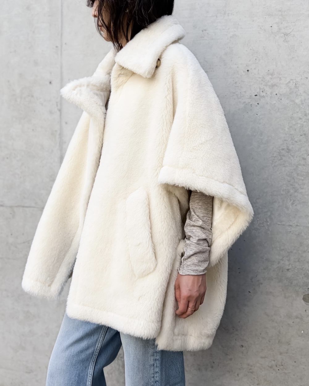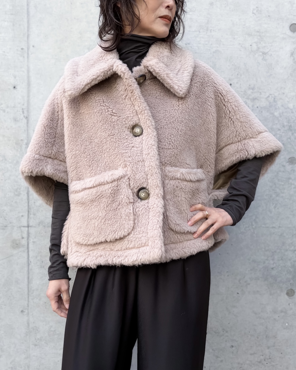 クラシカルにもフェミニンにも着こなしいただけるトレンドのケープはアイコン、テディベアコートと同シリーズでエクスクルーシブな仕上がりながら、よりカジュアルで洗練された雰囲気に。