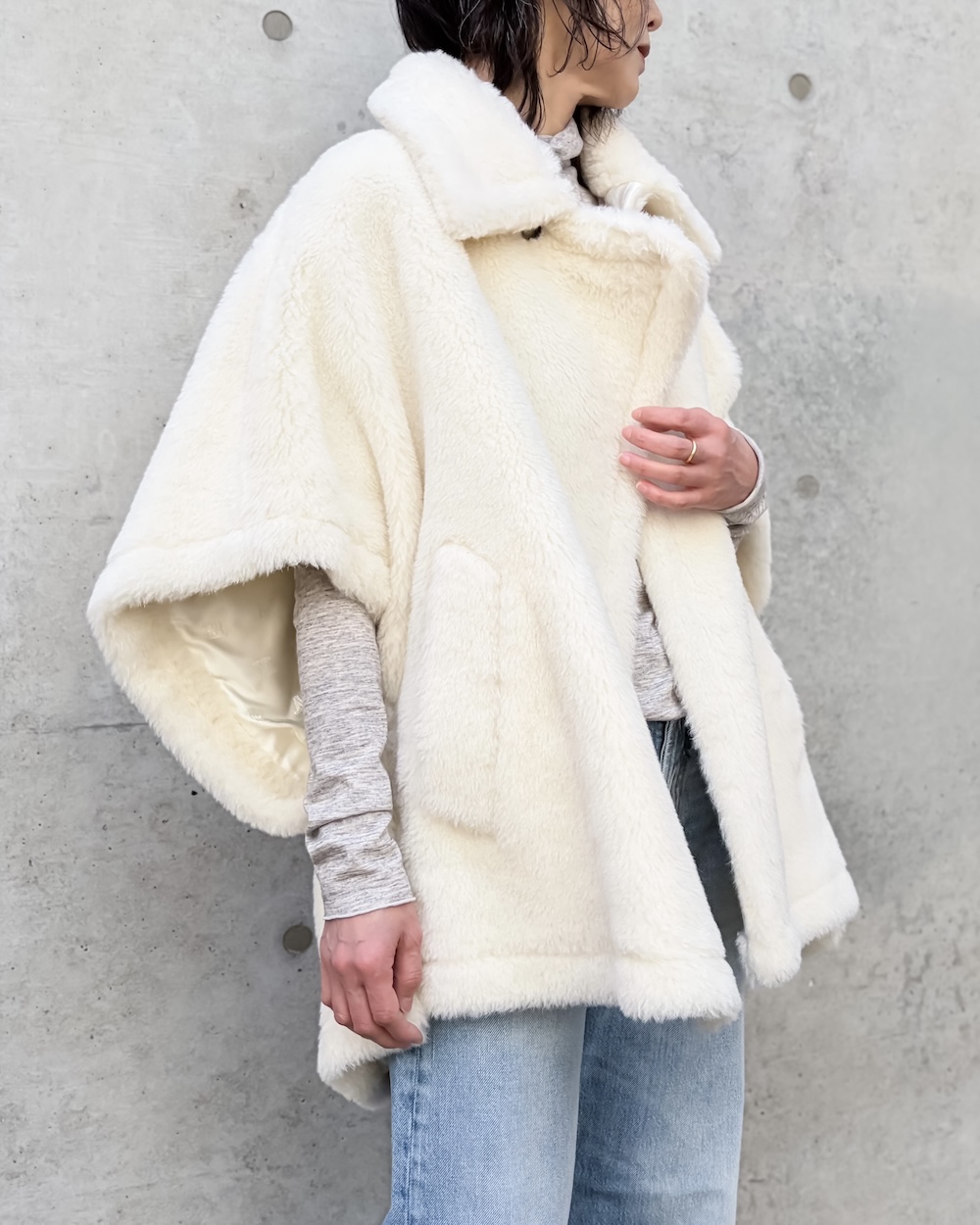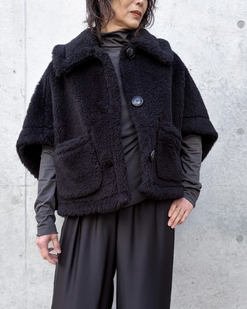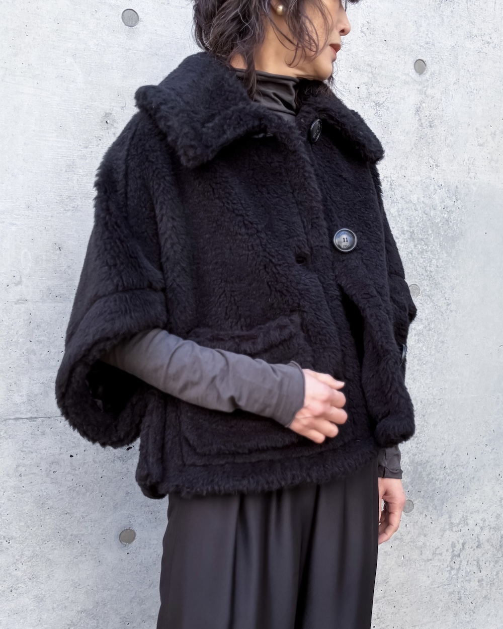 クラシカルにもフェミニンにも着こなしいただけるトレンドのケープはアイコン、テディベアコートと同シリーズでエクスクルーシブな仕上がりながら、よりカジュアルで洗練された雰囲気に。