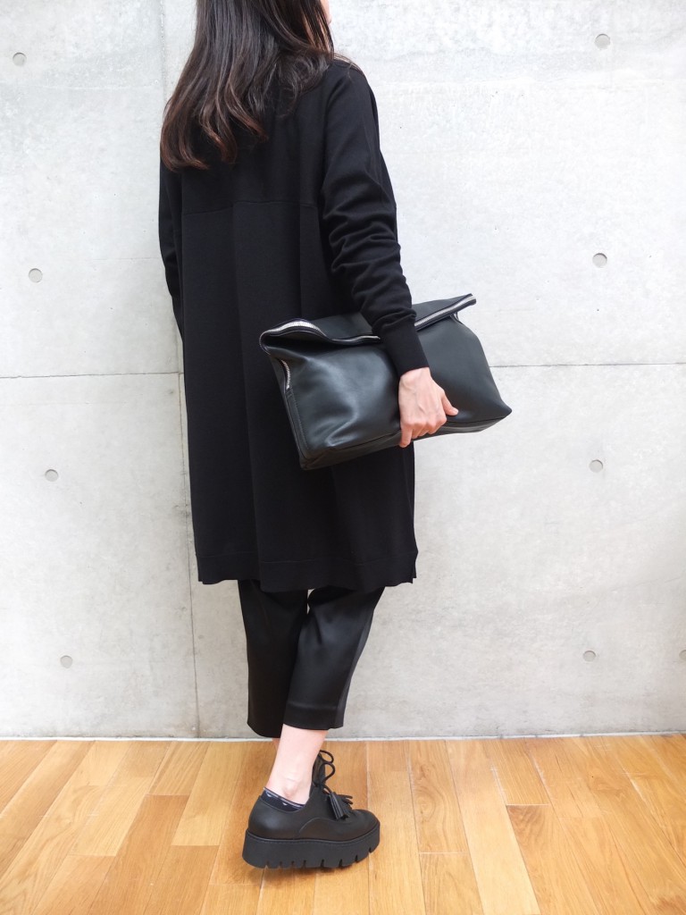 ウール素材が多くなる季節ですので、パンツの素材を変えてコーディネートしていただくと、質感の違うスタイリングになり、オススメです!