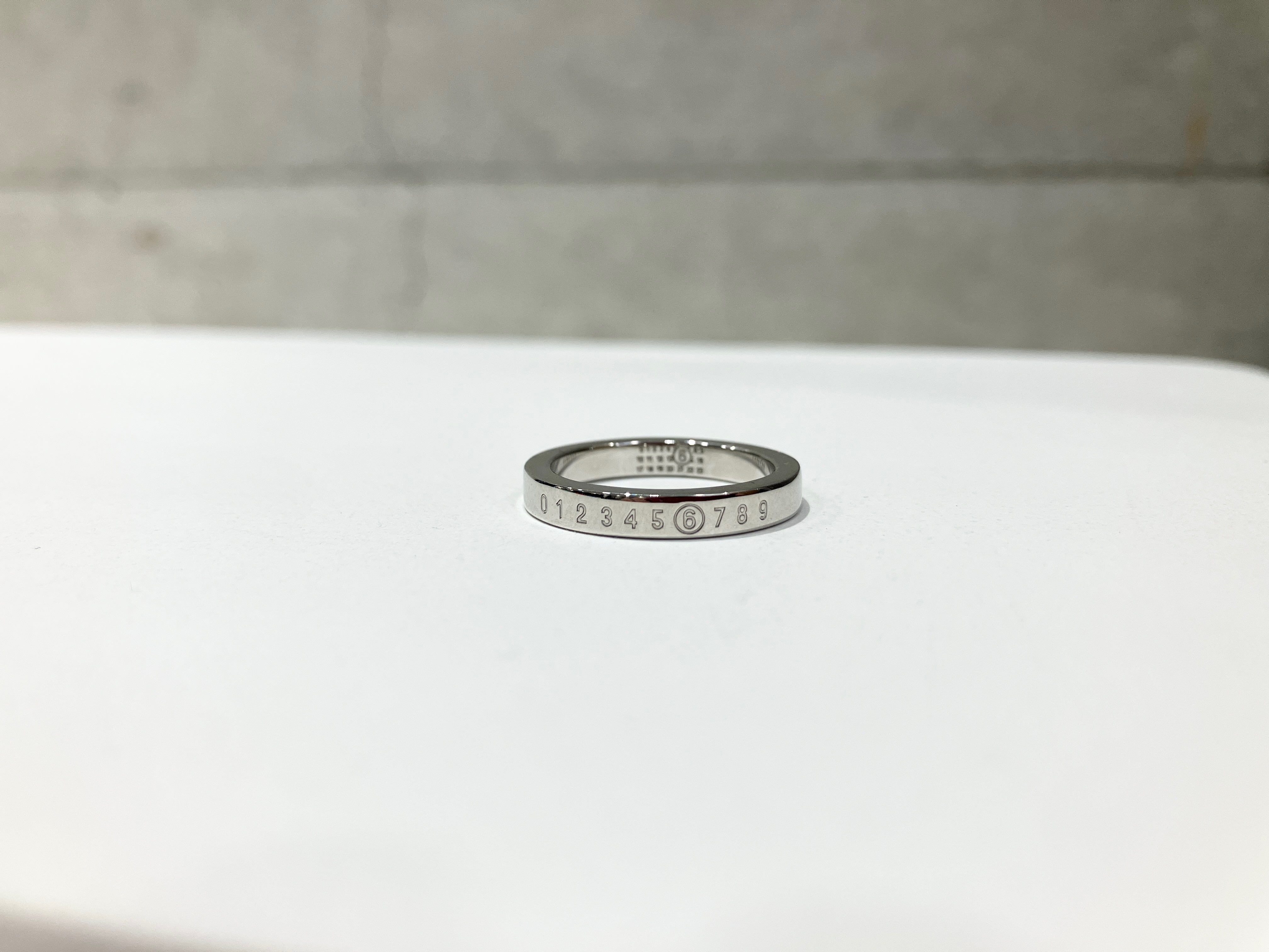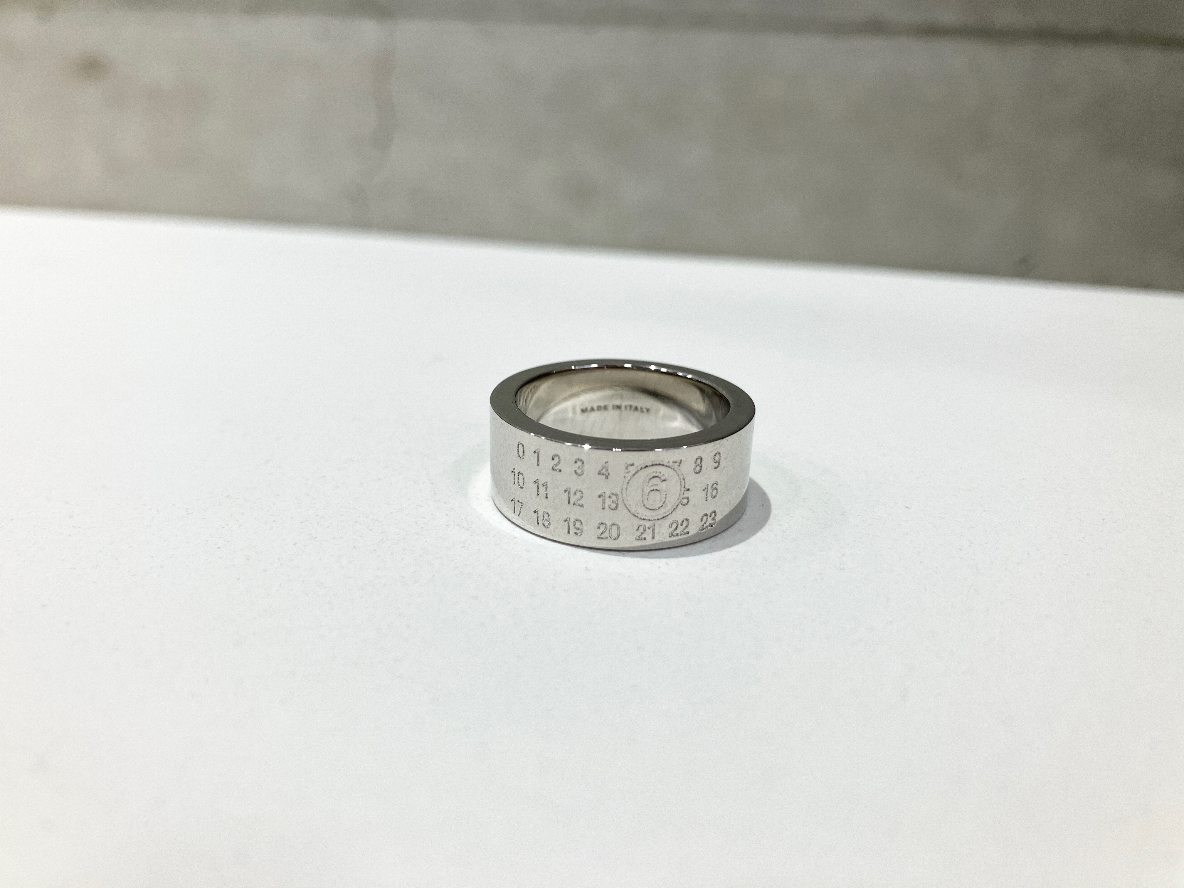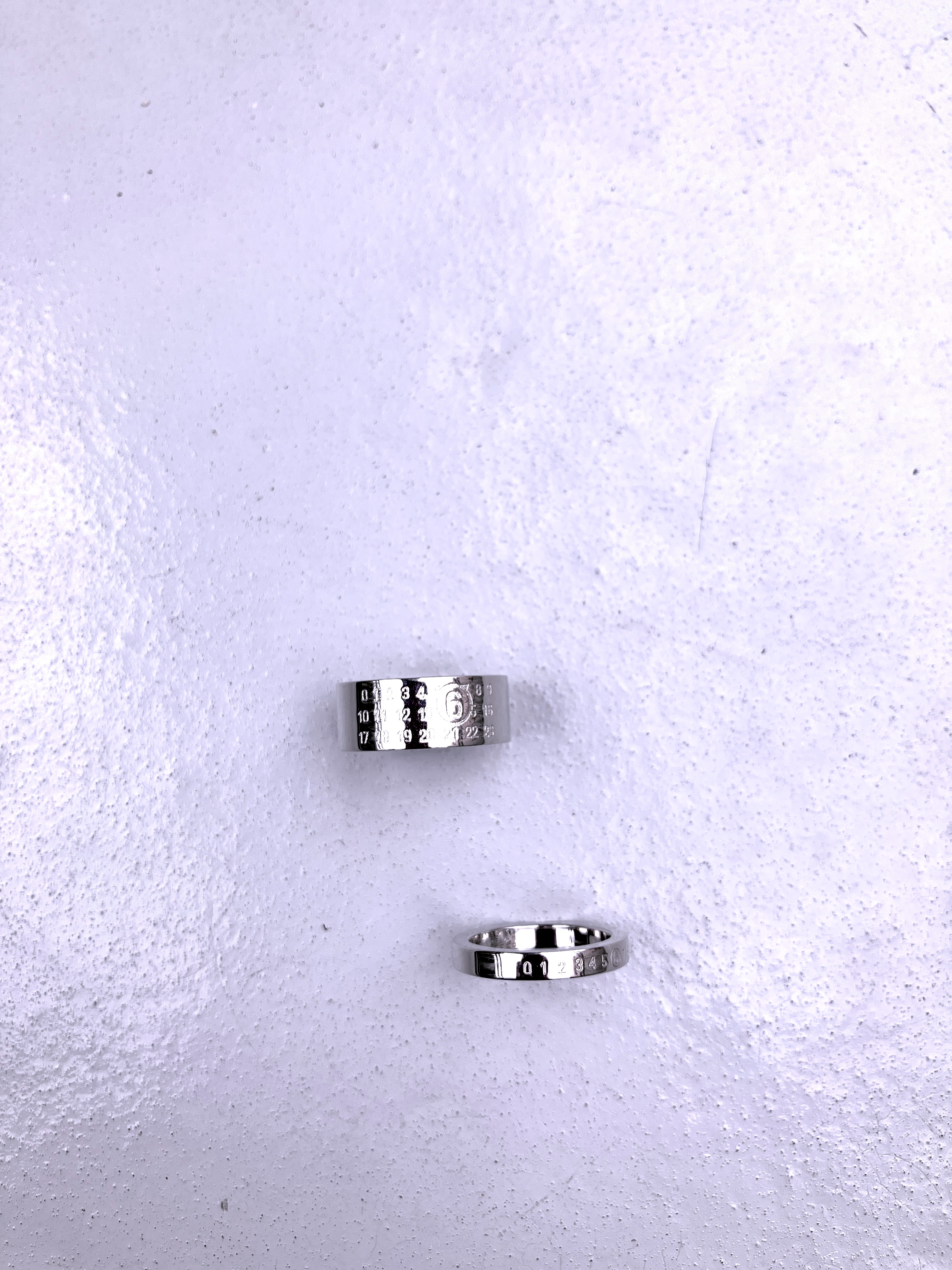 シルバートーンの真鍮を使用したミニマルな「ニューメリック」シグネチャーリング。フロントに刻印されたブランドの「ニューメリック」シグネチャーが特徴です。