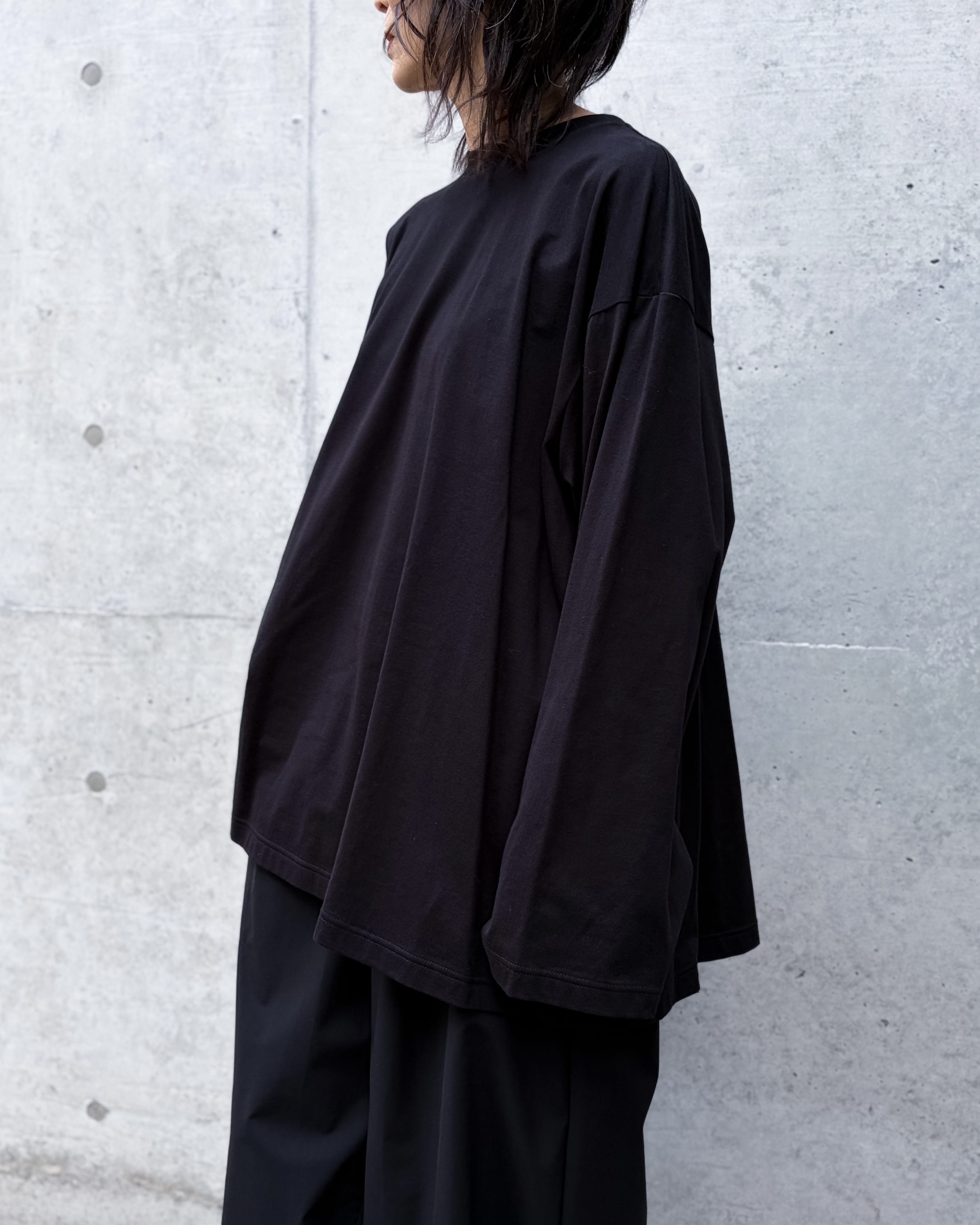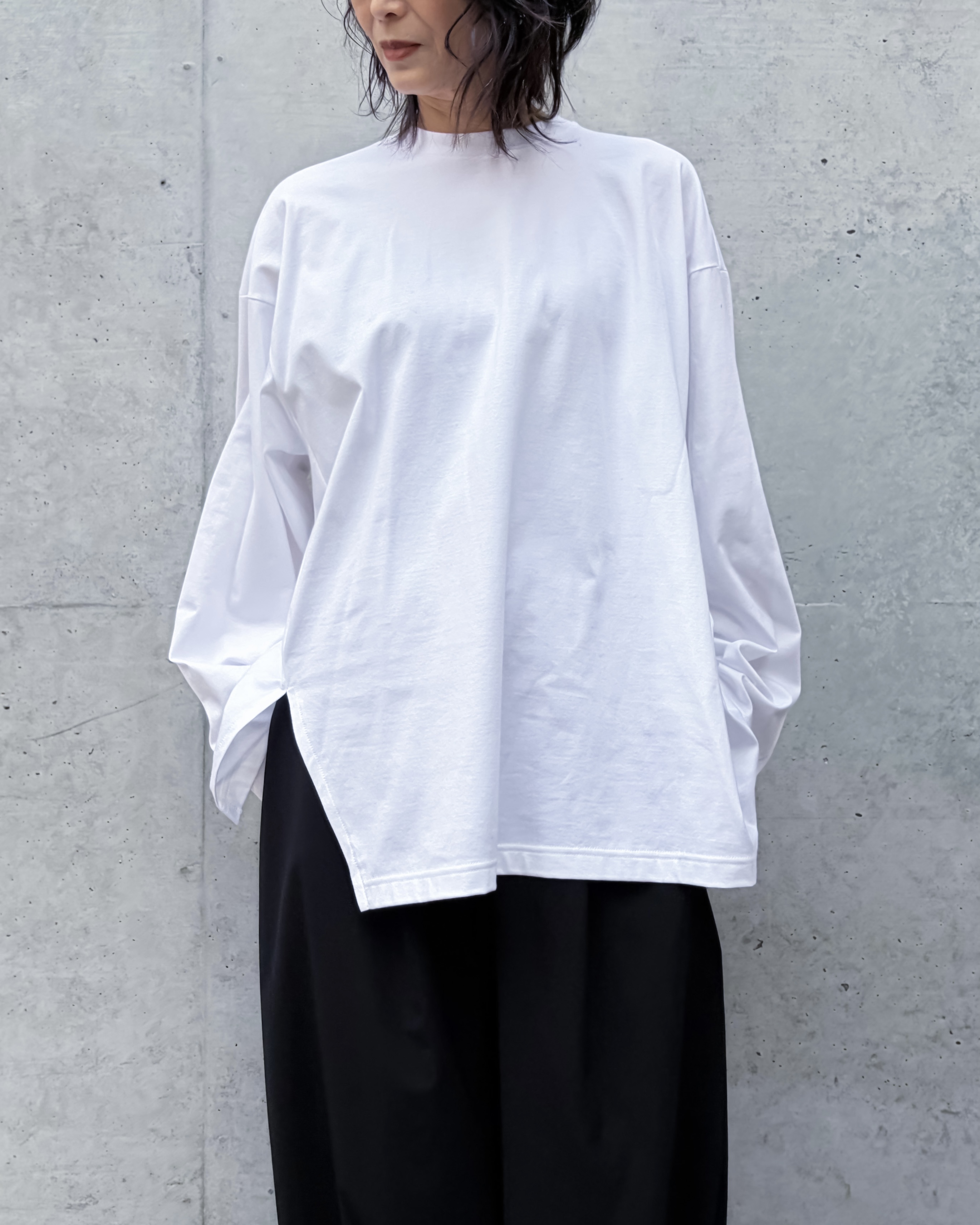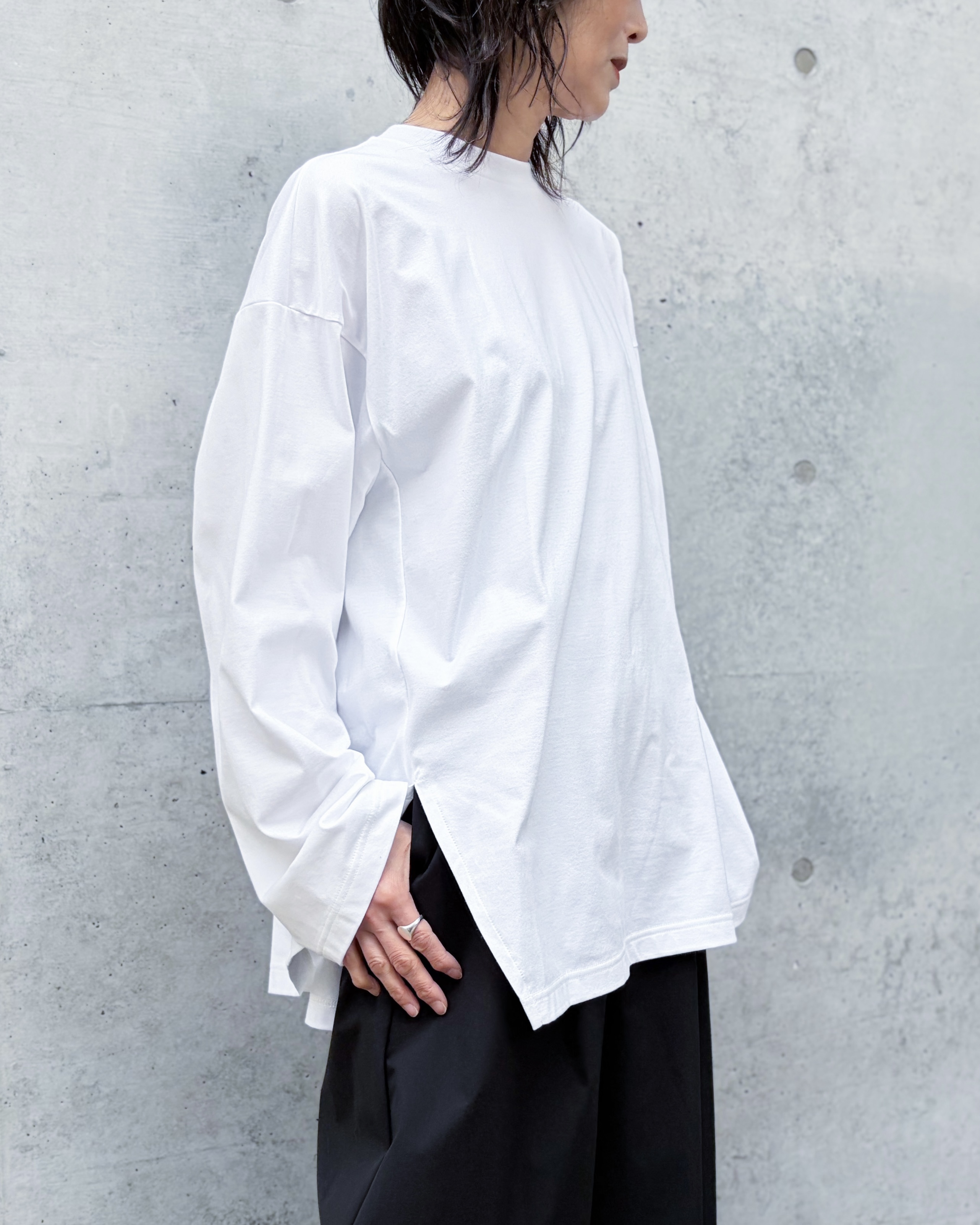 透け感も少なく着用しやすい編み立てのコットン100素材のロングスリーブTEE。