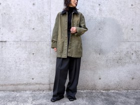 ボトムにもどこかボリュームをもたせたアイテムを合わせていただくのがオススメ。
