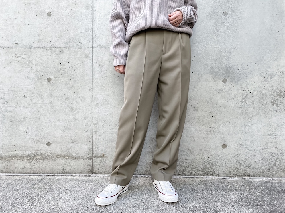 マニッシュなムード漂うリラックスしたシルエットの2タックワイドテーパード。
