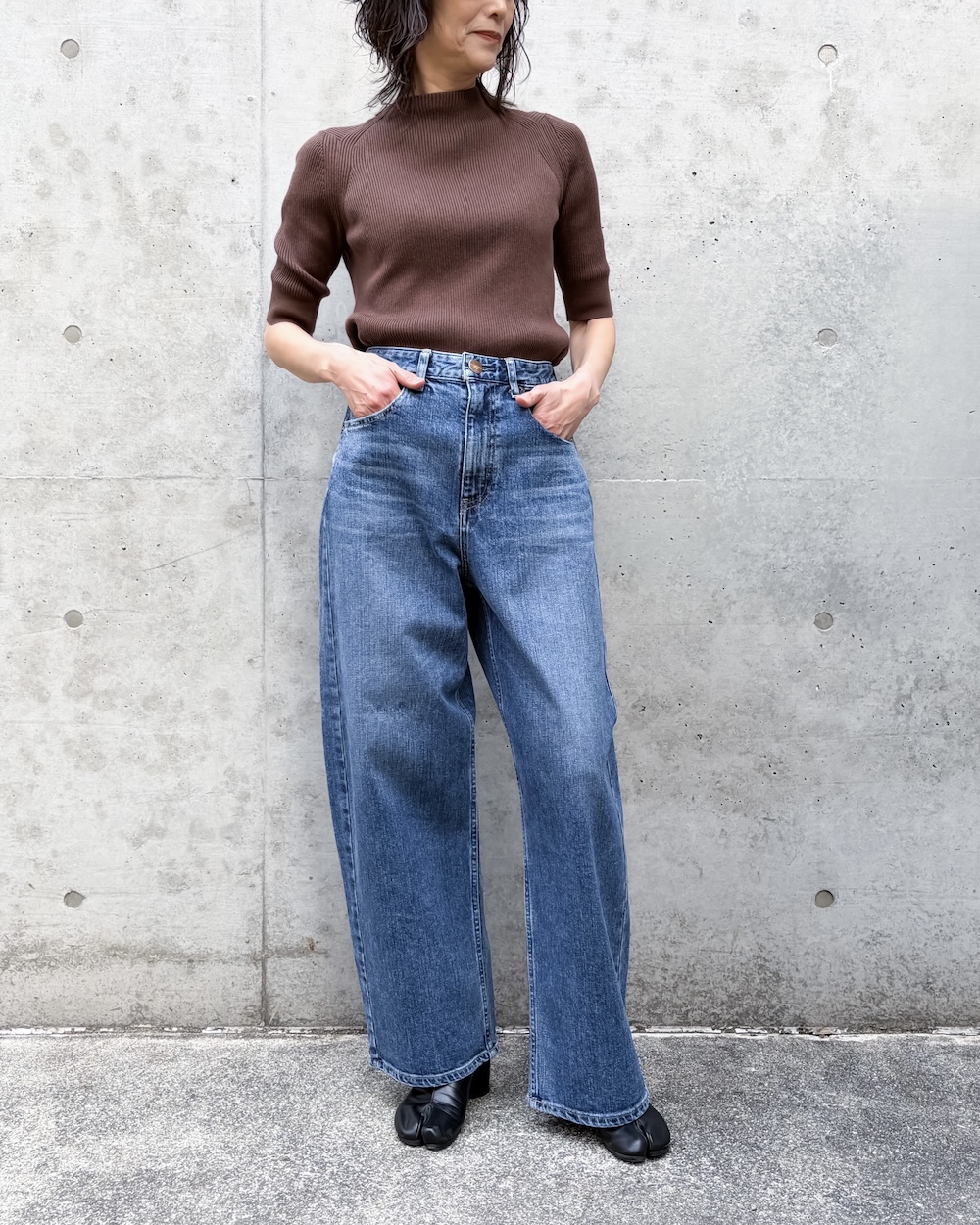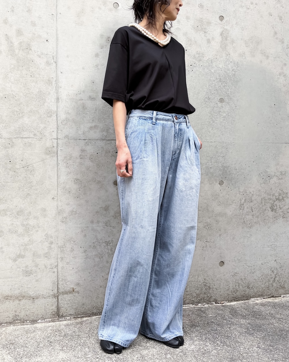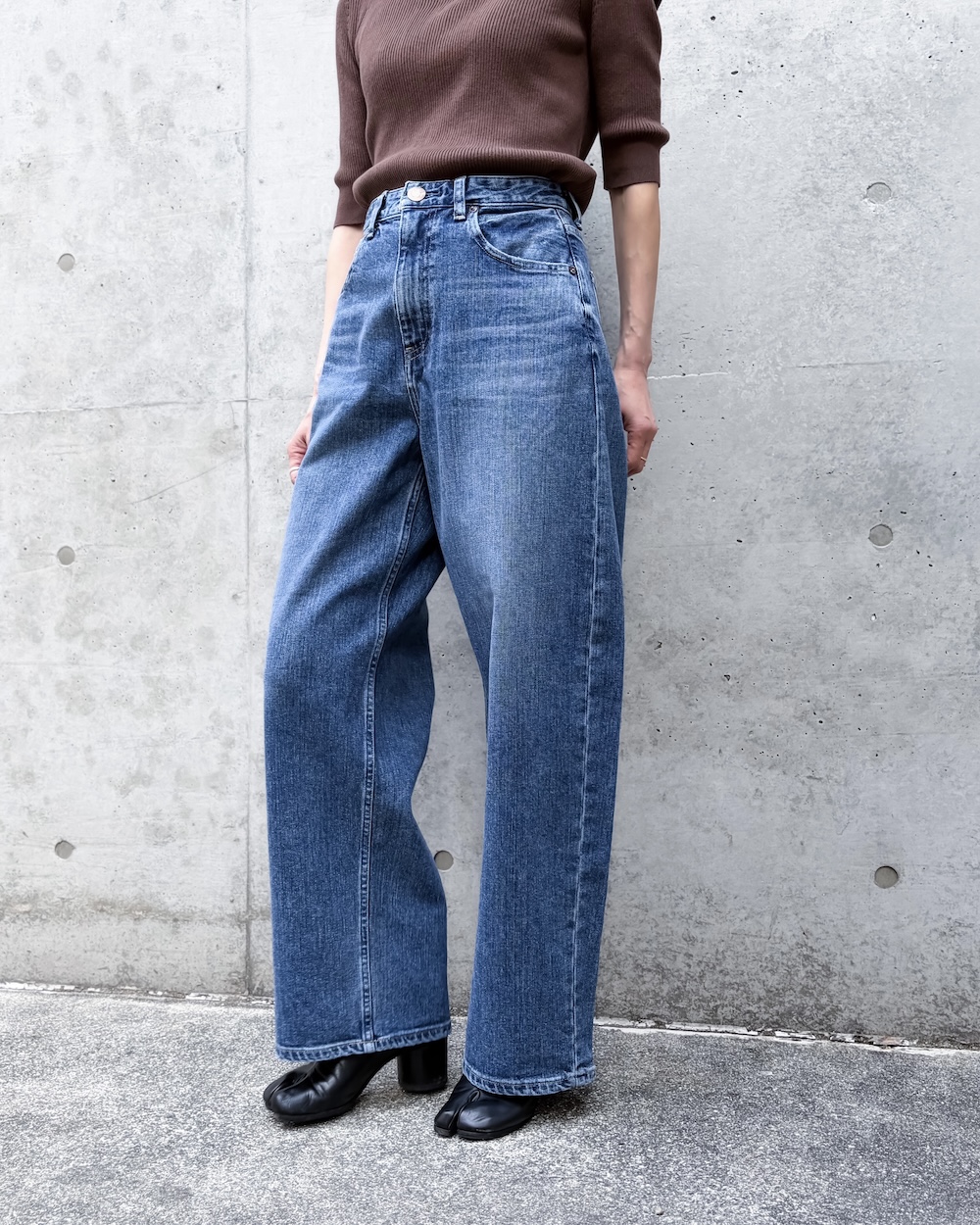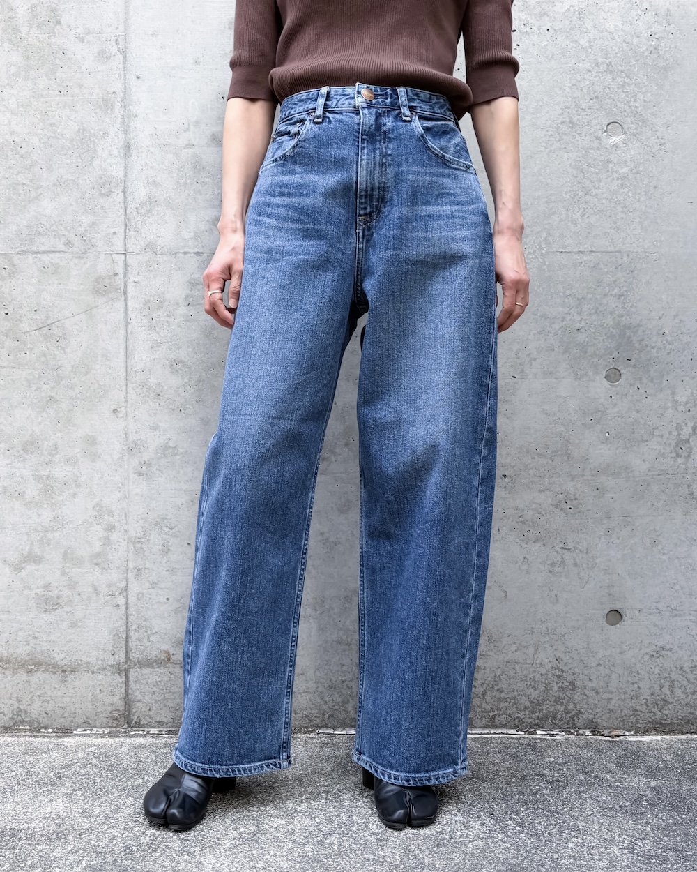 ゆるさのあるラインながら、トラウザーらしいクリーンな表情が魅力で、デニムのラフさとモード感のバランスが絶妙な1本です。