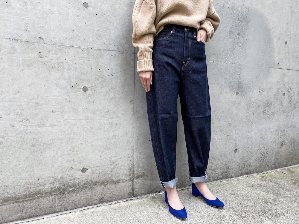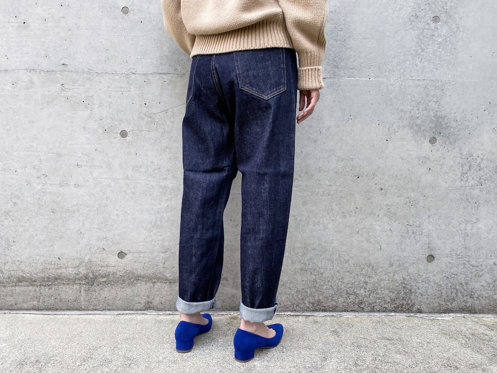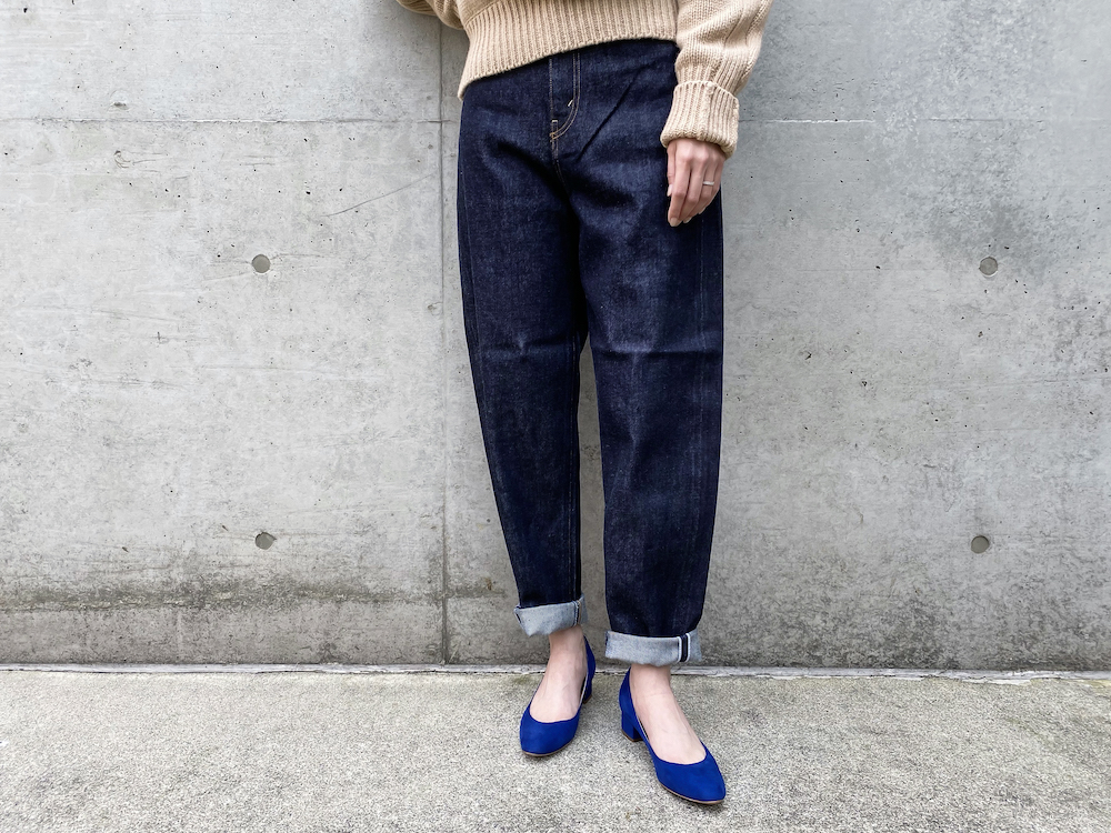 11.75ozの程よくしっかりとしたミドルオンスデニムに、履く際にナチュラルに伸縮するリトルストレッチの生地感と、細身のシルエットが相性の良いバランスになっています。