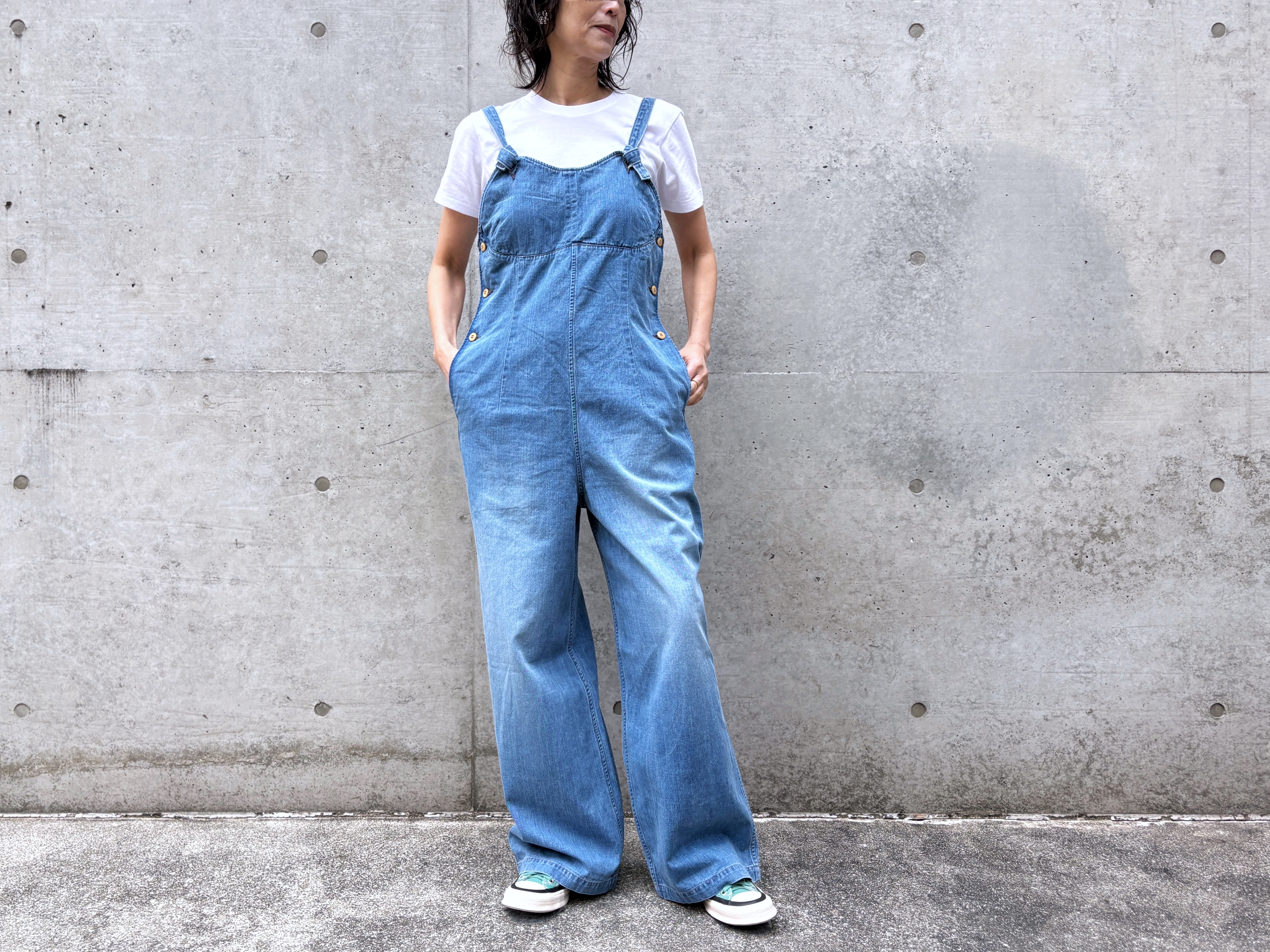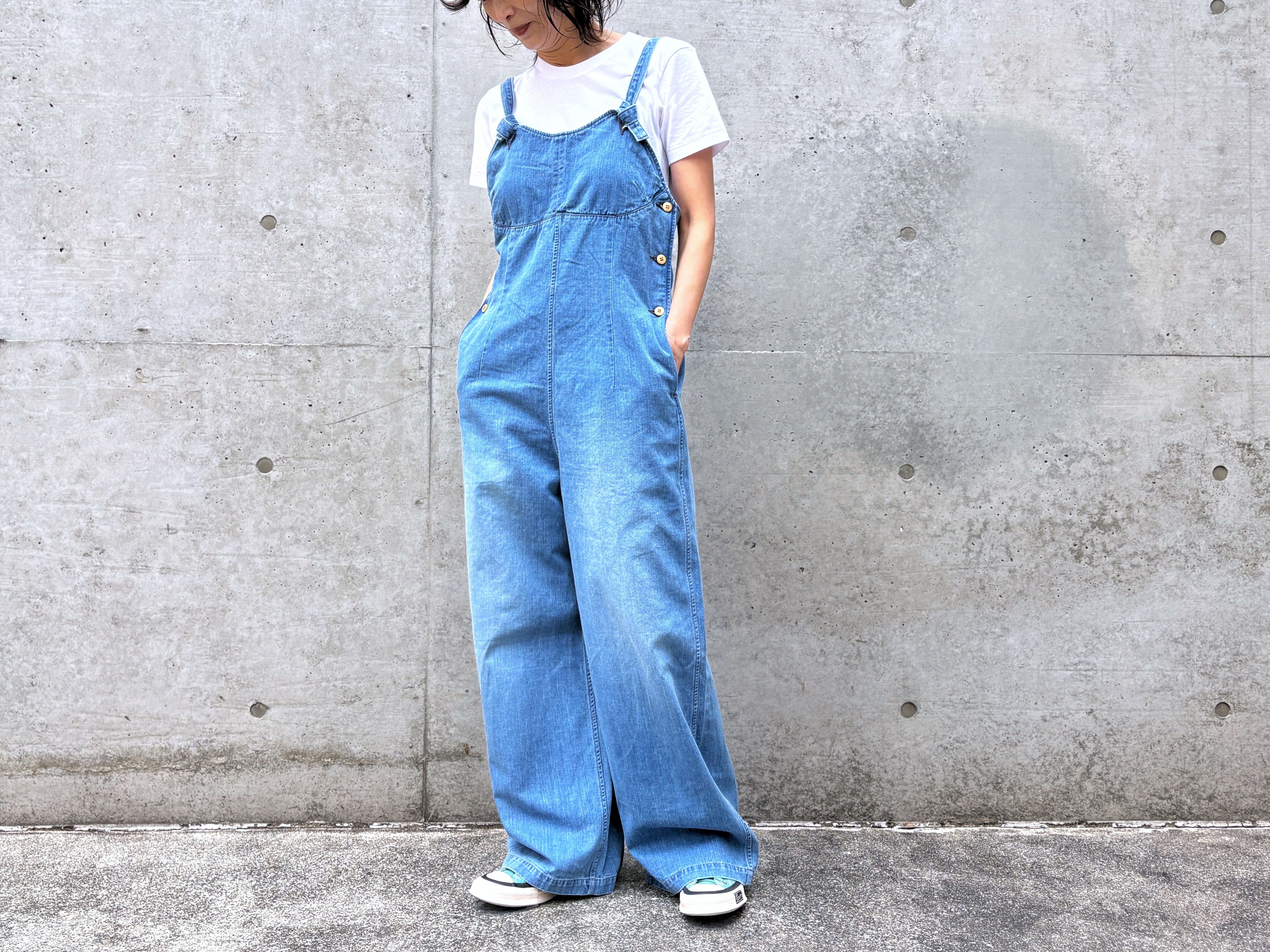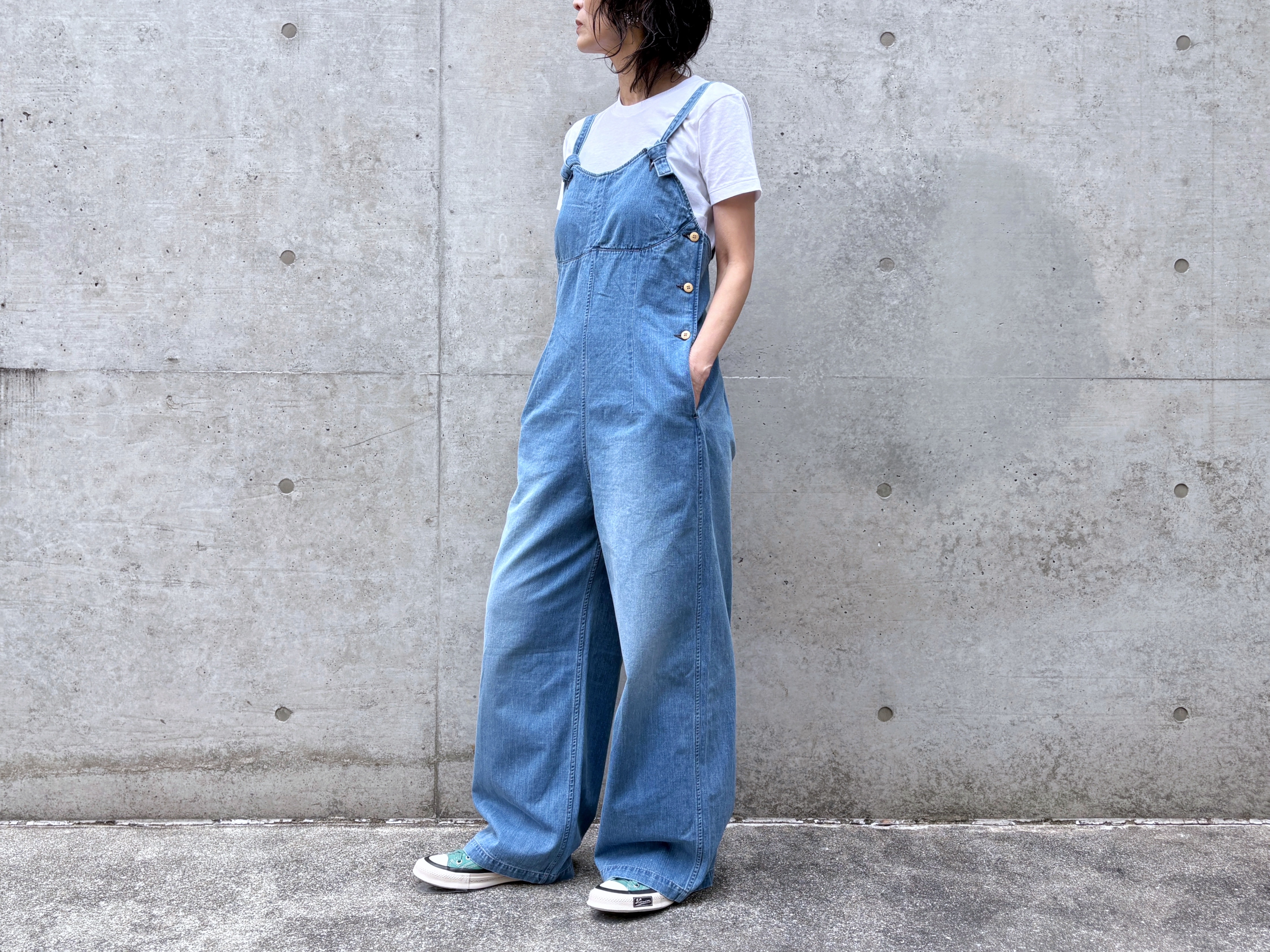 超長綿で織り上げたセルビッチ付きチノ生地を使用したオーバーオールです。